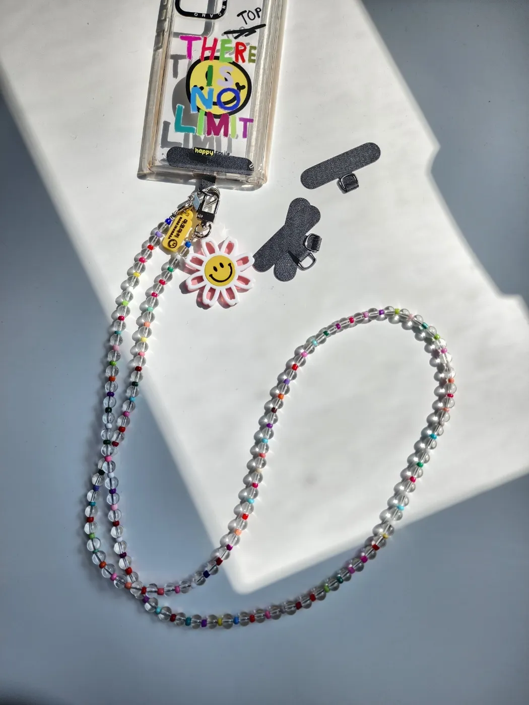 CS973笑臉太陽花彩紅鍊條手機背帶吊飾