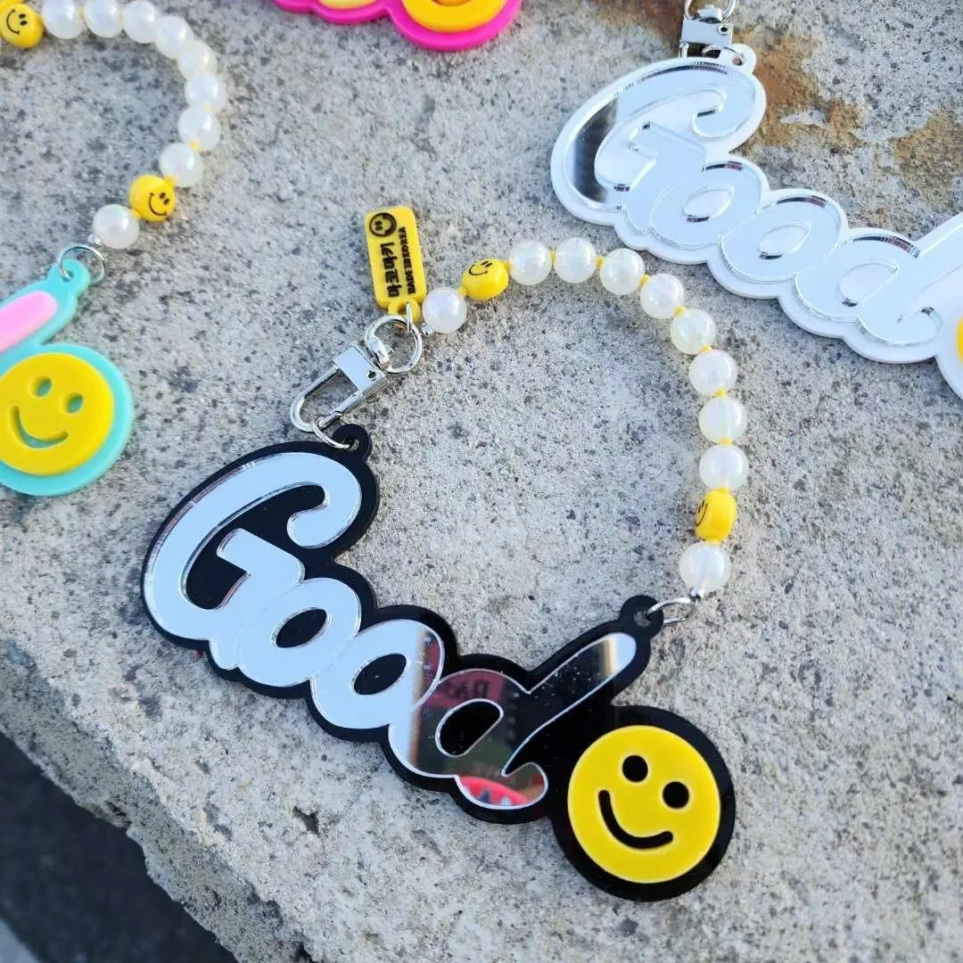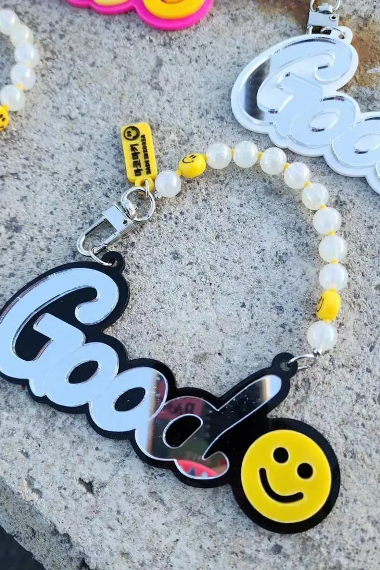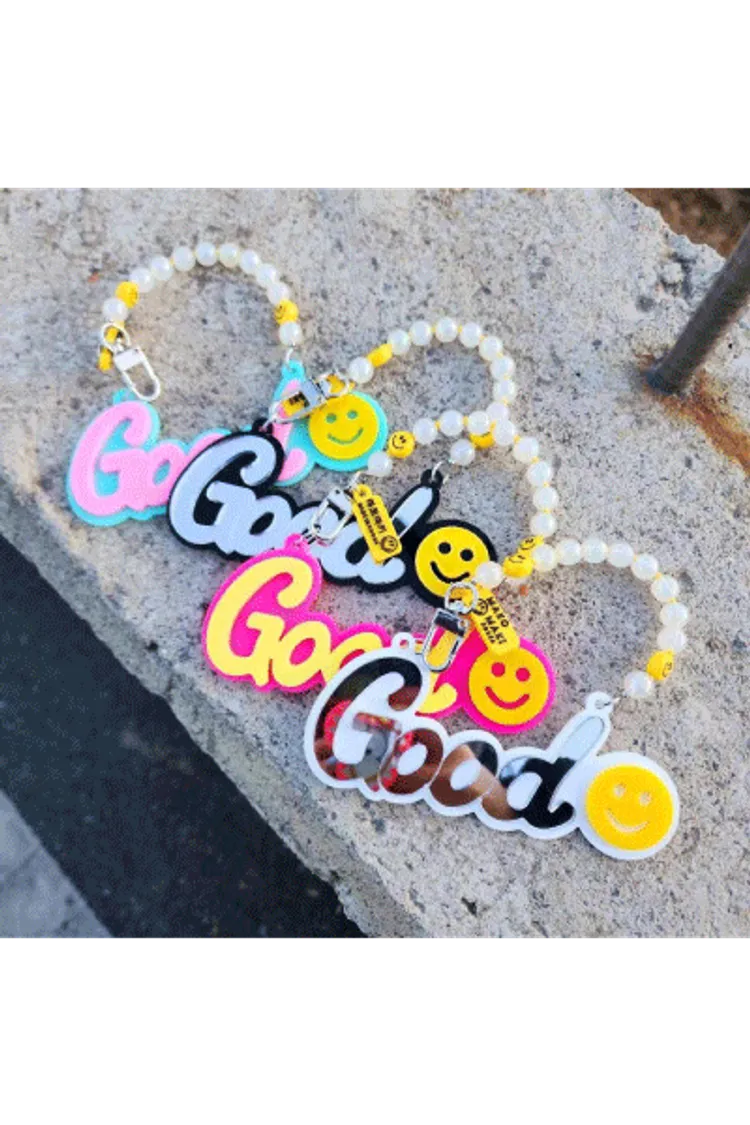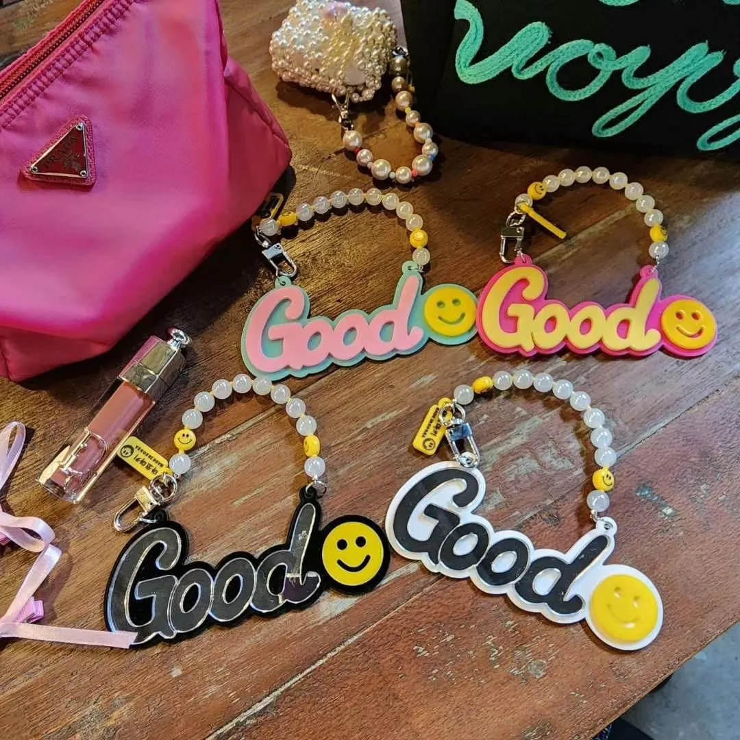 CS975笑臉GOOD美人魚珍珠吊飾 藍 黃 黑 白 $360