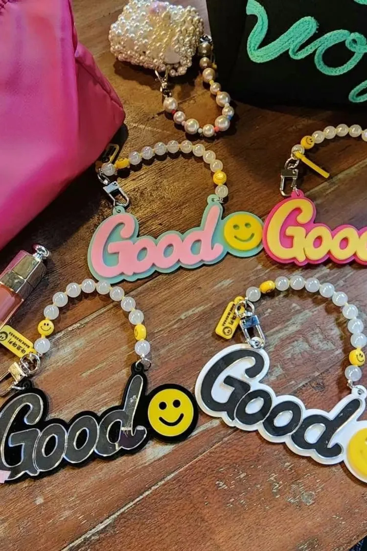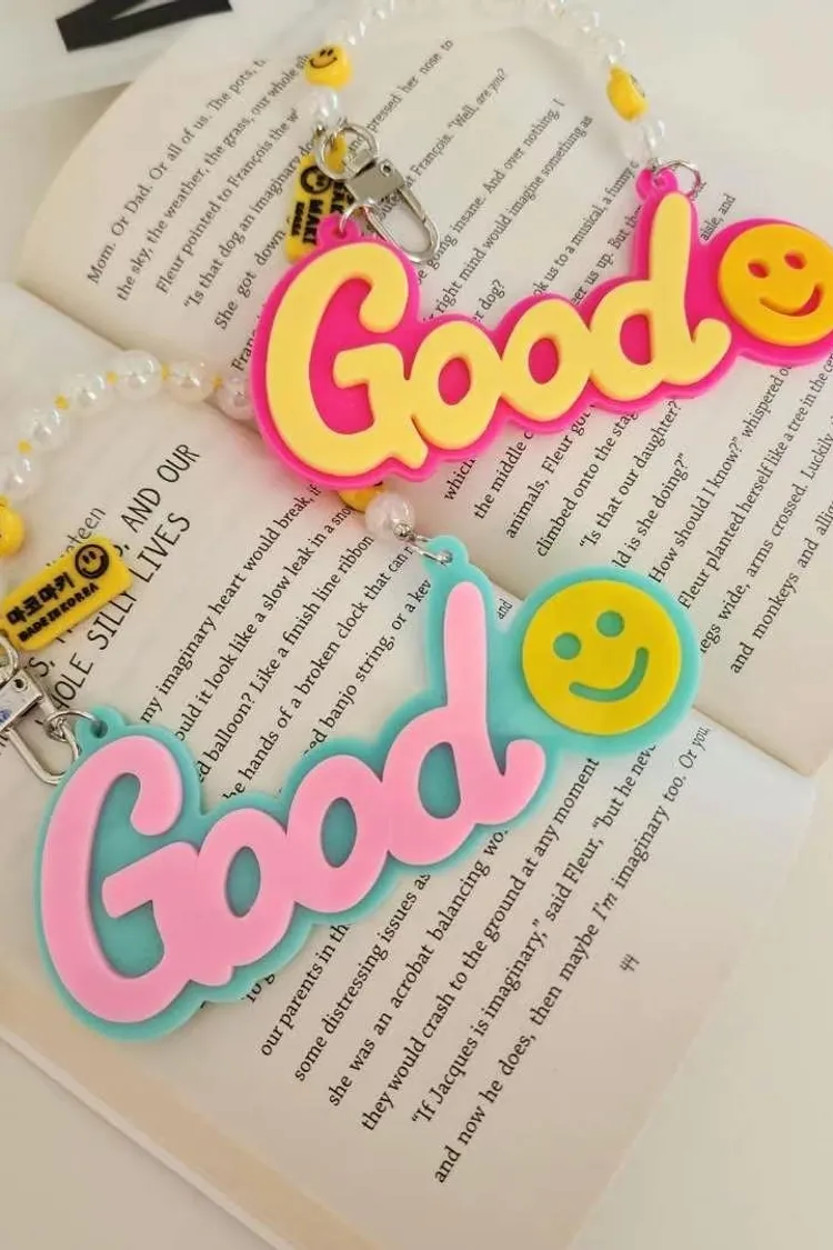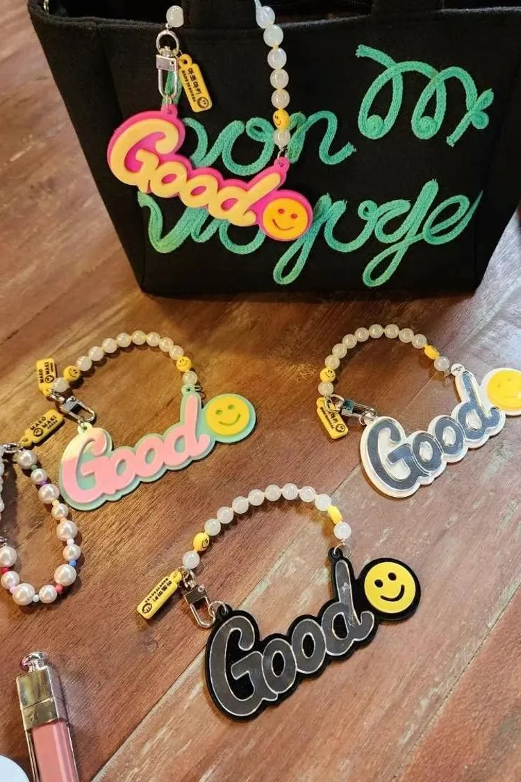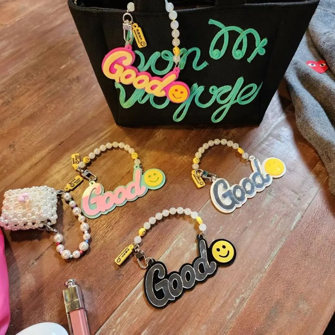 CS975笑臉GOOD美人魚珍珠吊飾 藍 黃 黑 白 $360