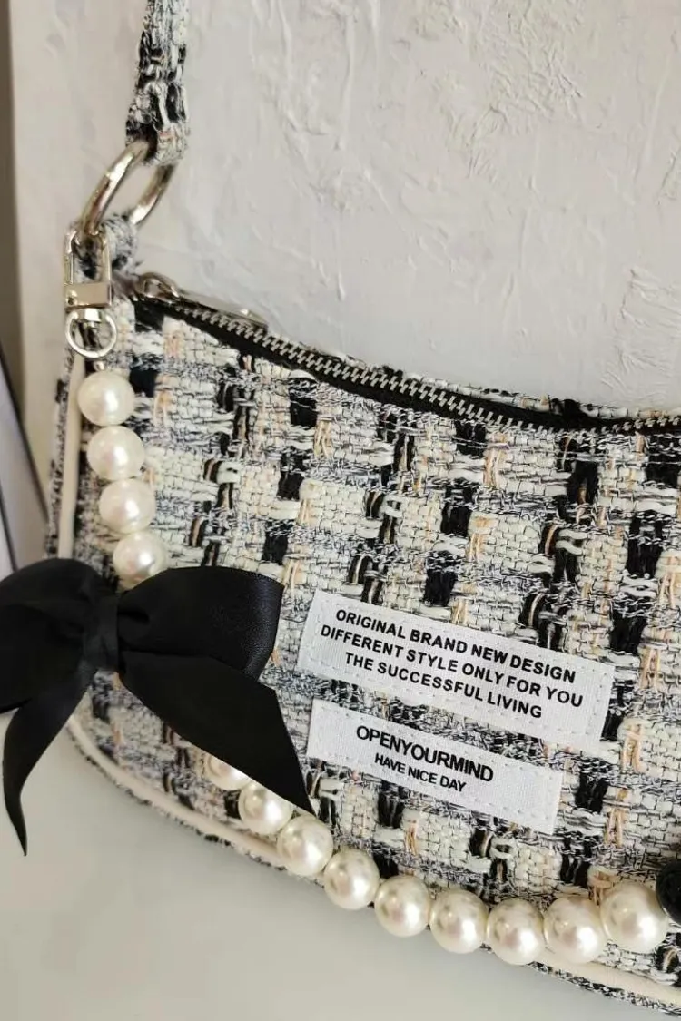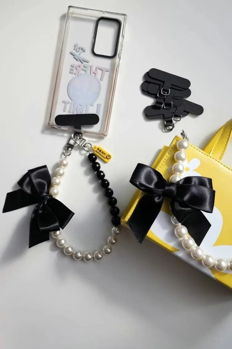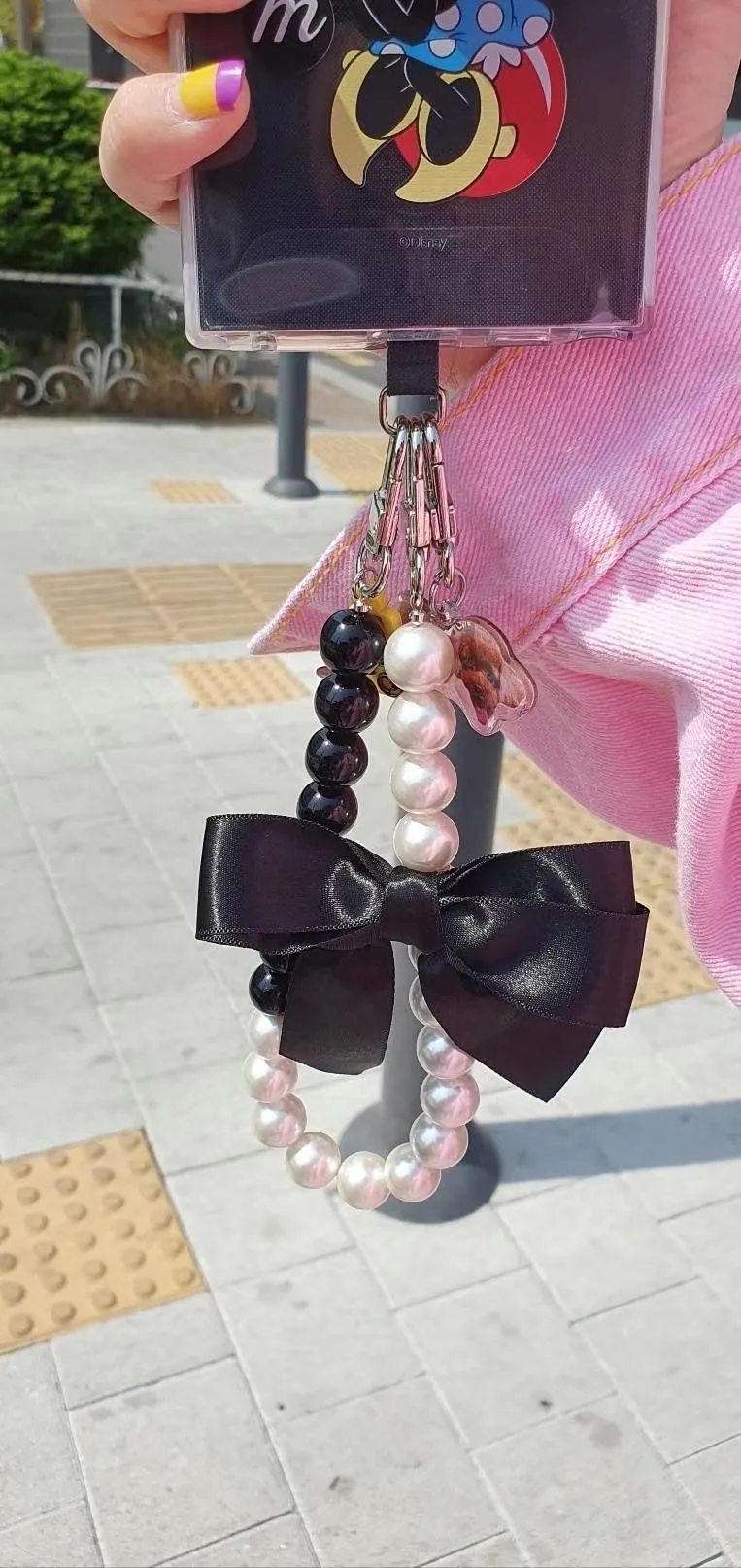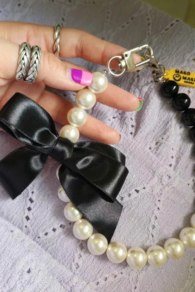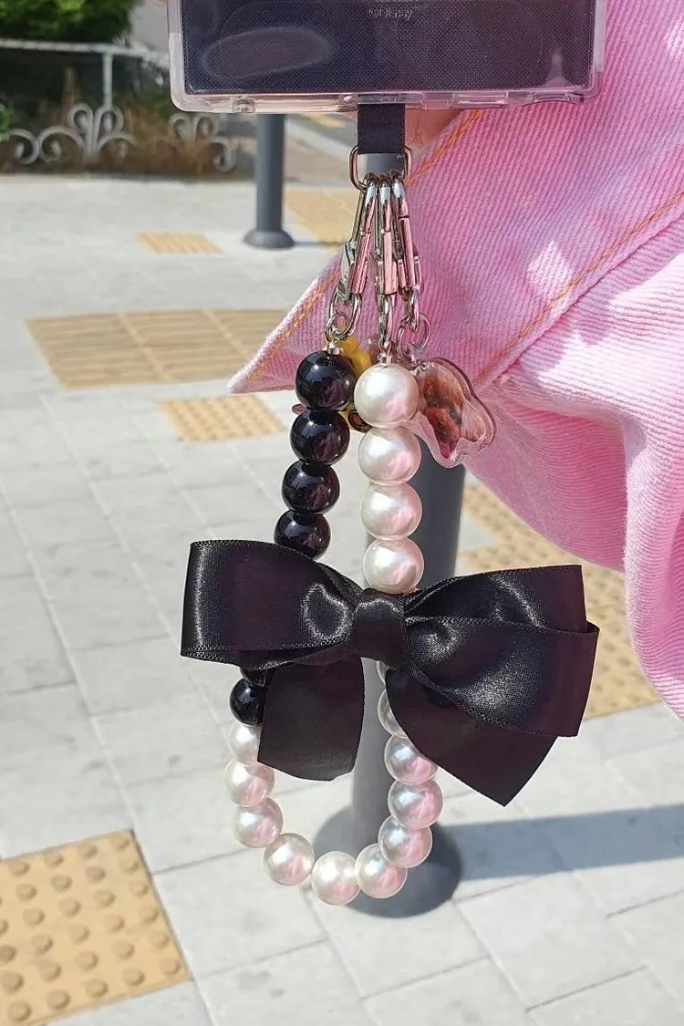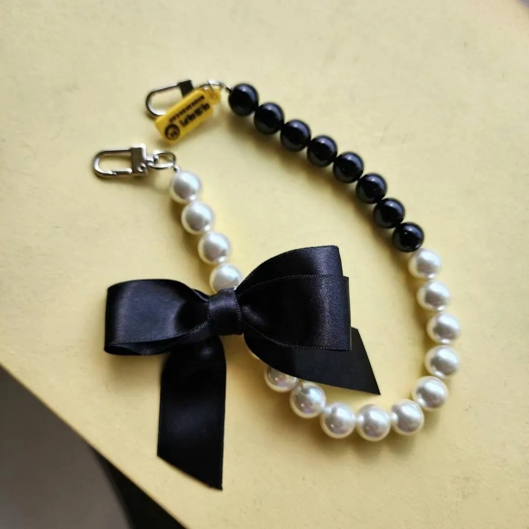 CS977小香風配色黑白珍珠蝴蝶結吊飾