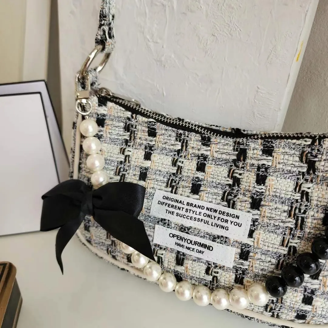CS977小香風配色黑白珍珠蝴蝶結吊飾 小款$299 大款$360