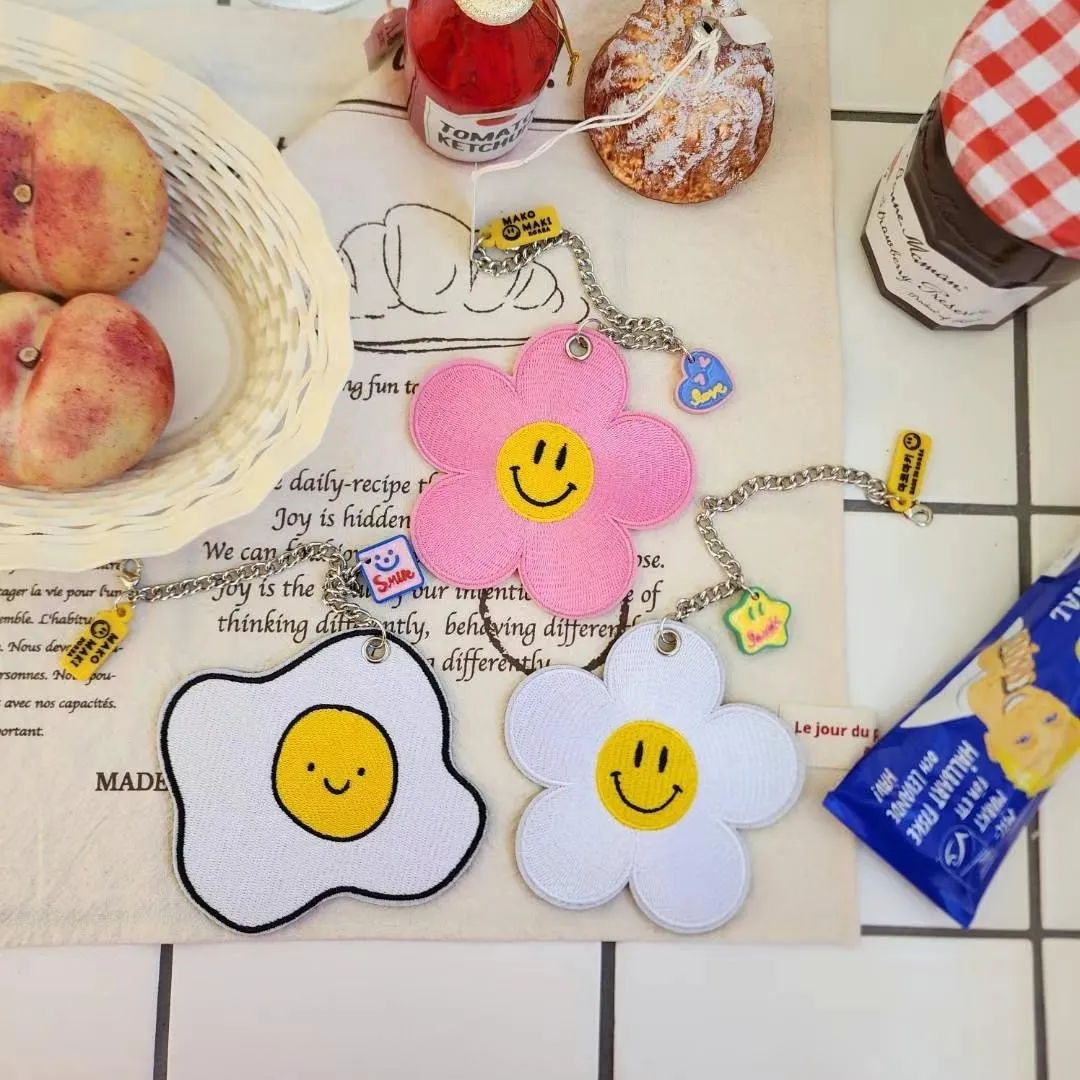 CS983精緻刺繡微笑小花鋼琴烤漆love愛心星星吊飾 白 粉 $430