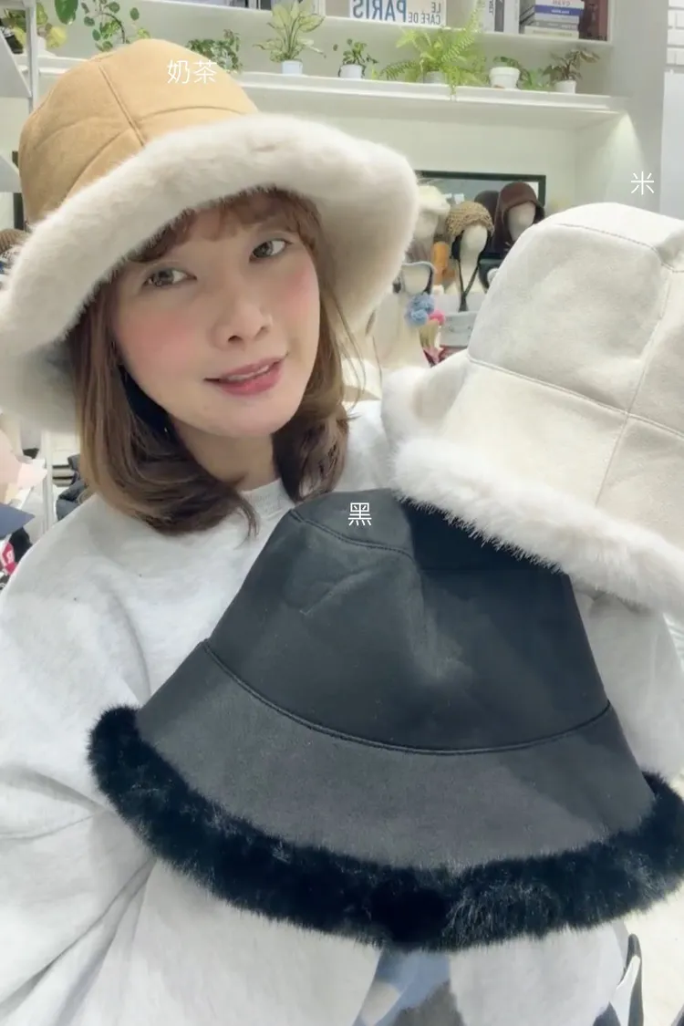 仿貂毛+麂皮 可兩面戴 空間感佳 麂皮面也有毛圈圈
