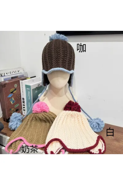 壓克力 可愛跳色設計 柔軟舒適不刺癢 頭頂和綁帶都有球球