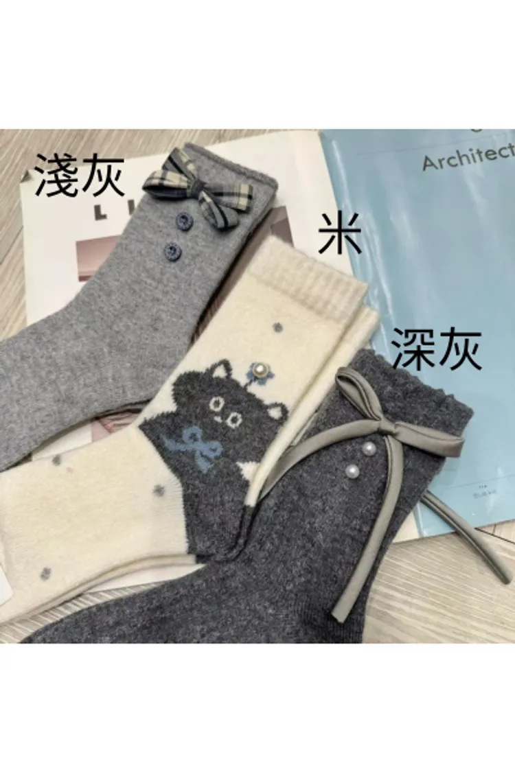 羊毛,米=貓貓,淺灰=蝴蝶結鈕扣,深灰=蝴蝶結珍珠