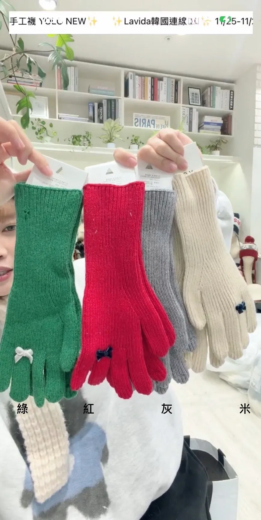 CW076可愛無名指蝴蝶結手套 米 灰 綠 紅 官網價$410 永恆甜甜價$380