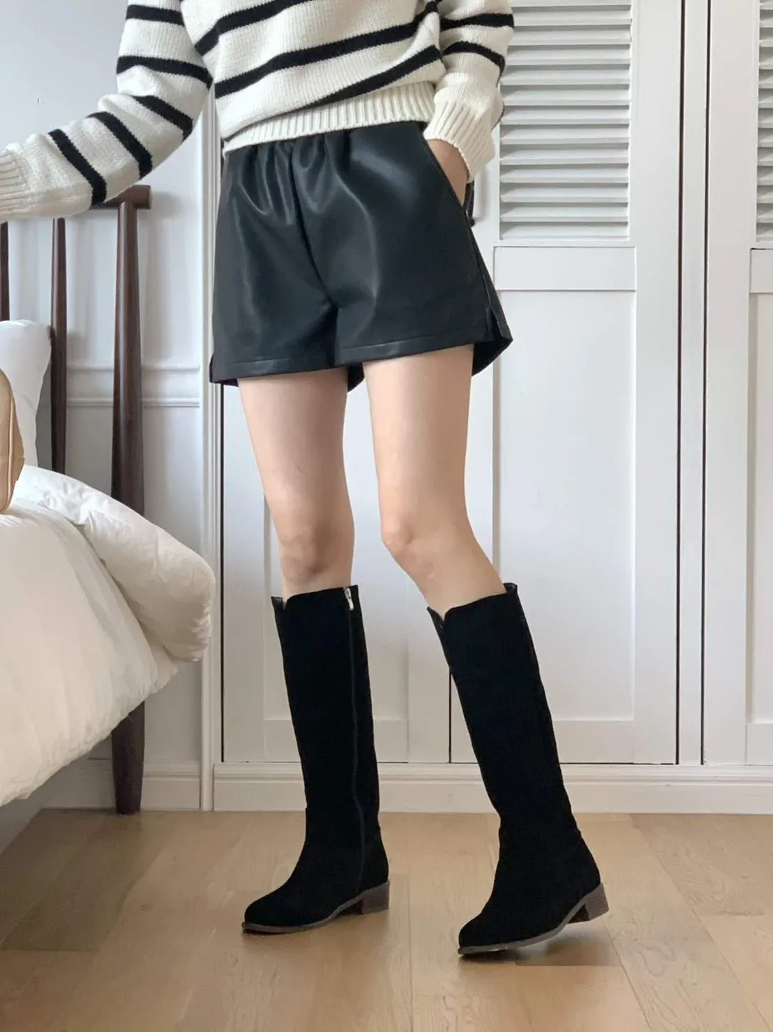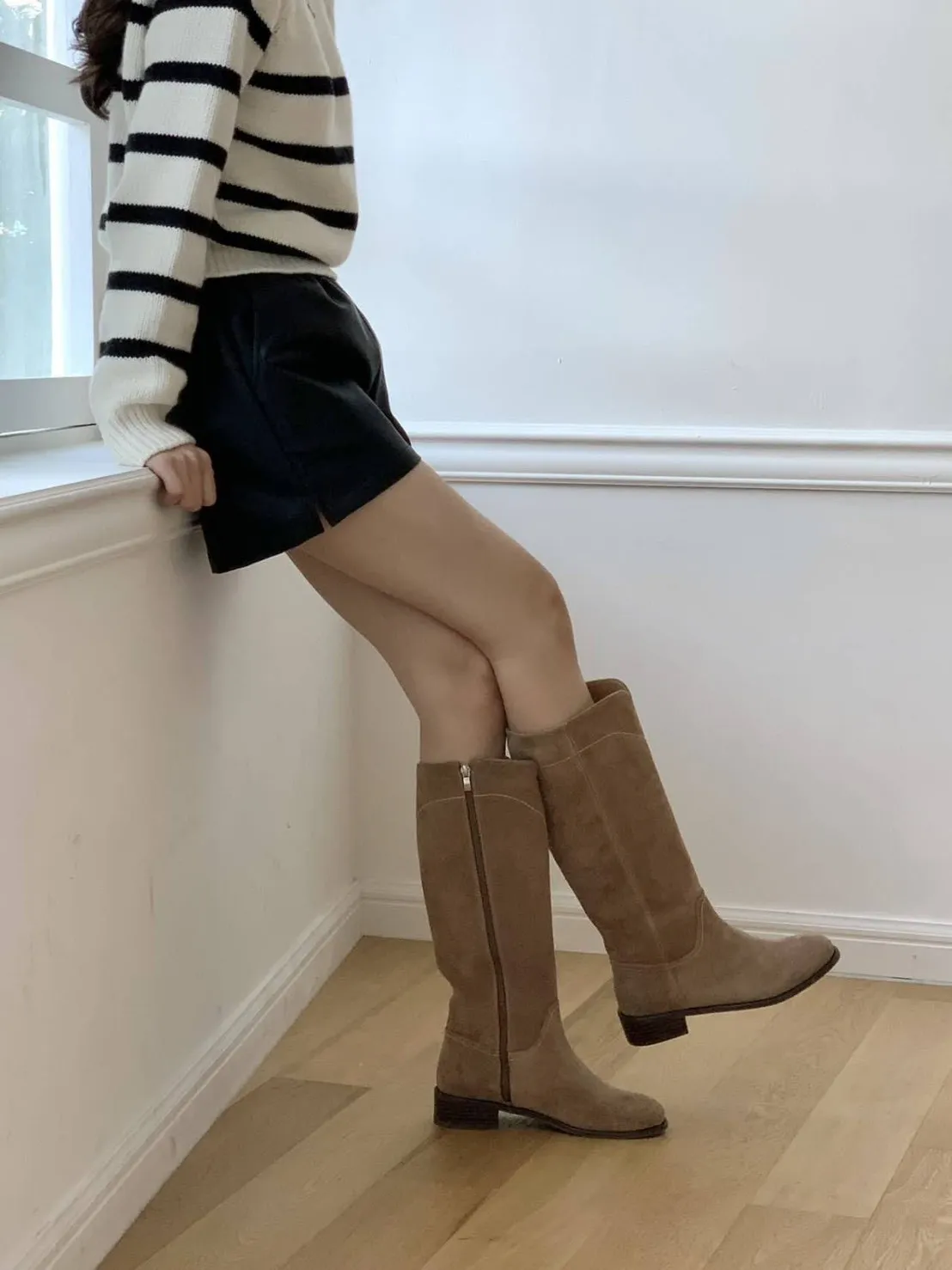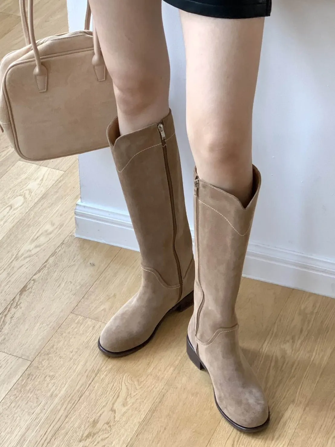牛皮 內層皮革 楦頭合腳 筒圍17 跟高3 全長含鞋底41 瘦腳肉腳均大半號