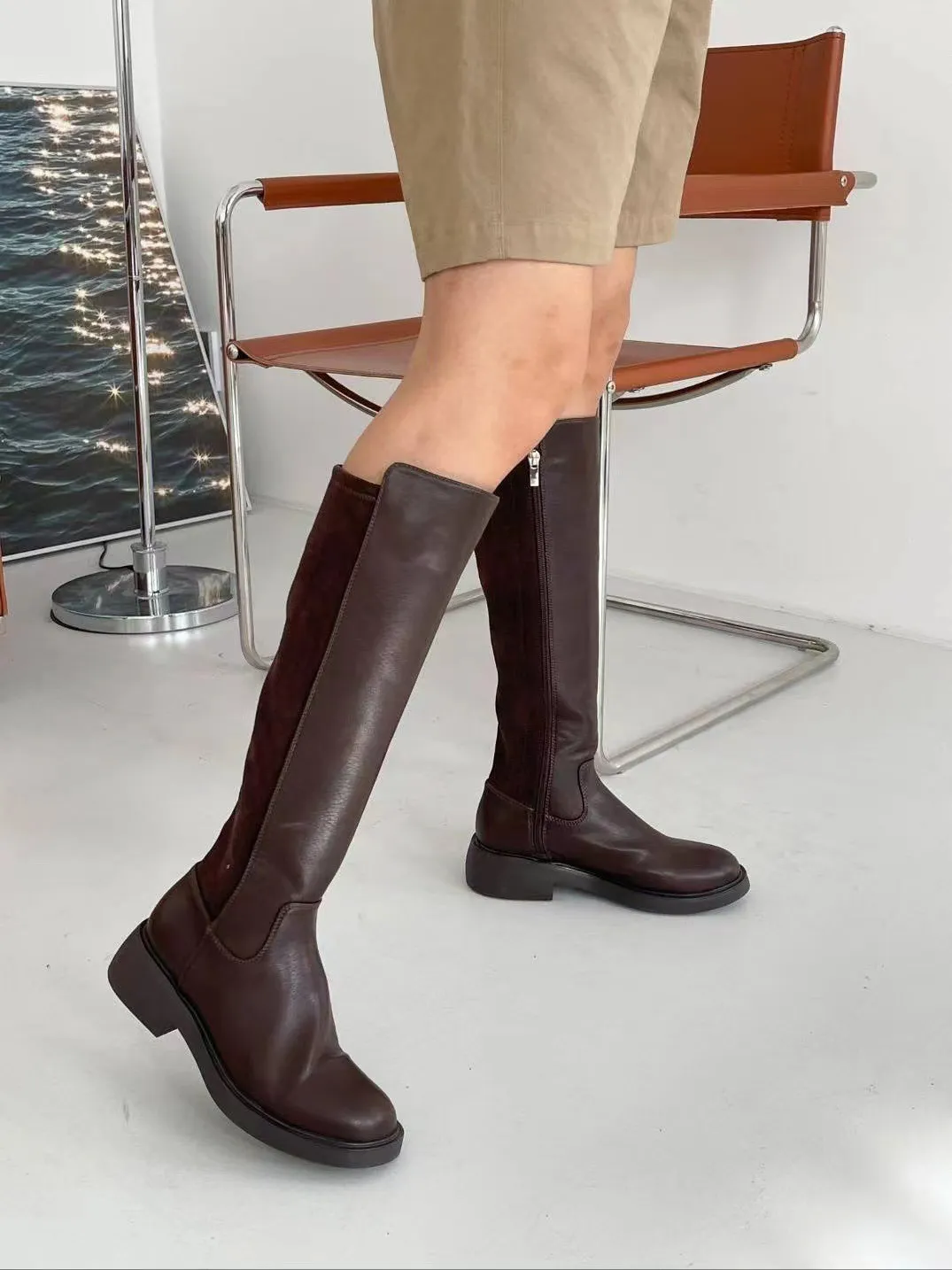 合成皮革 拉鍊穿脫 筒圍16.5 鞋底3.5 全長含鞋底43-45 瘦腳肉腳均大半號