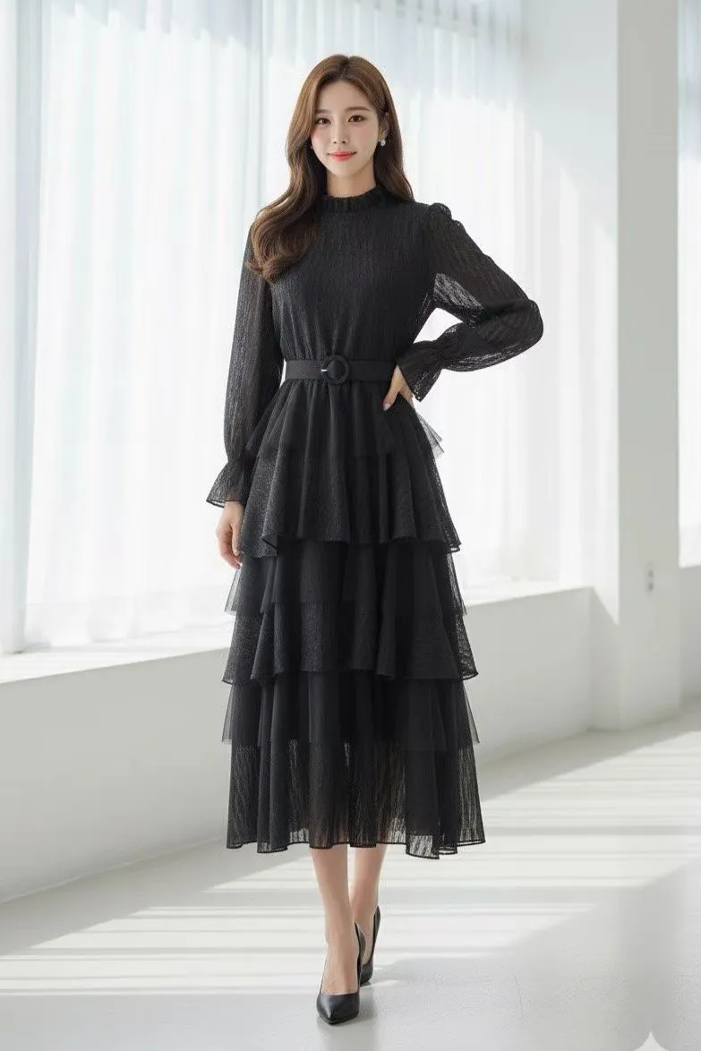 棉網紗+雪紡 視覺高級 面料優秀 附腰帶