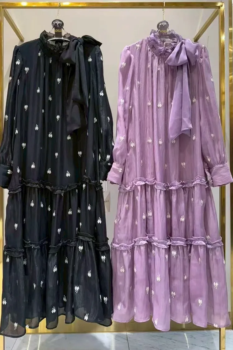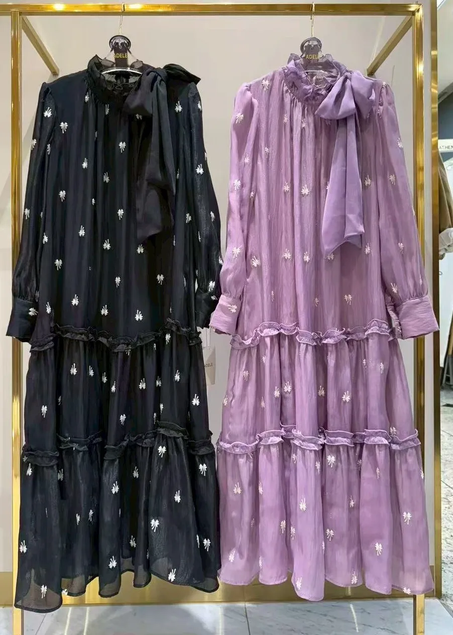 雪紡,絲巾可前後側綁 三層蛋糕裙 精緻蝴蝶結刺繡