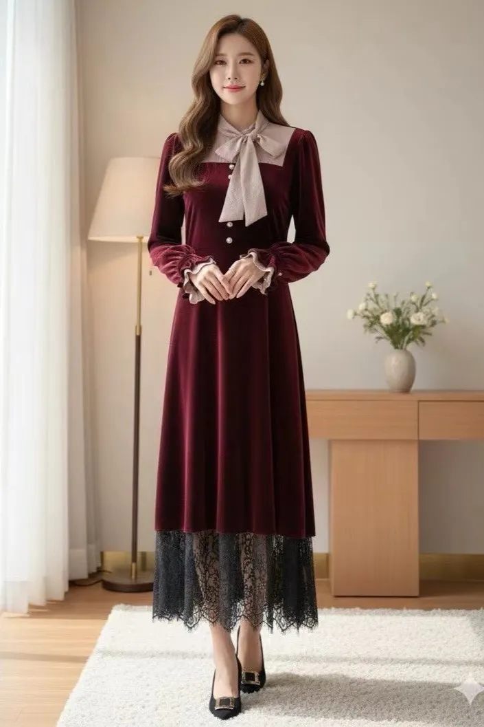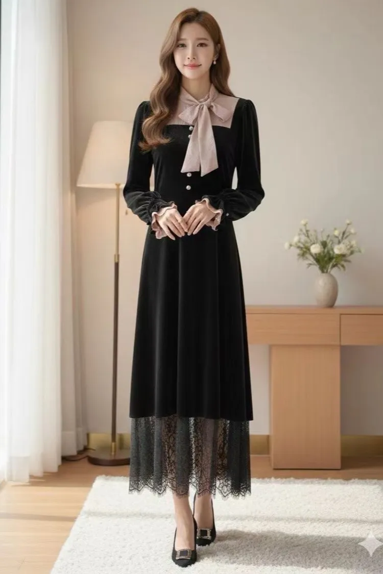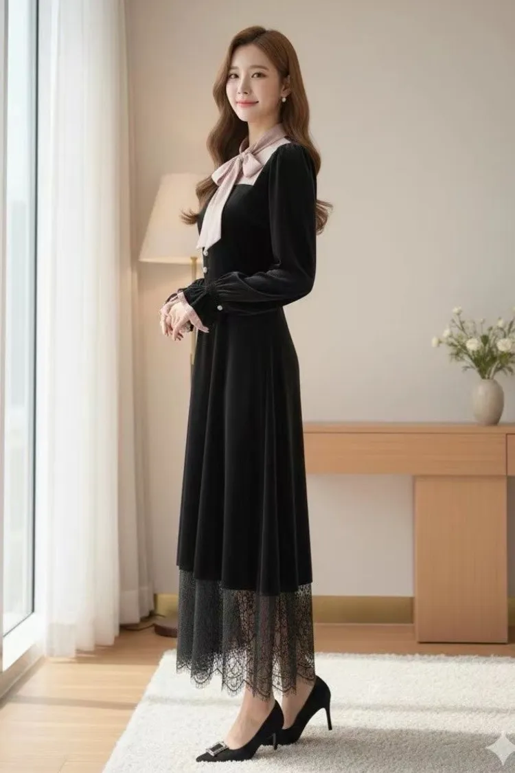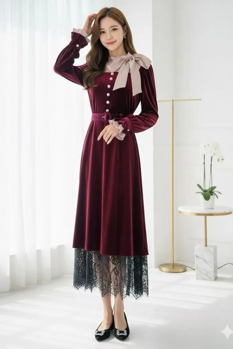 天鵝絨,緞帶不可拆 透光蕾絲下擺 高級光澤感