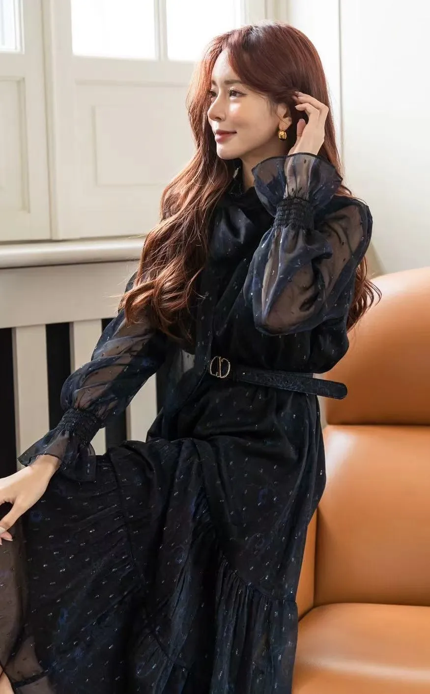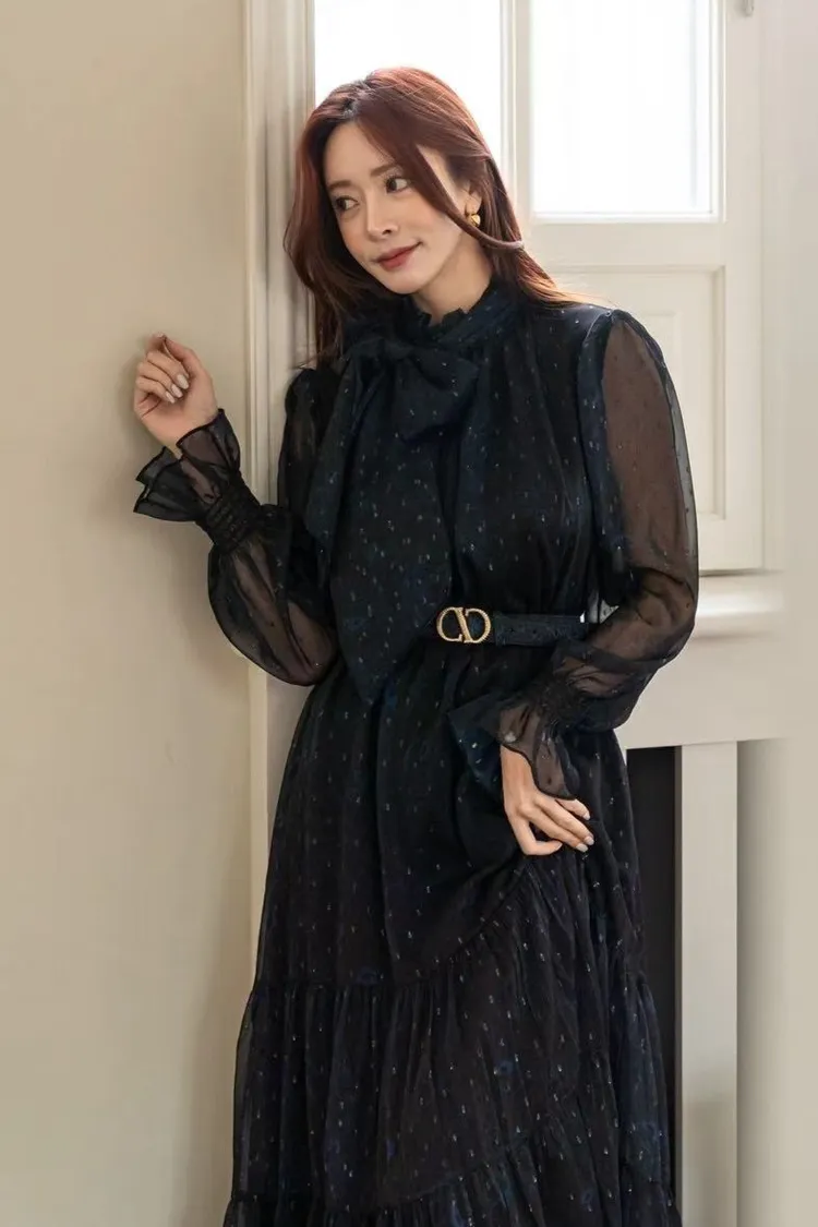 雪紡,顯瘦版型 附腰帶 銀絲車線 低奢華麗 側肩綁帶可拆
