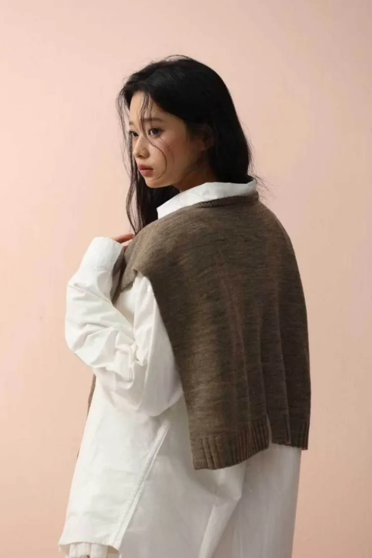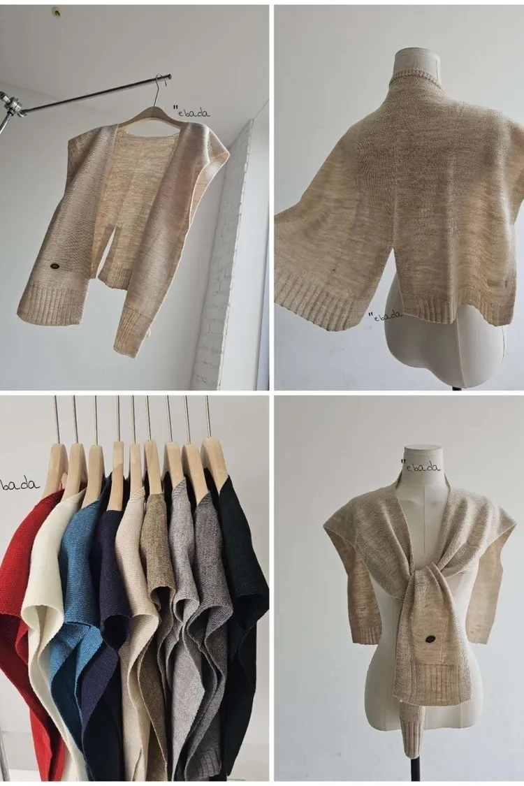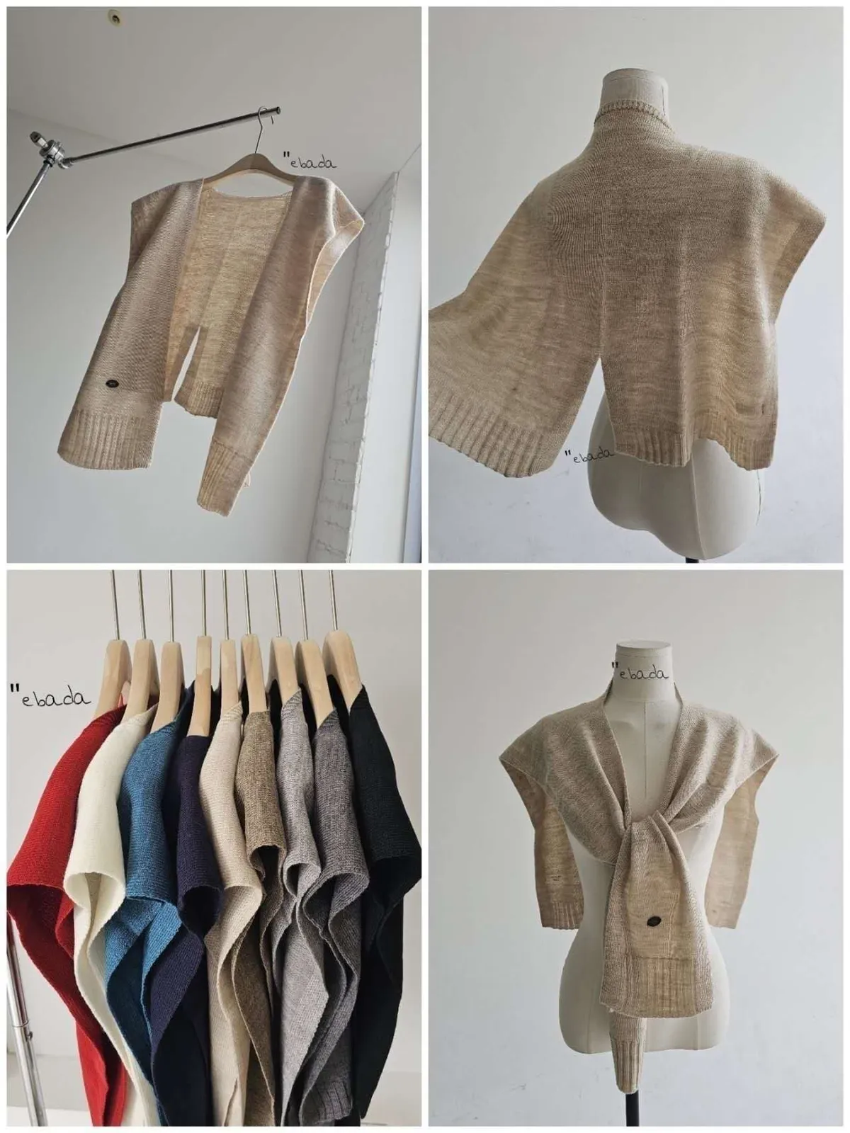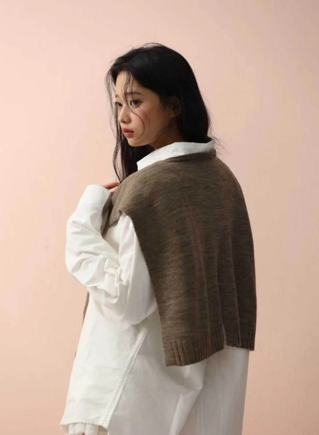 羊毛20%+壓克力 背後披肩 前面圍巾 一體成形 無毛感