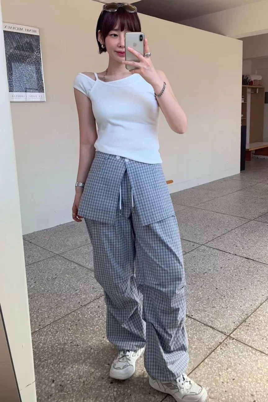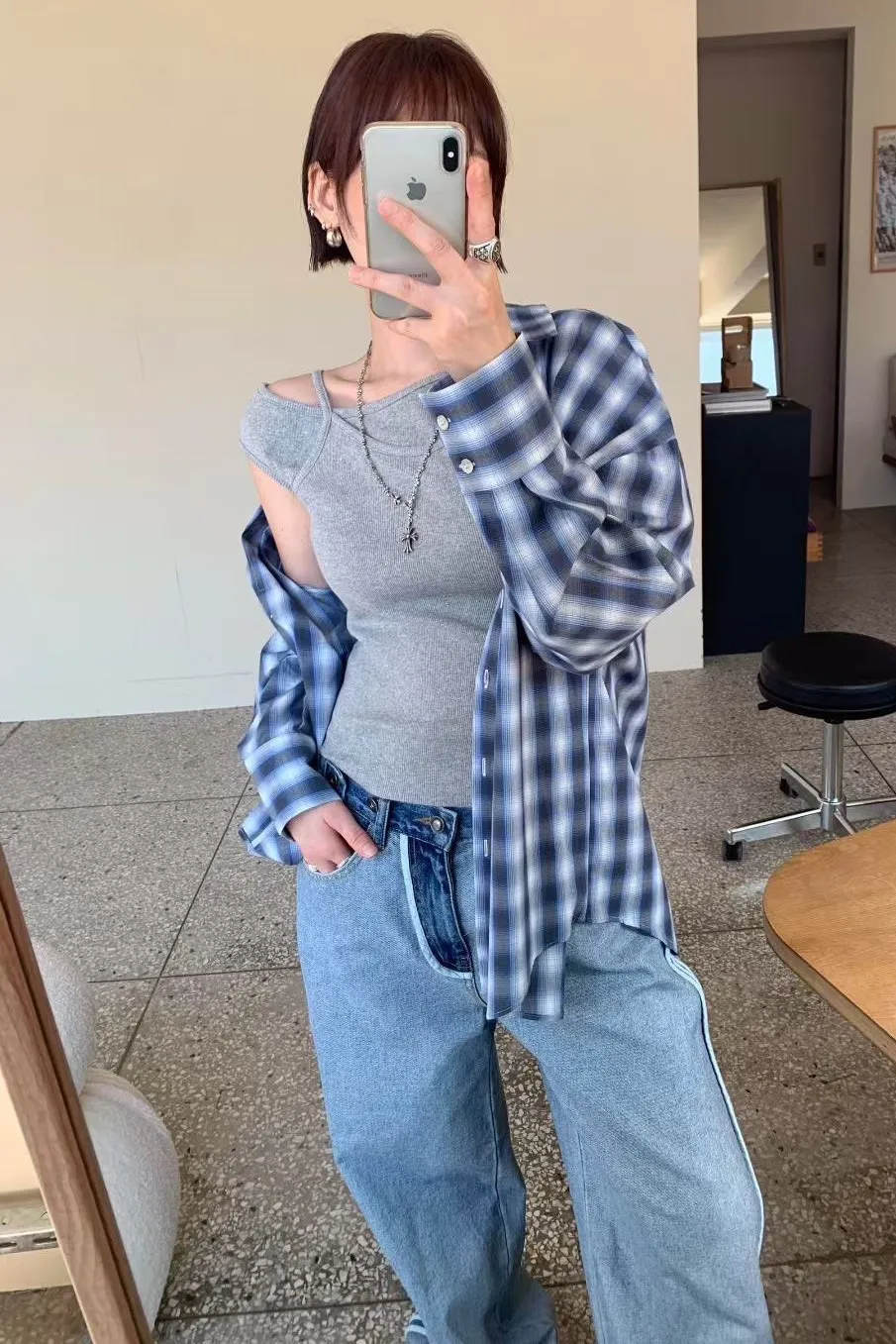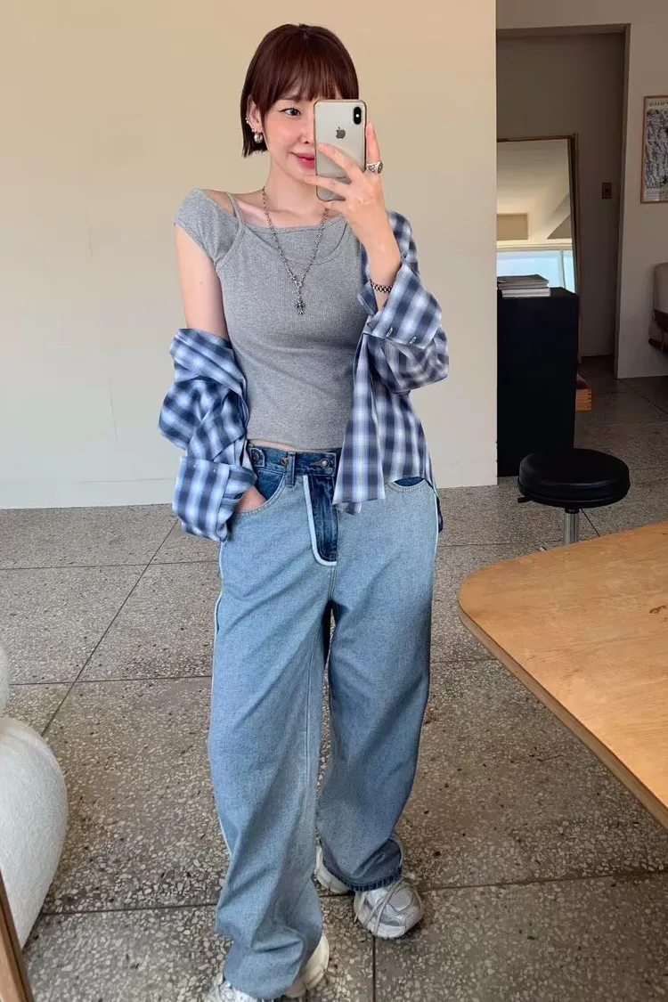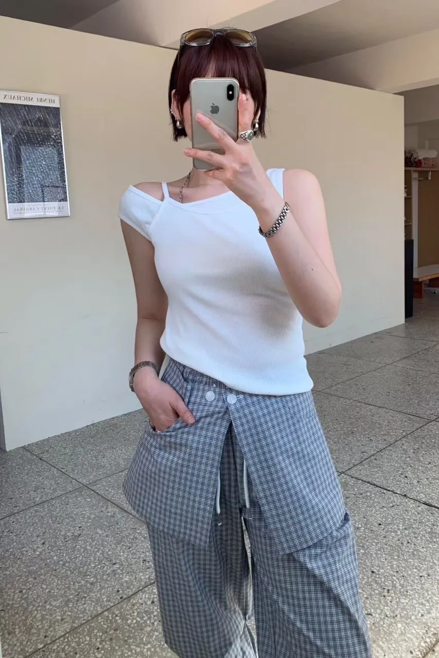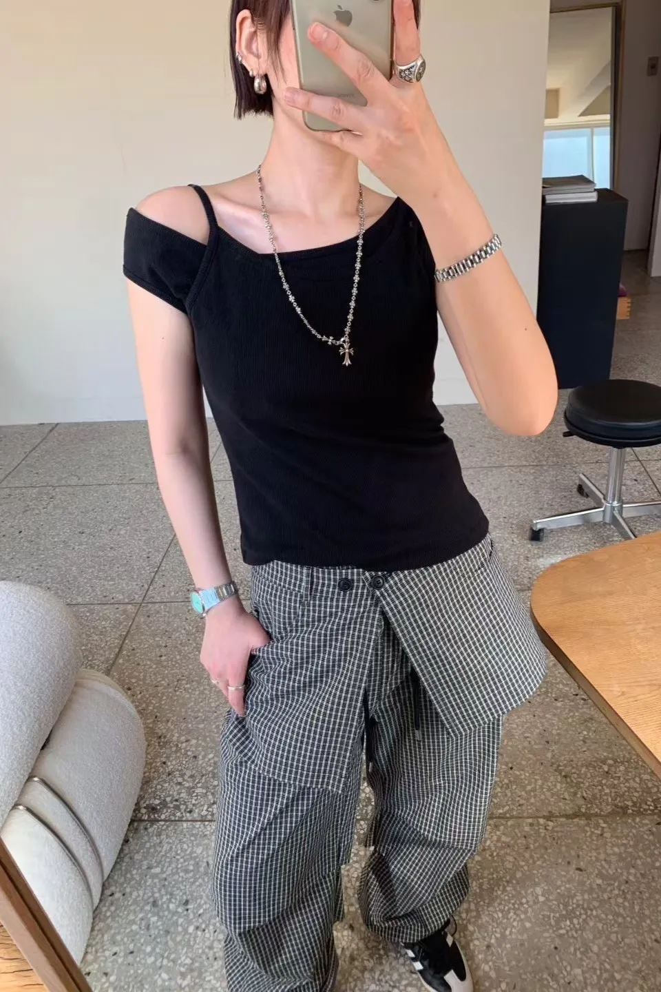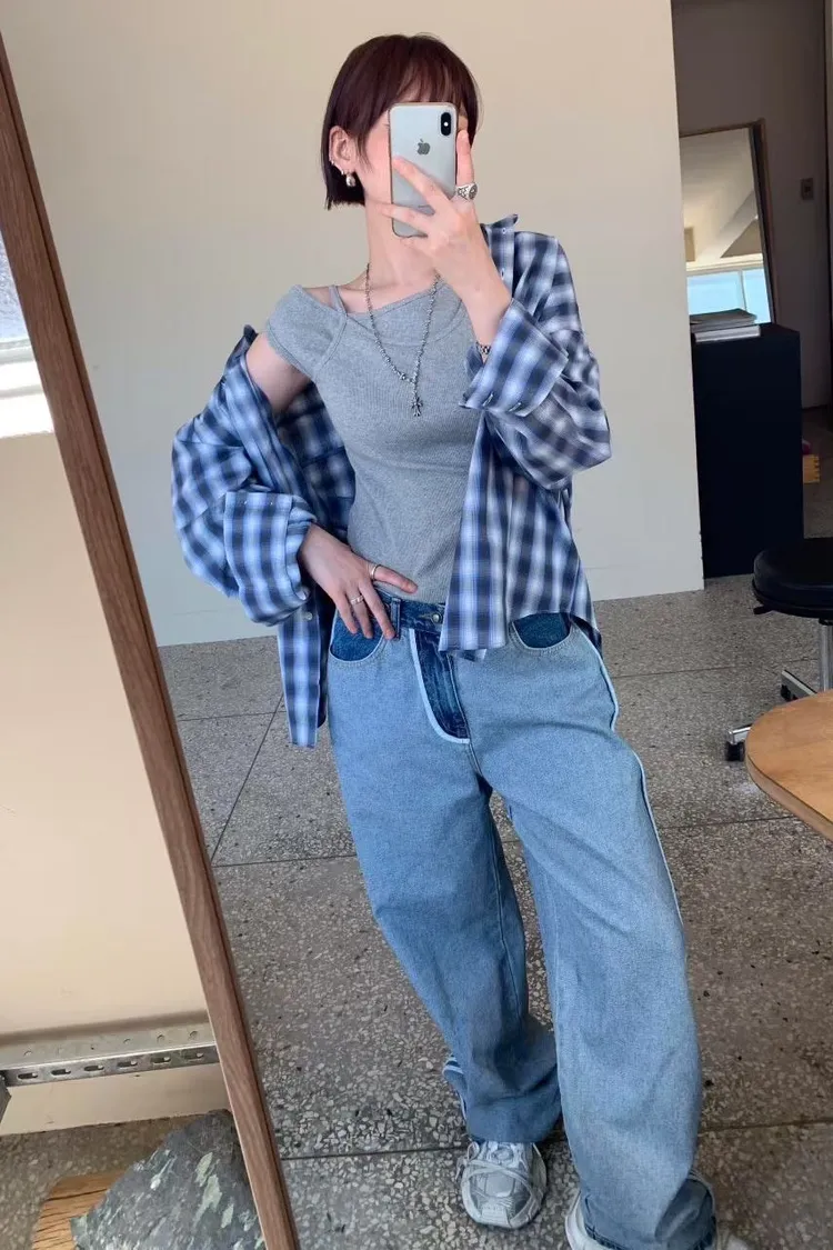 棉+彈力 薄款透氣有彈性 小露鎖骨 假兩件 不透有半截內裡 夏天合適