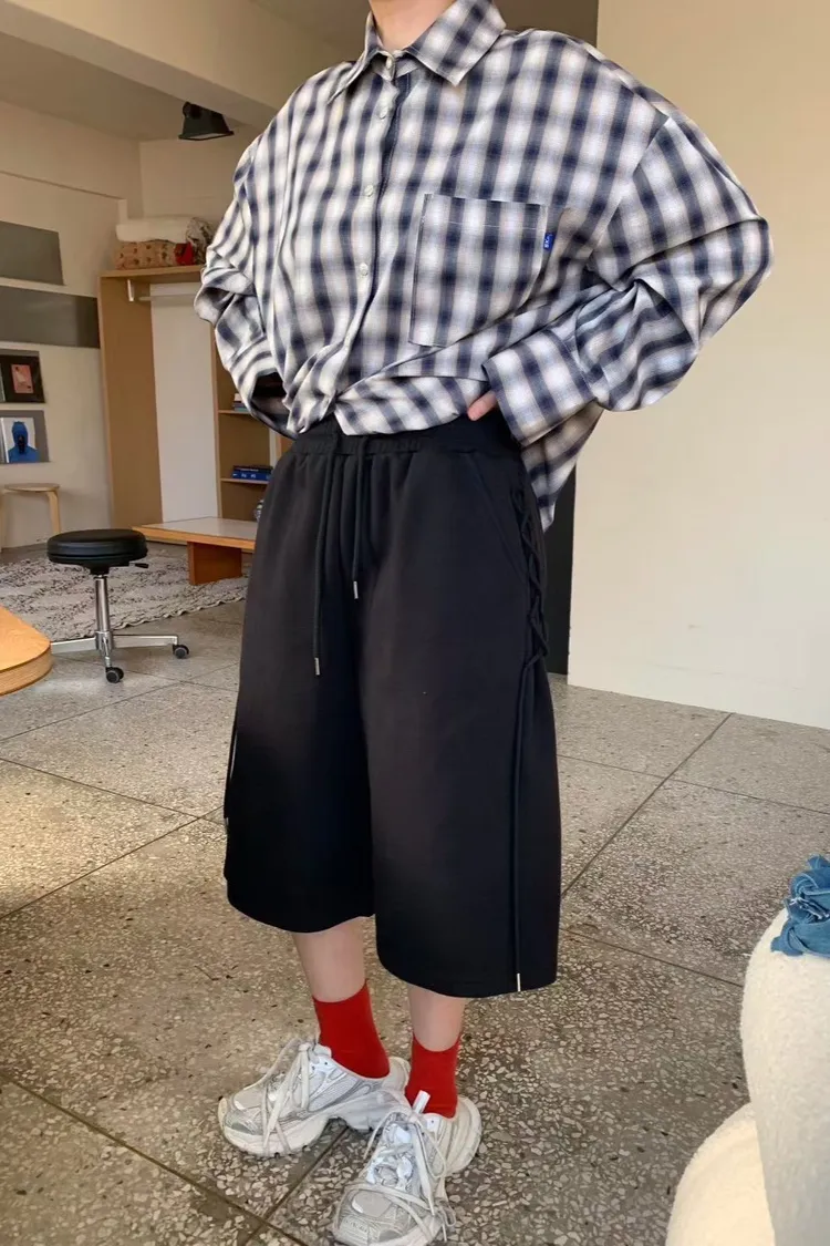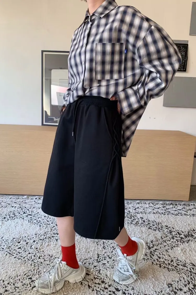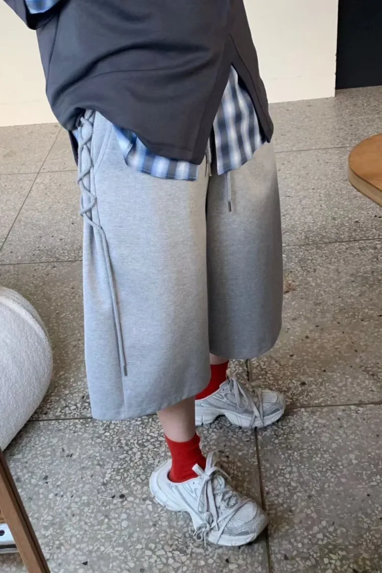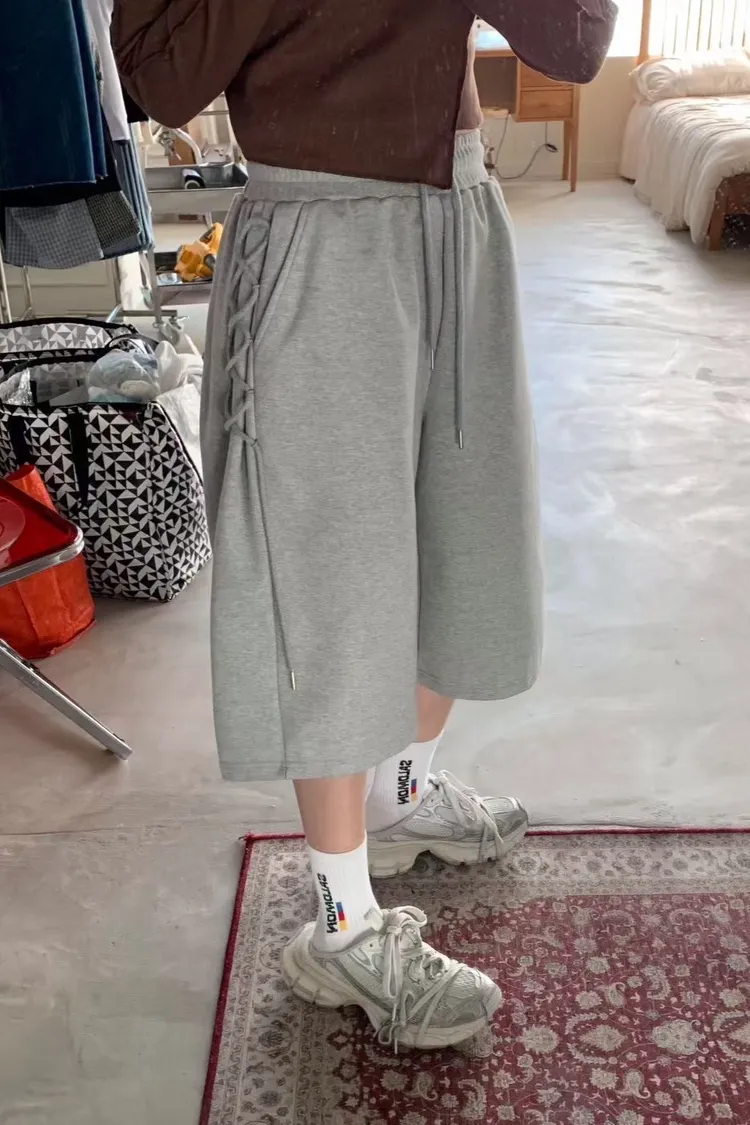 棉 側腿綁繩設計 挺度面料 全腰鬆緊 有口袋 不限身形