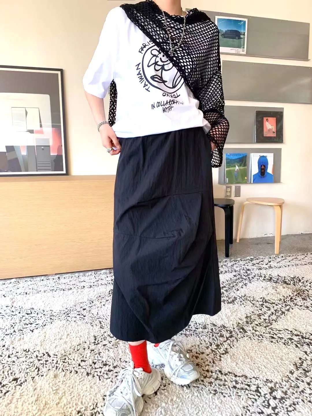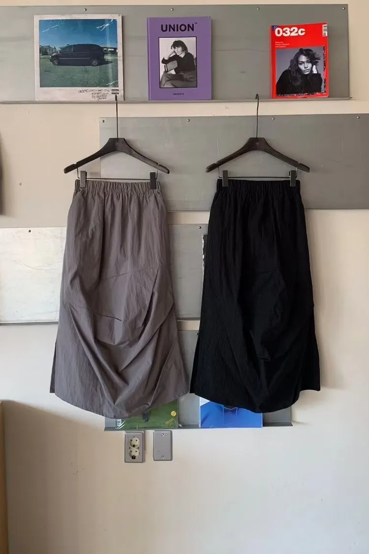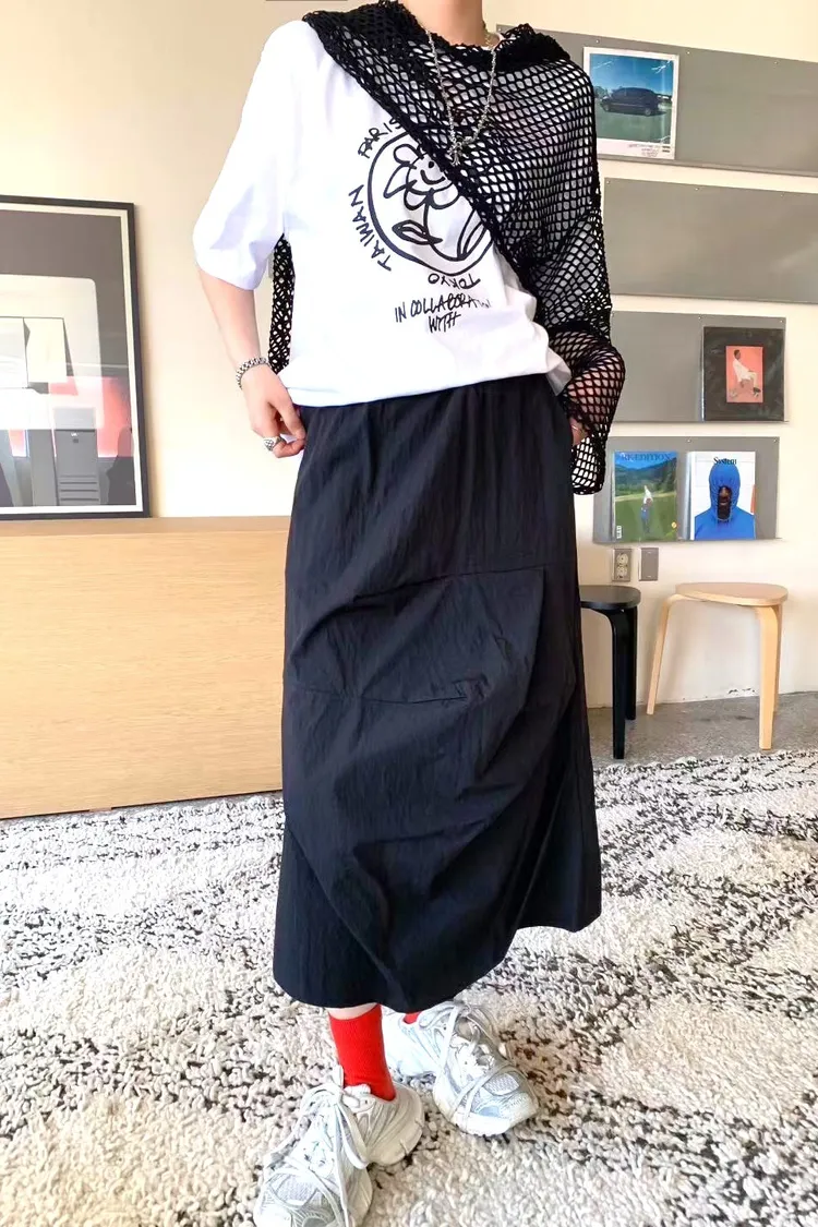 棉+尼龍 立體摺線設計 腰有鬆緊 有口袋