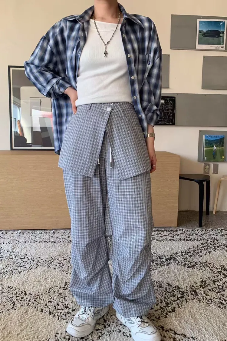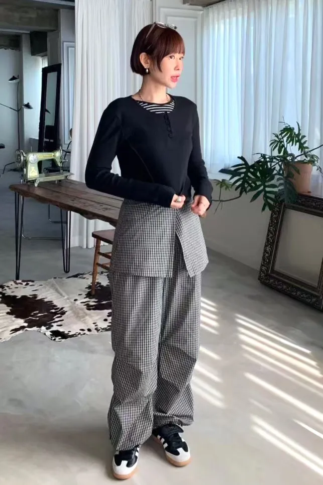 棉 兩件一組 外層可當裙罩或者上衣 全腰鬆緊有抽繩 有口袋 裙擺