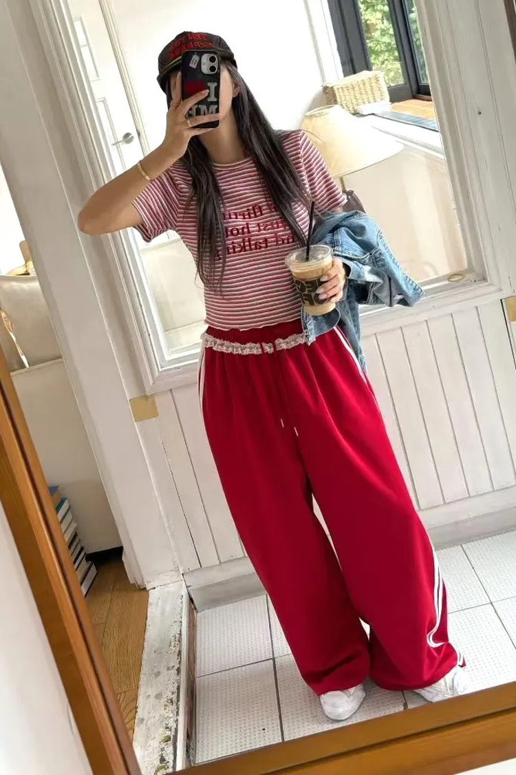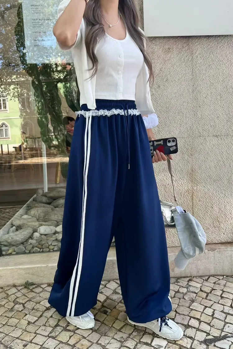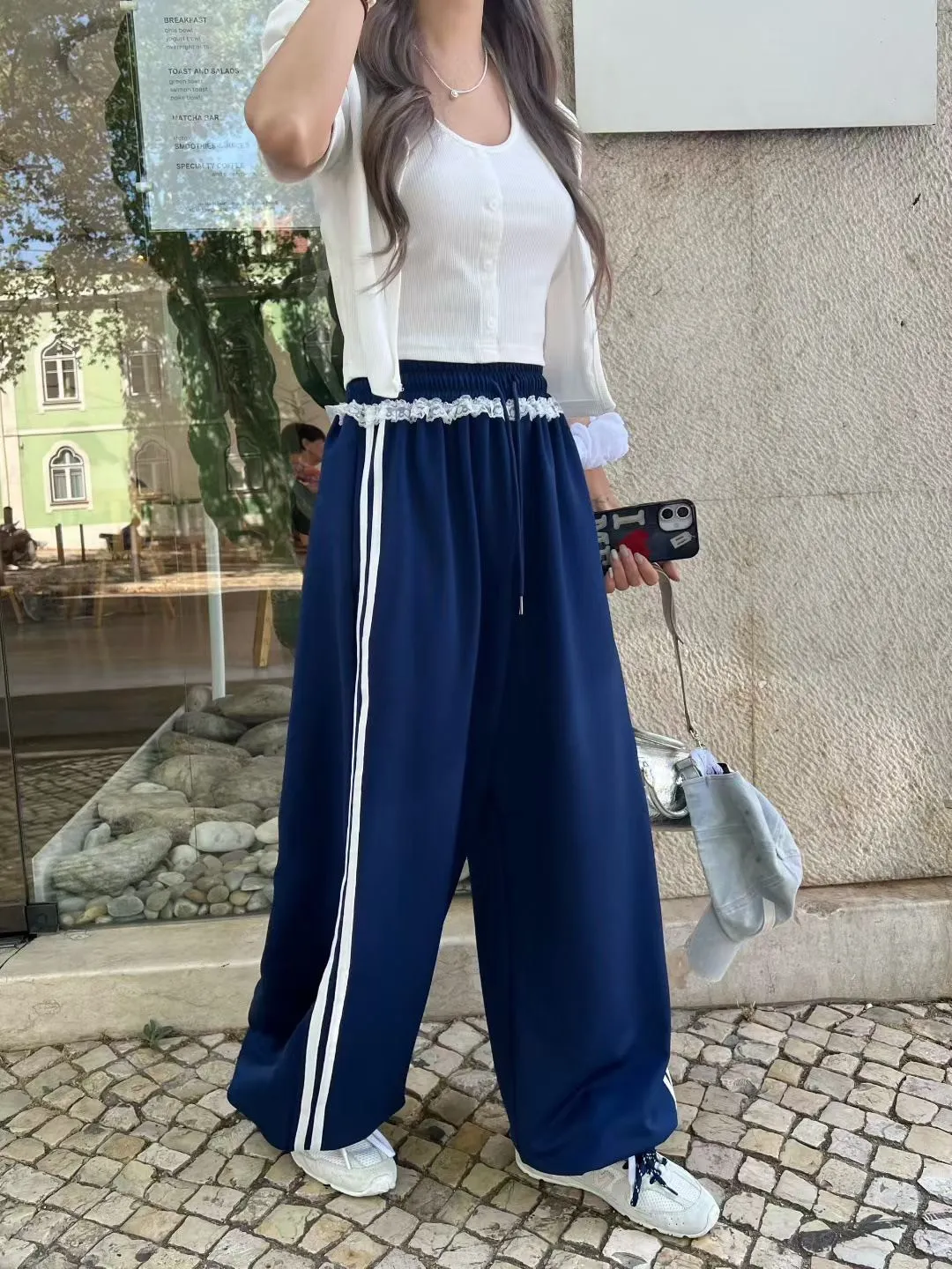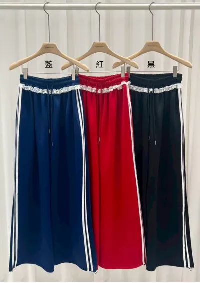 棉+聚酯,全腰鬆緊有抽繩 蕾絲美腰 有口袋 褲管抽繩 L號友善