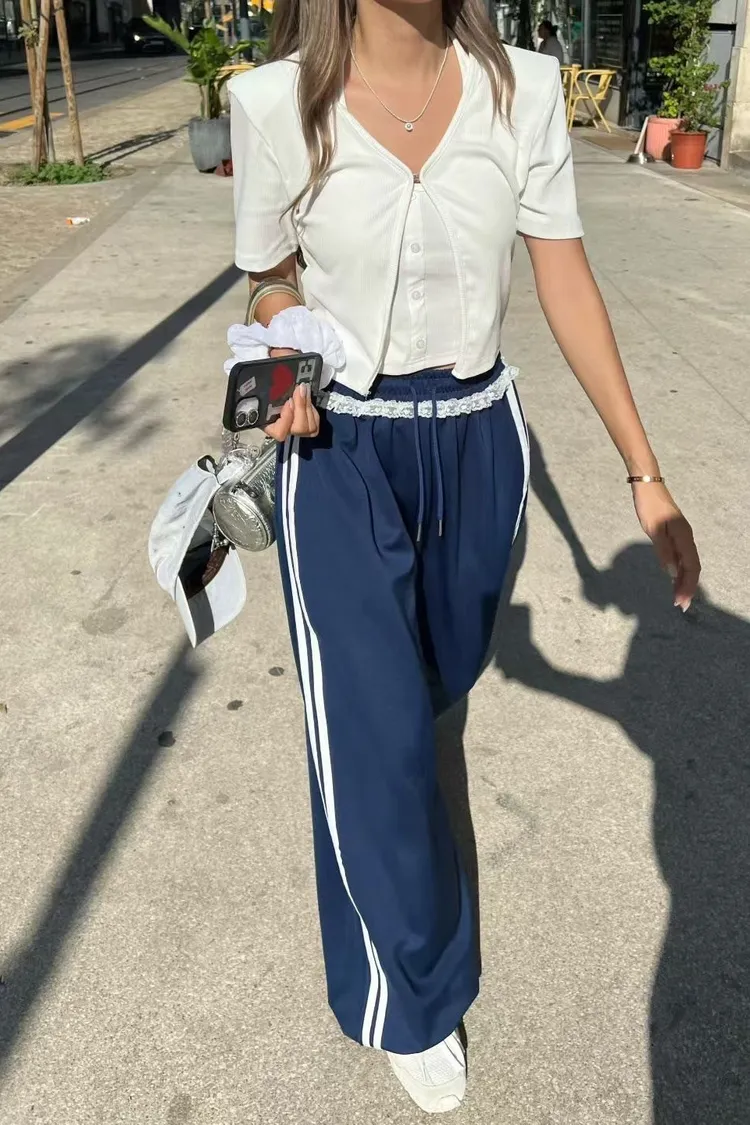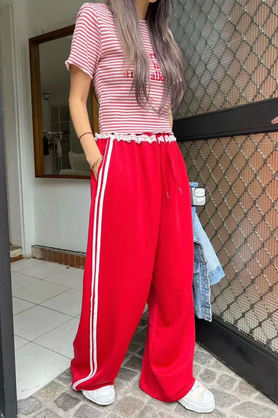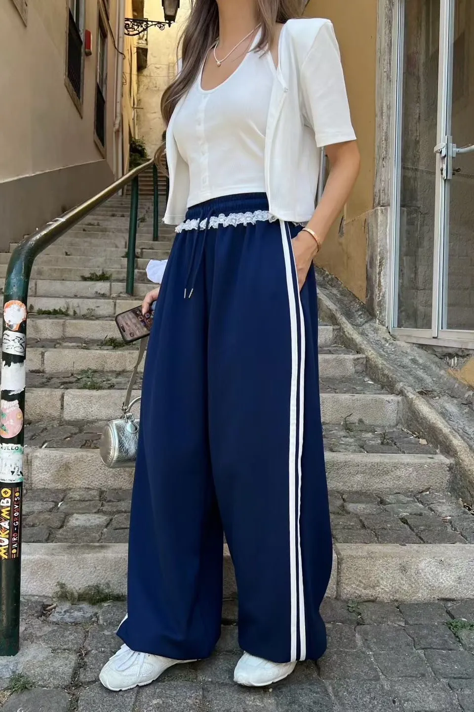 棉+聚酯,全腰鬆緊有抽繩 蕾絲美腰 有口袋 褲管抽繩 L號友善