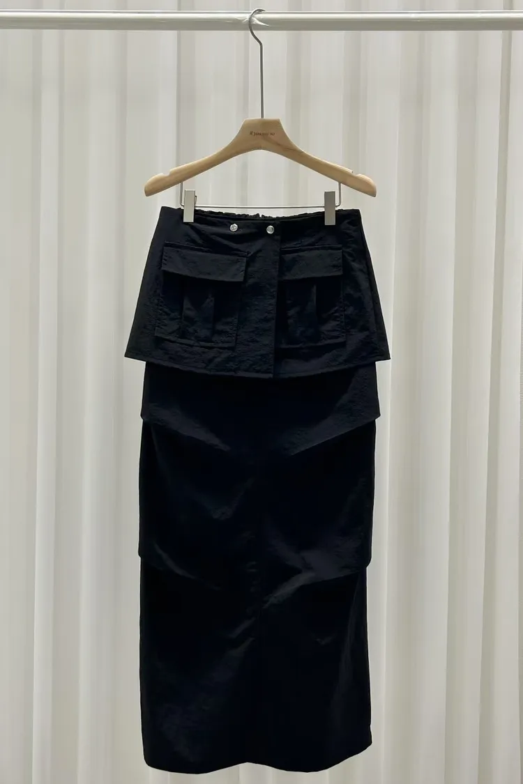 尼龍,偏柔軟 兩件可拆開 穿到M號 後腰鬆緊 後開叉