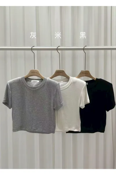 CY060套裝的短版中車線上衣 米 灰 黑 官網價$690 線上價$660