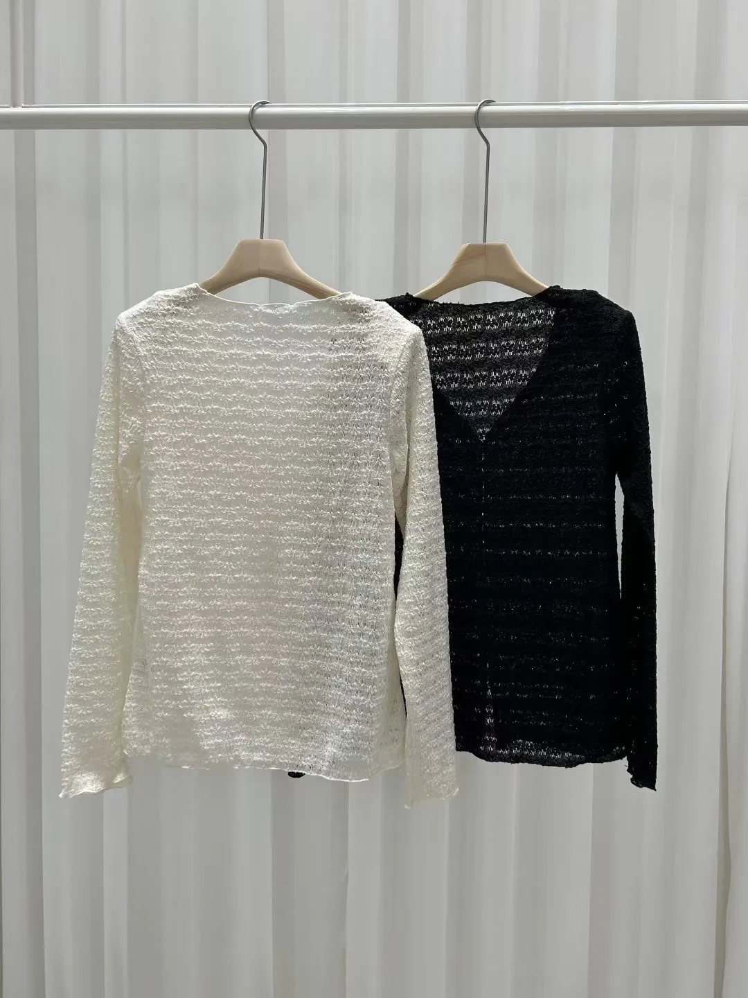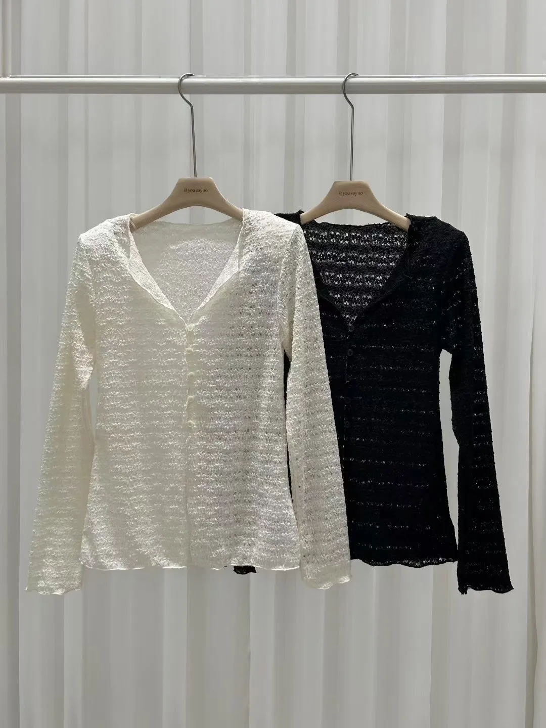 CY072推薦款薄款蕾絲開釦上衣罩衫 米 黑 官網價$790 線上價$760