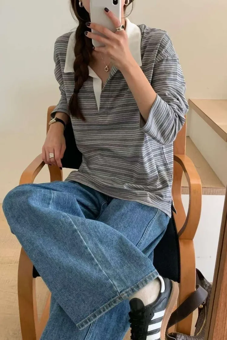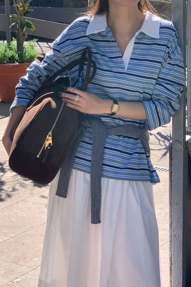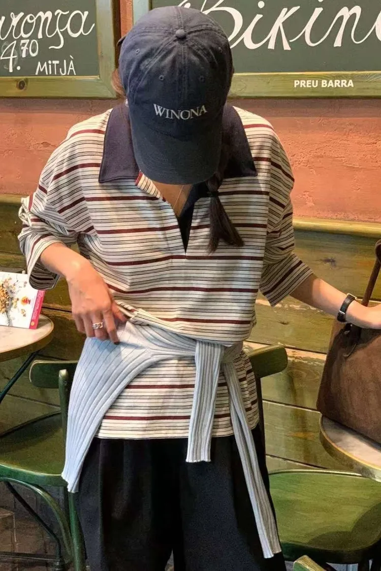 棉 經典不敗款 粗細相間條紋 開襟顯瘦 側開叉 寬鬆舒適 L號友善