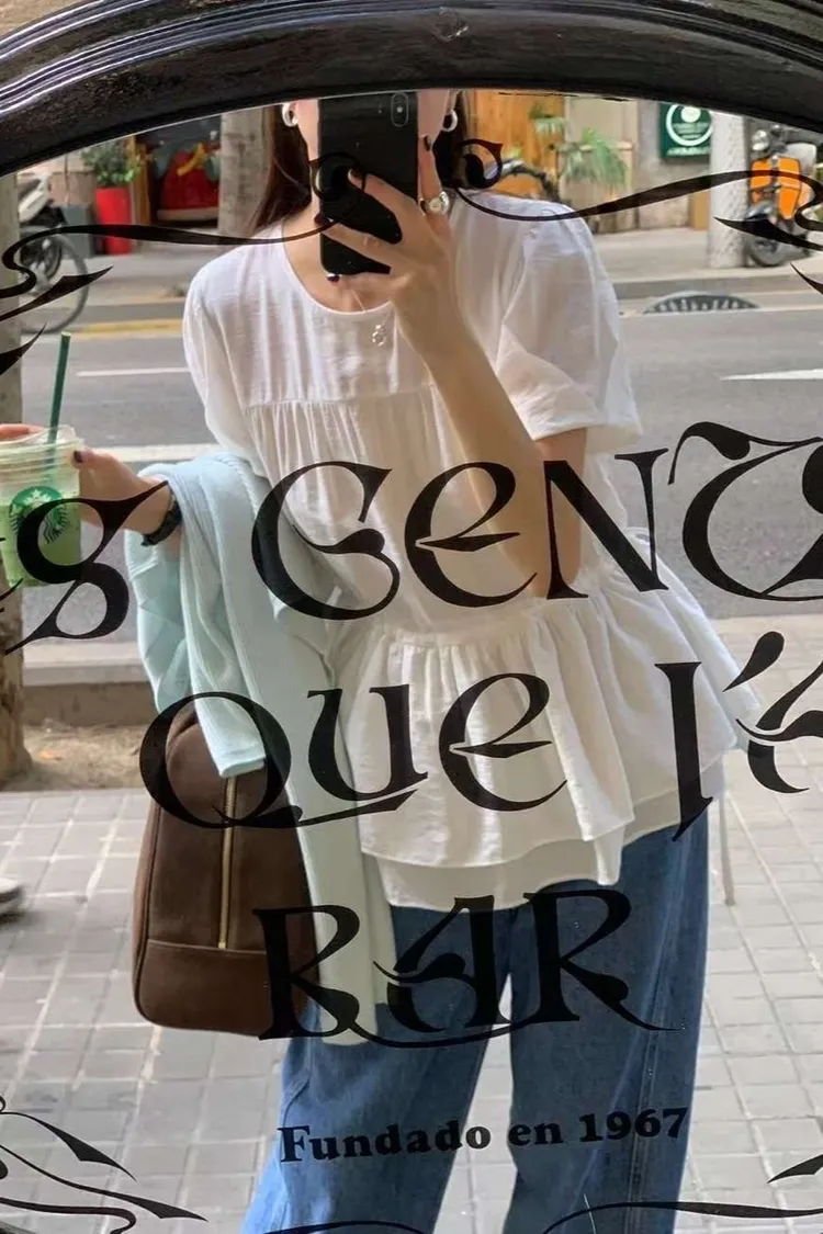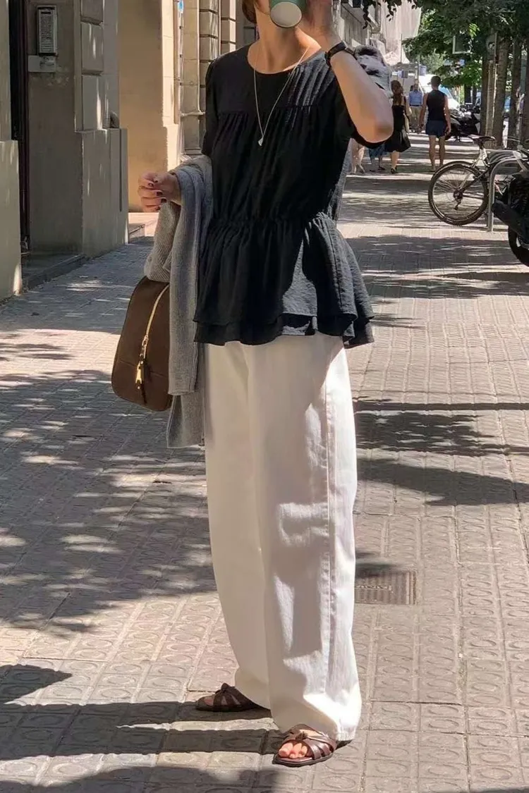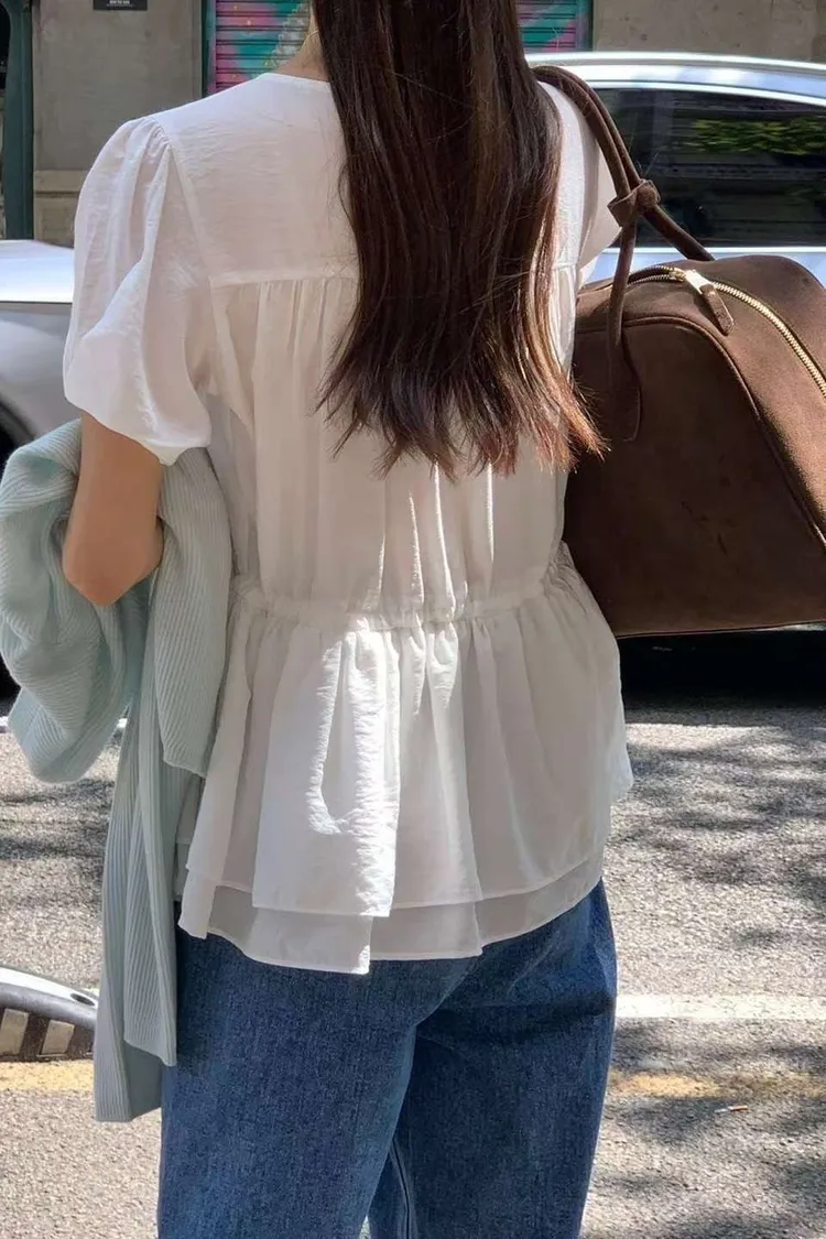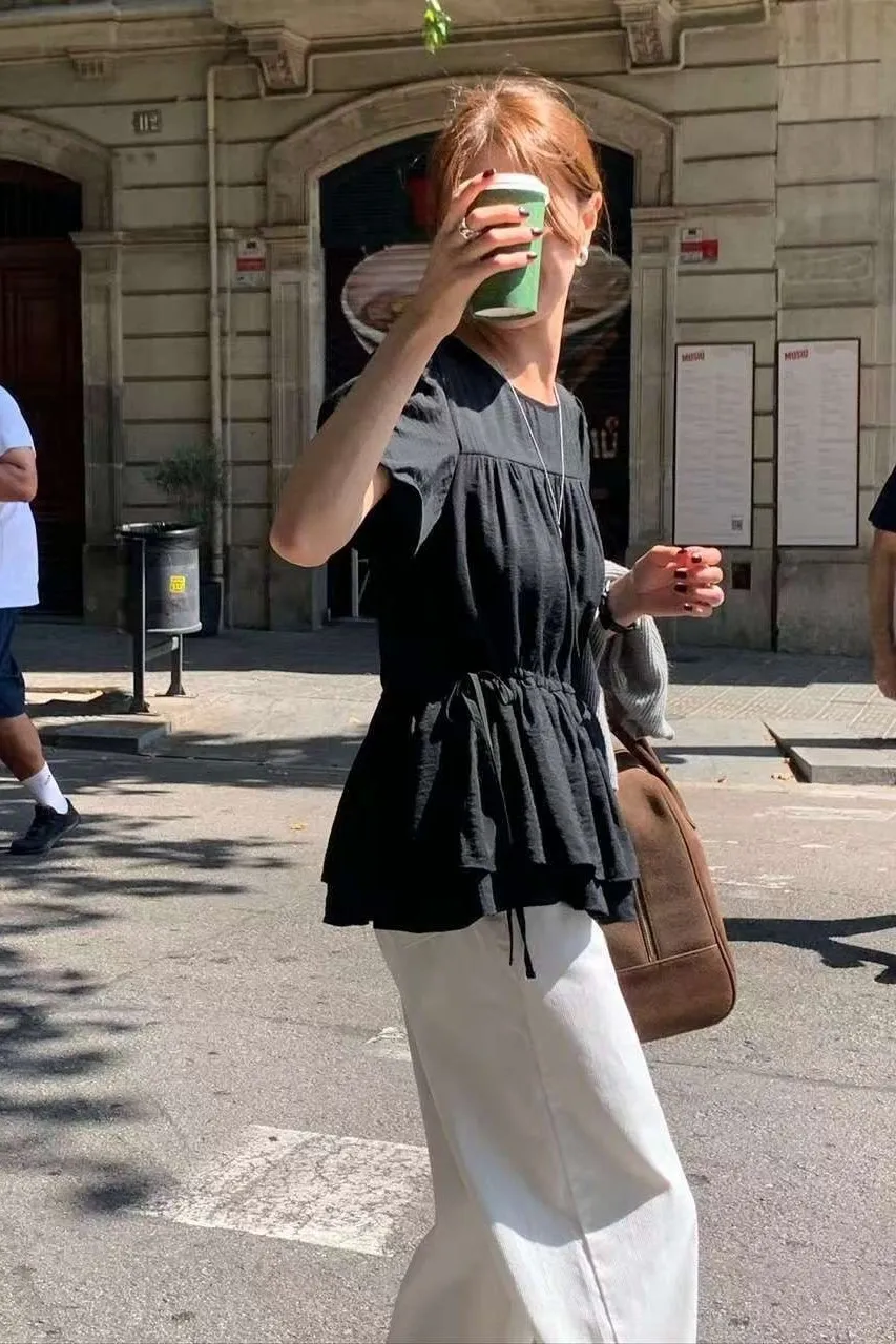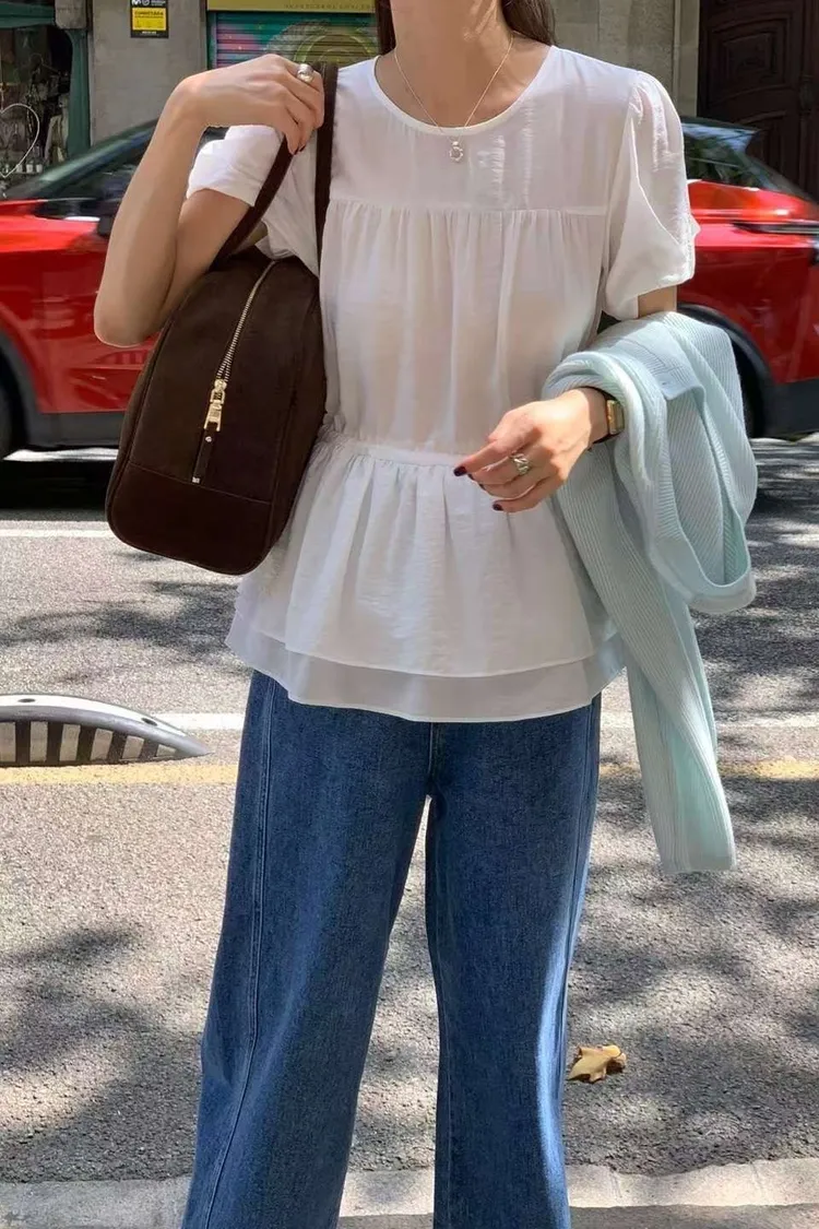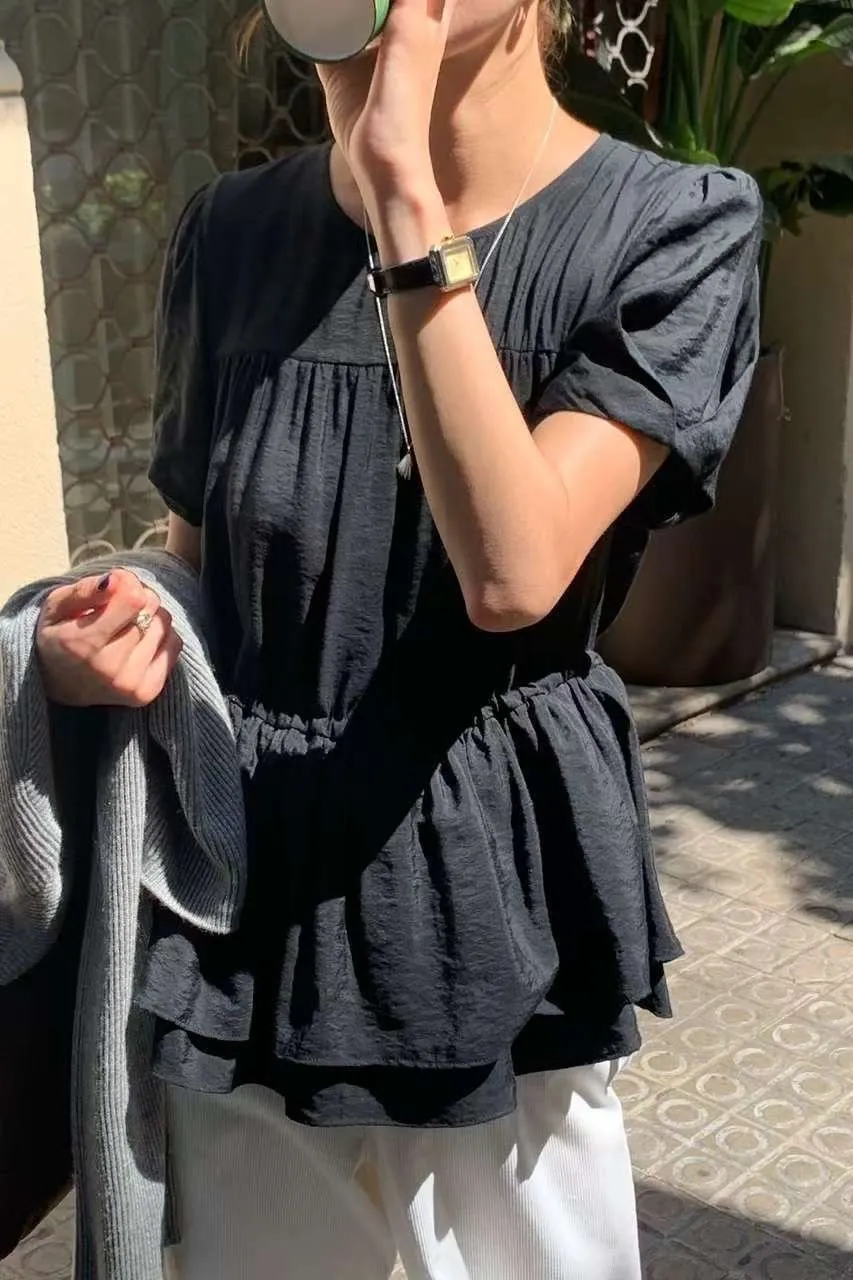 CY087雙層下擺娃娃裝短袖上衣 白 黑 官網價$650 線上價$620
