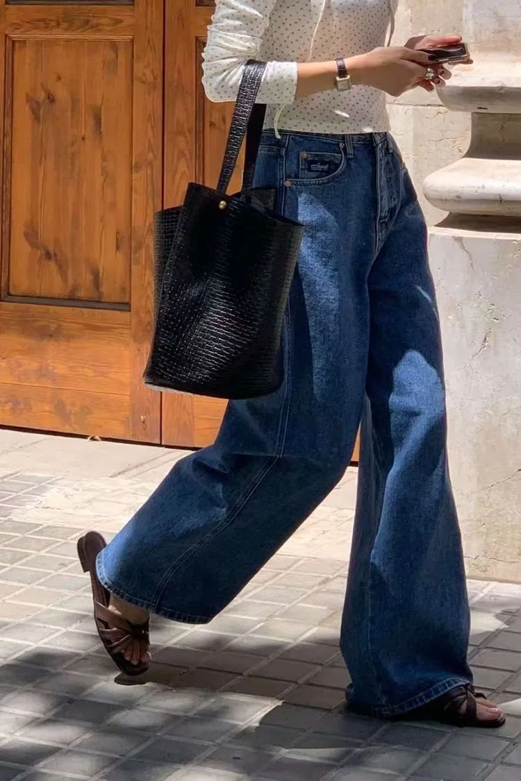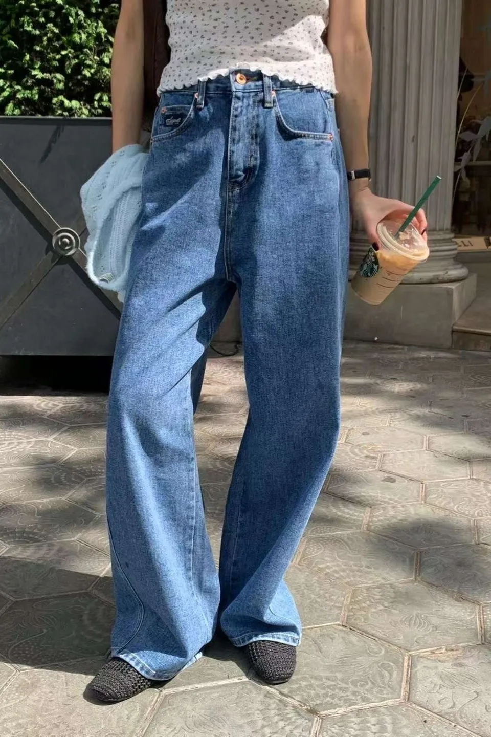棉 天然刷藍 釦鍊穿脫 有口袋 四季款厚度 寬鬆直筒褲管