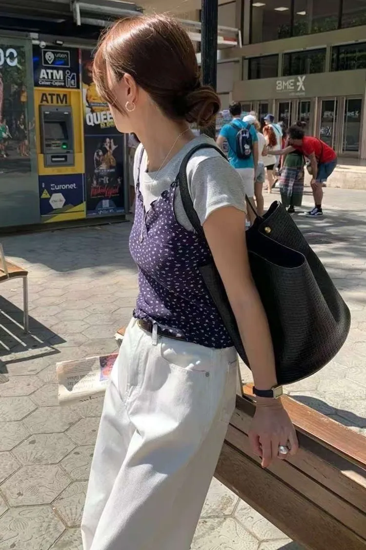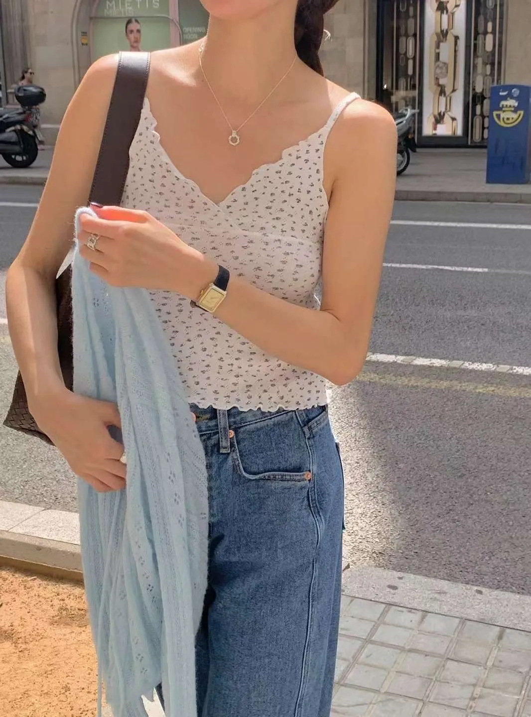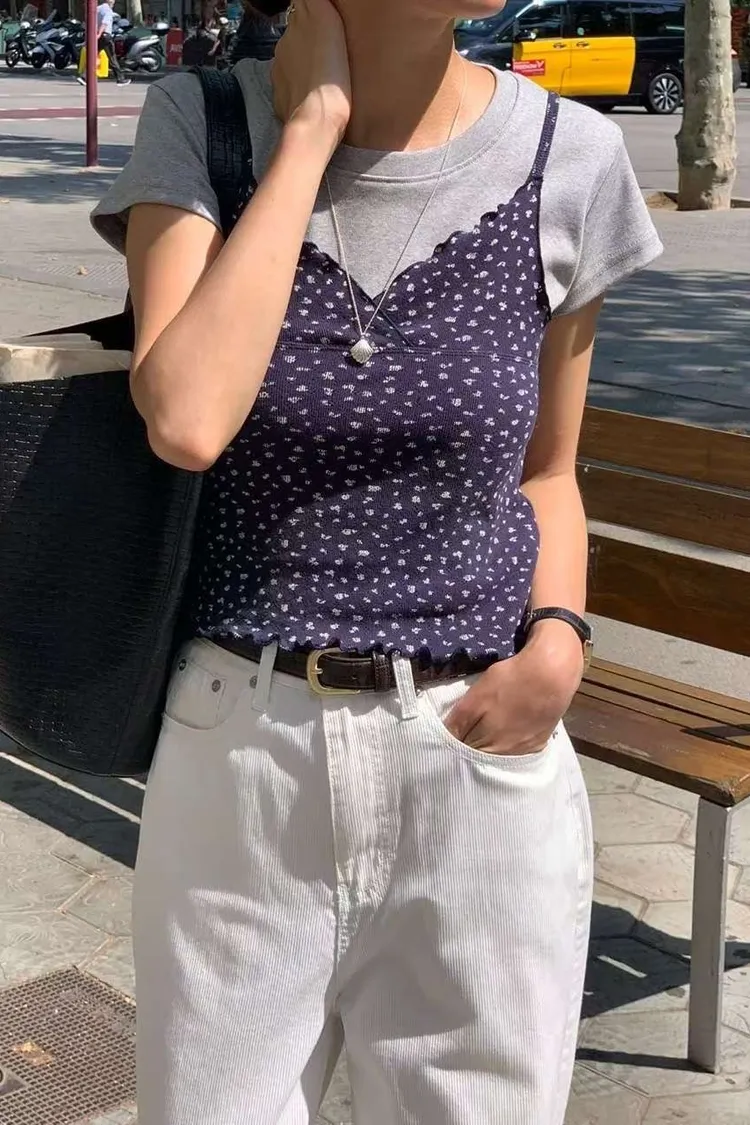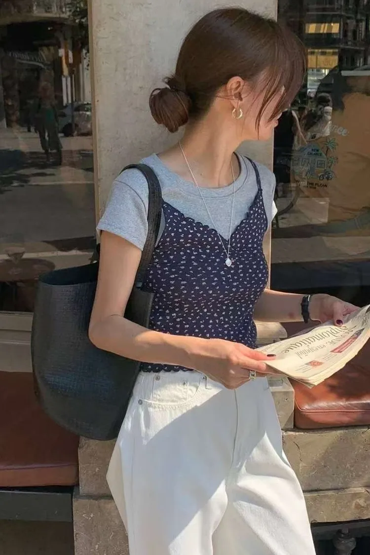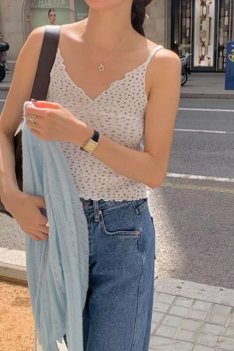 棉 柔軟透氣 親膚輕盈 韓系小碎花 肩帶不可調 交疊V領 木耳下擺