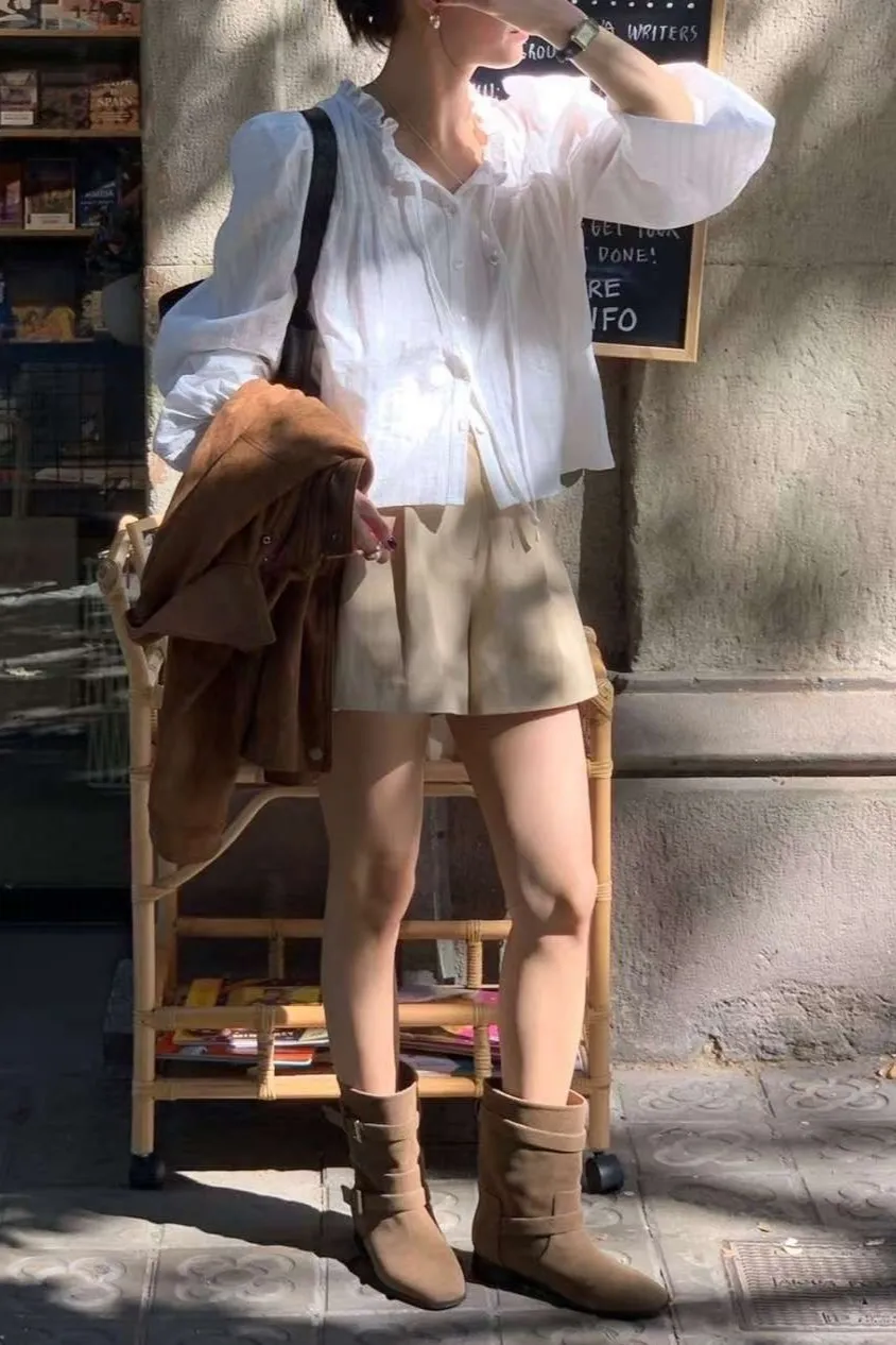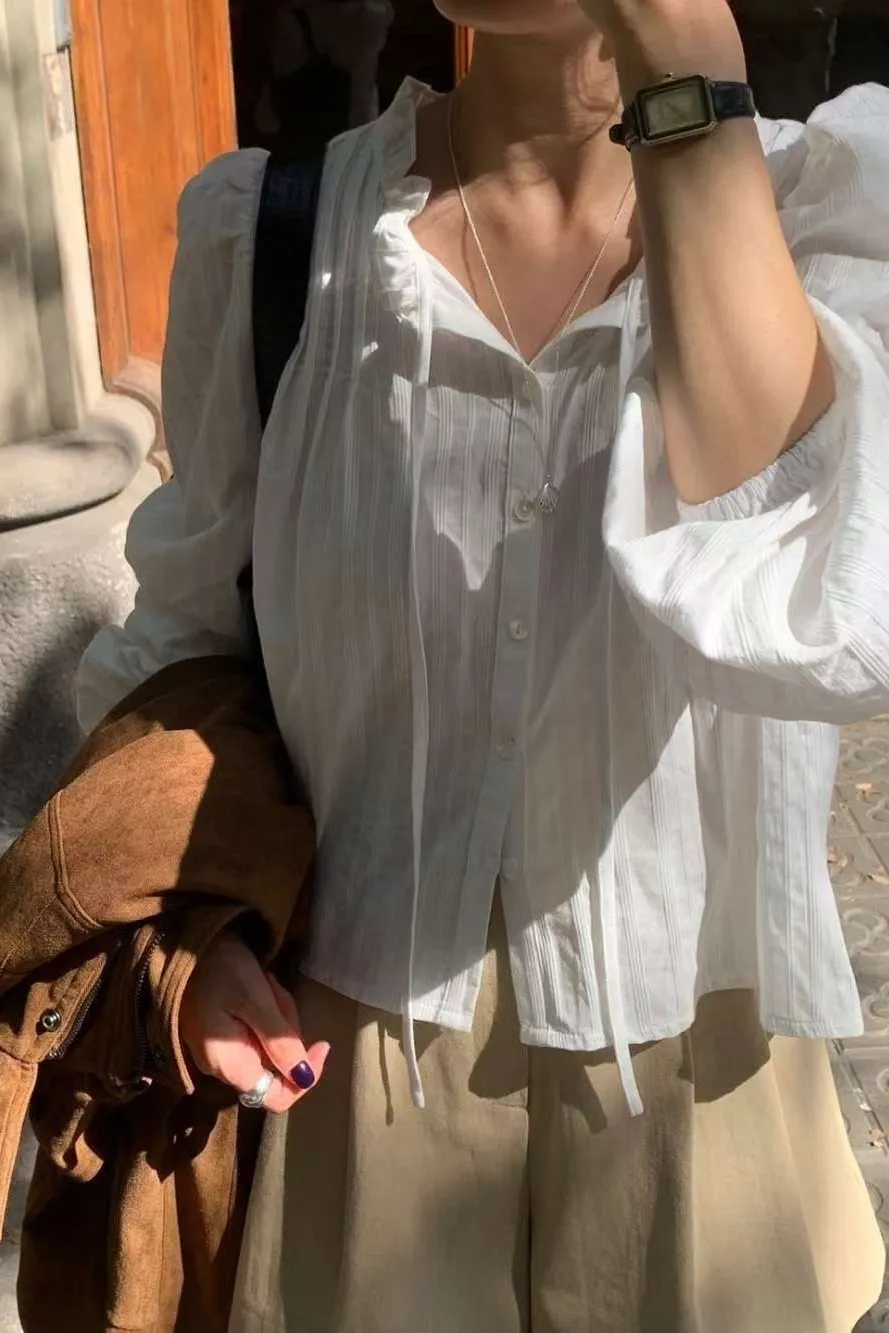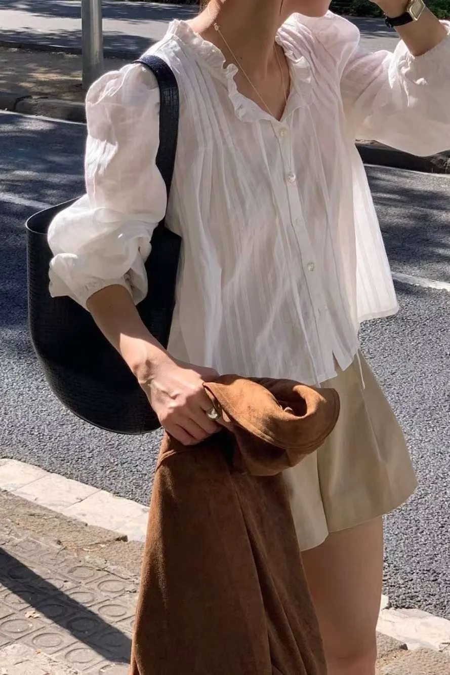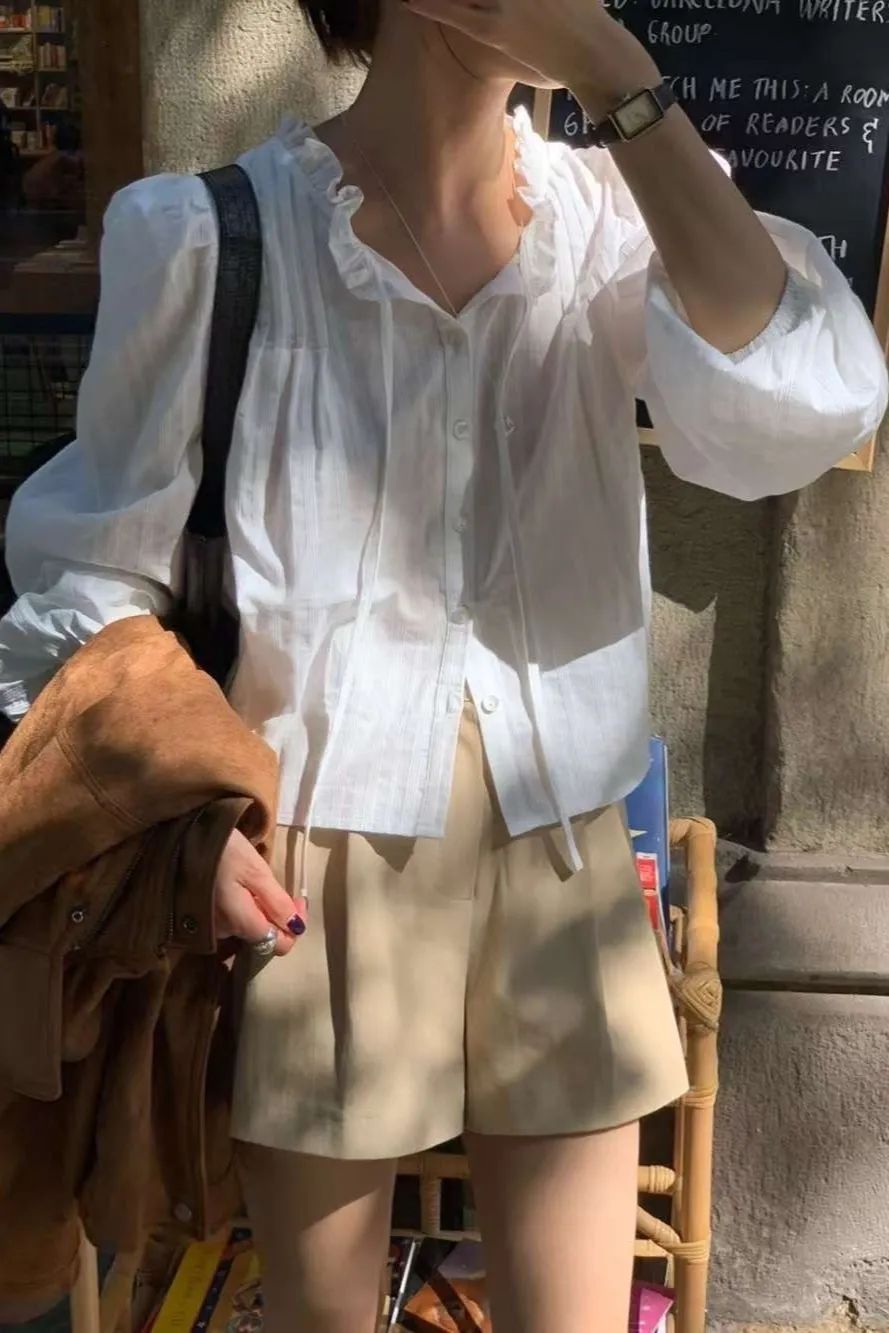 棉 推薦款 薄款輕盈 風琴細褶 胸綁帶 氣質荷葉領 L號友善
