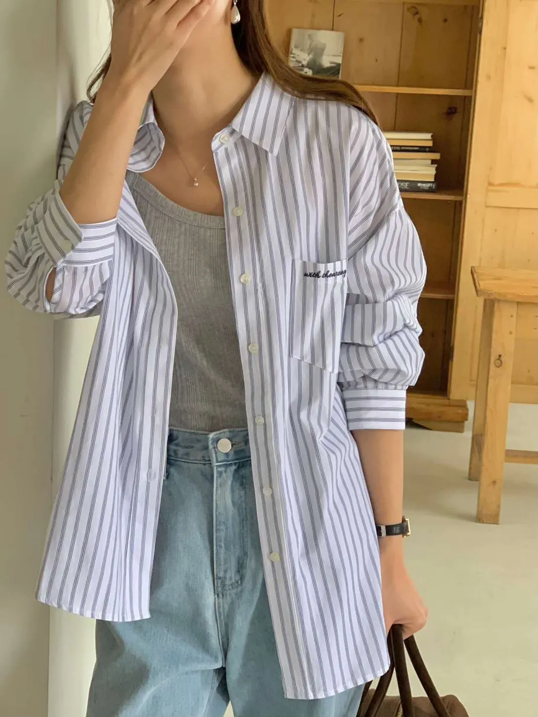 棉 薄款輕盈 透氣舒適 視覺高級感刺繡英文 百搭隨性風格