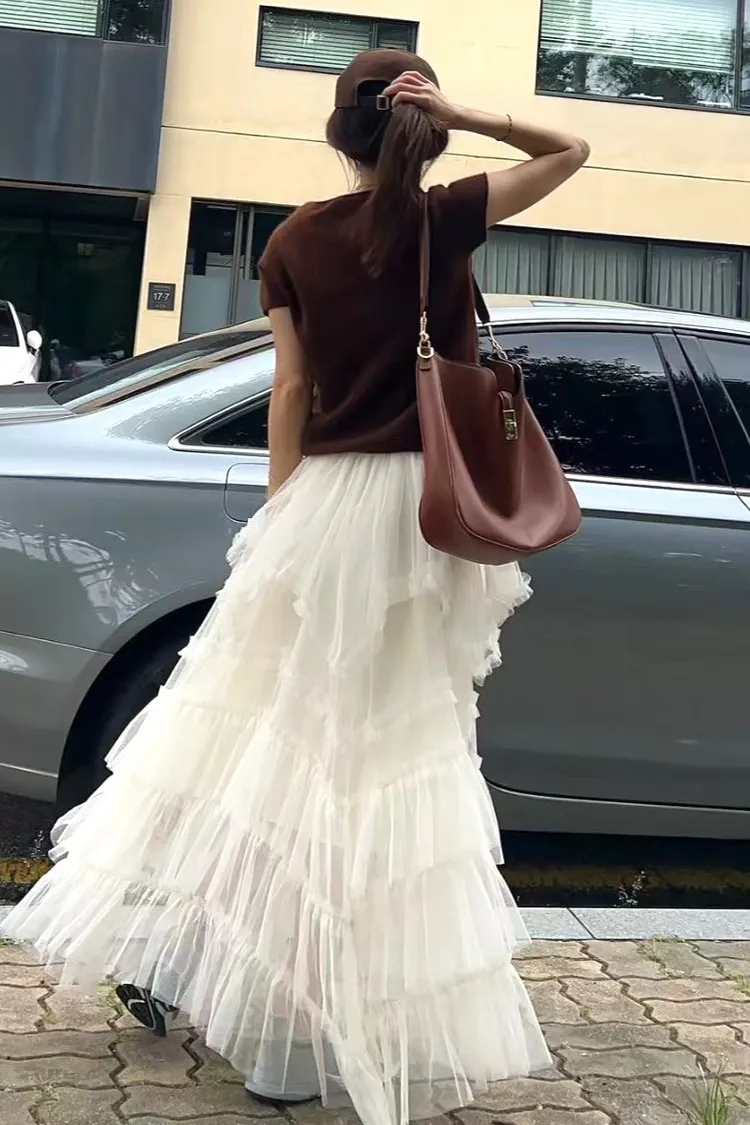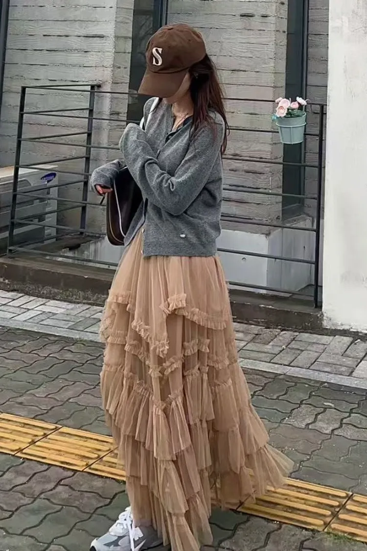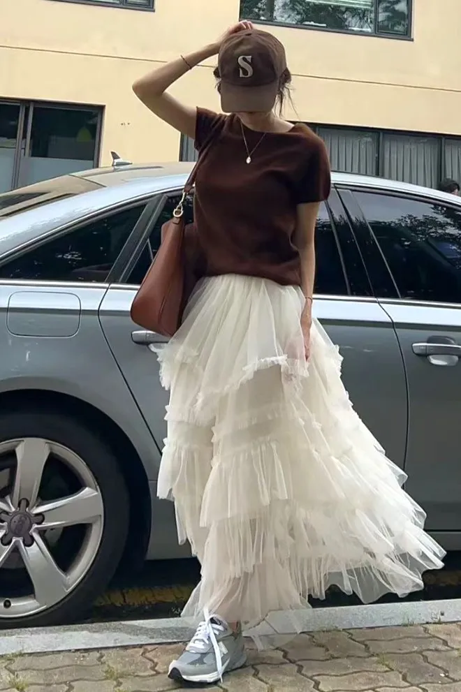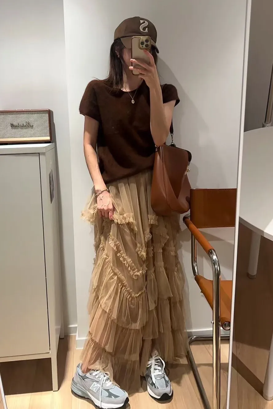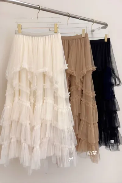 網紗+聚酯 自然蓬度顯瘦 立體層次 有內裡 全腰大鬆緊 XL友善