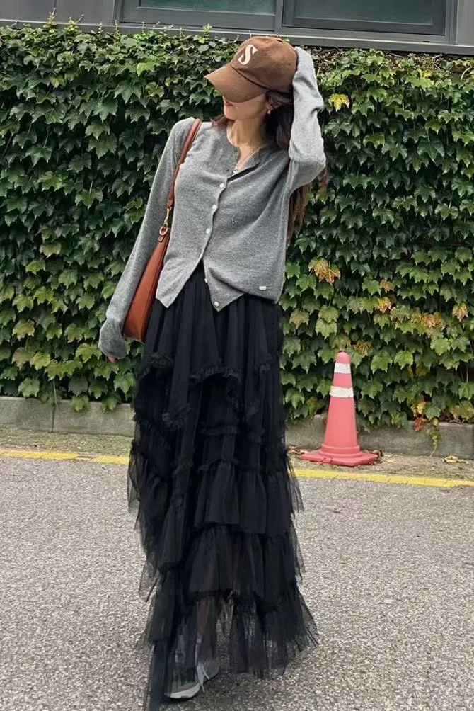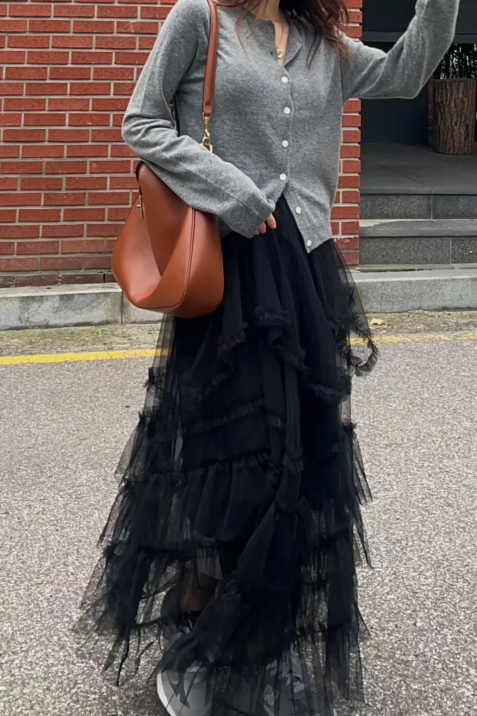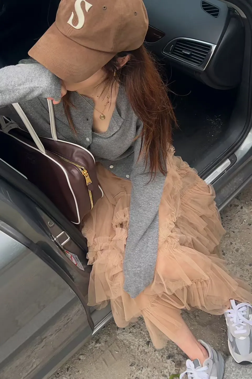 網紗+聚酯 自然蓬度顯瘦 立體層次 有內裡 全腰大鬆緊 XL友善