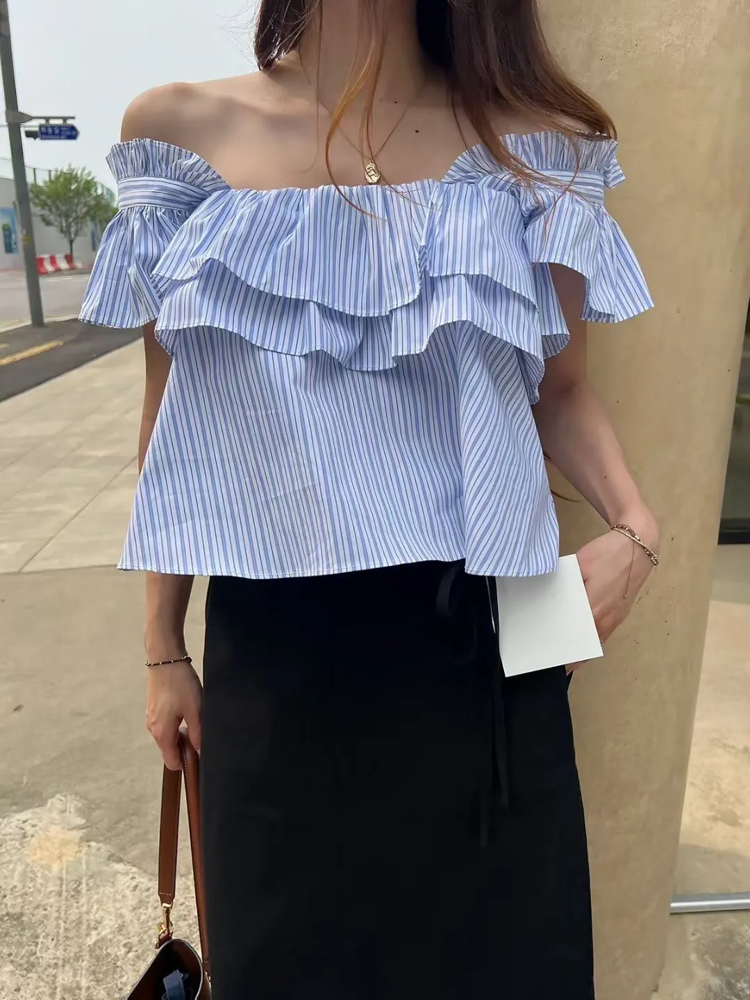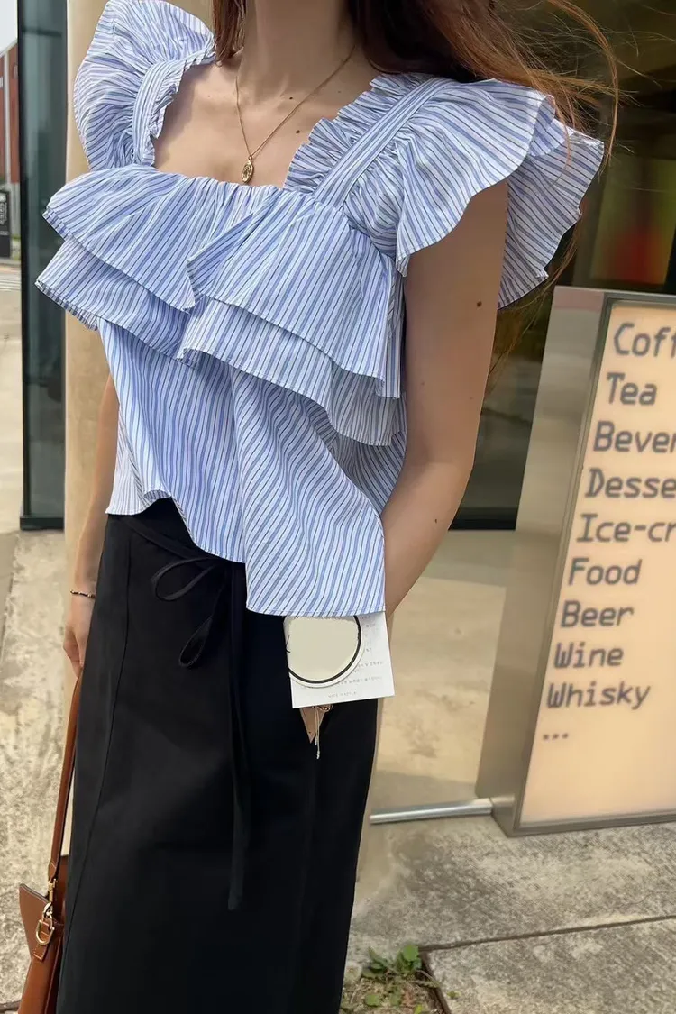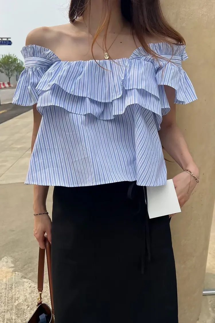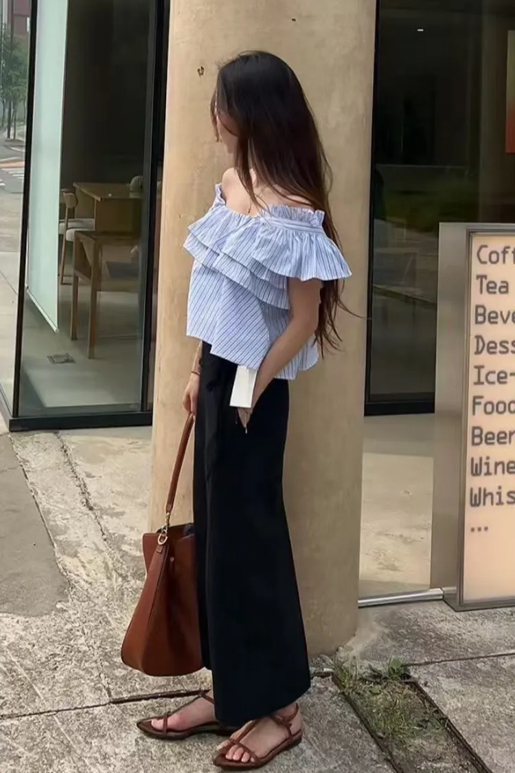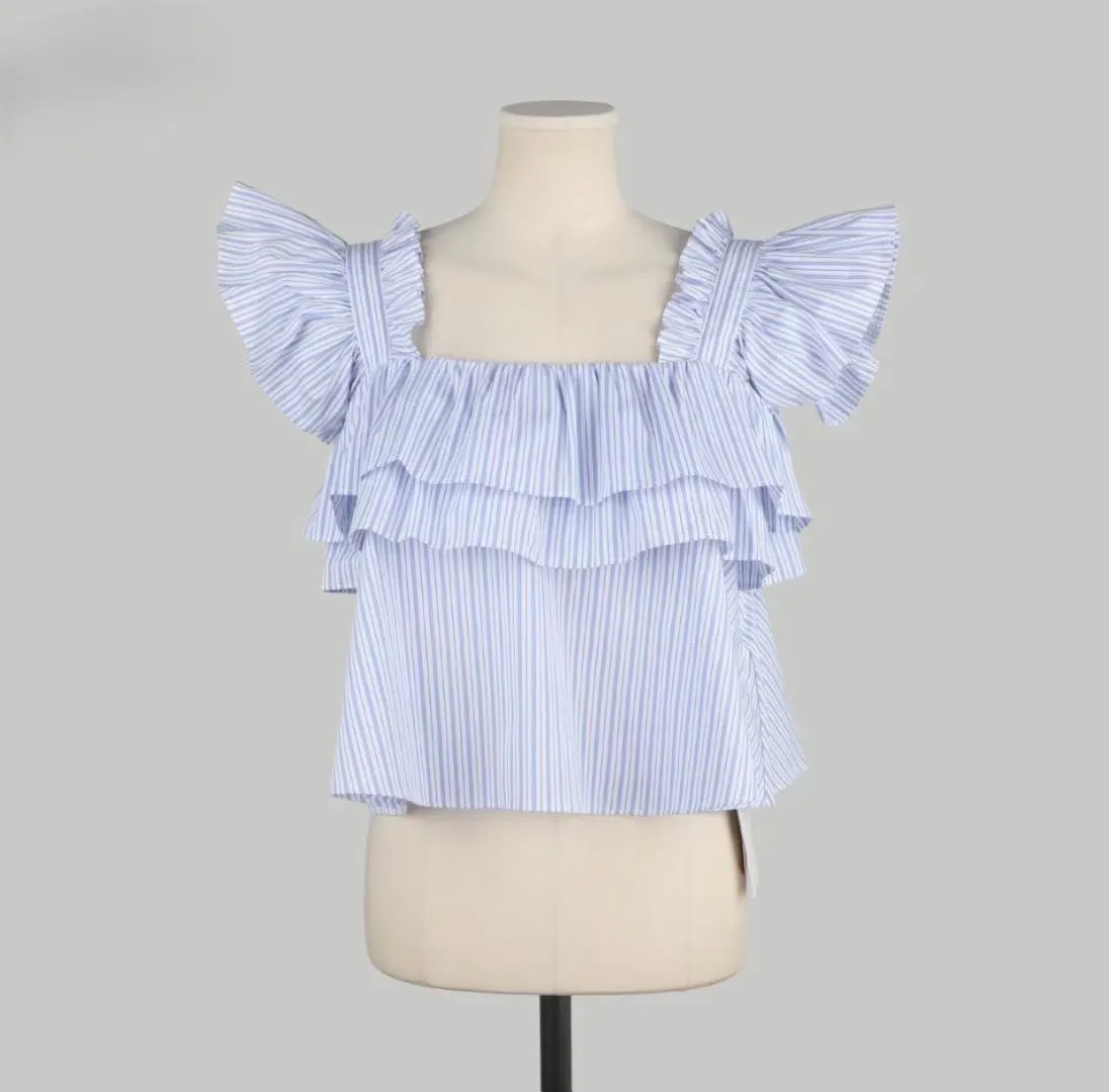 棉 清爽配色 胸寬有鬆緊 荷葉肩帶 腋下拉一字領空間感更佳