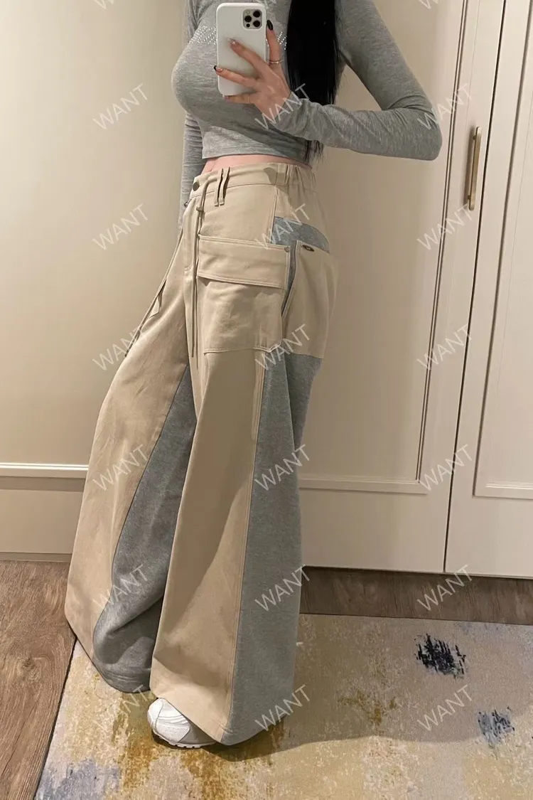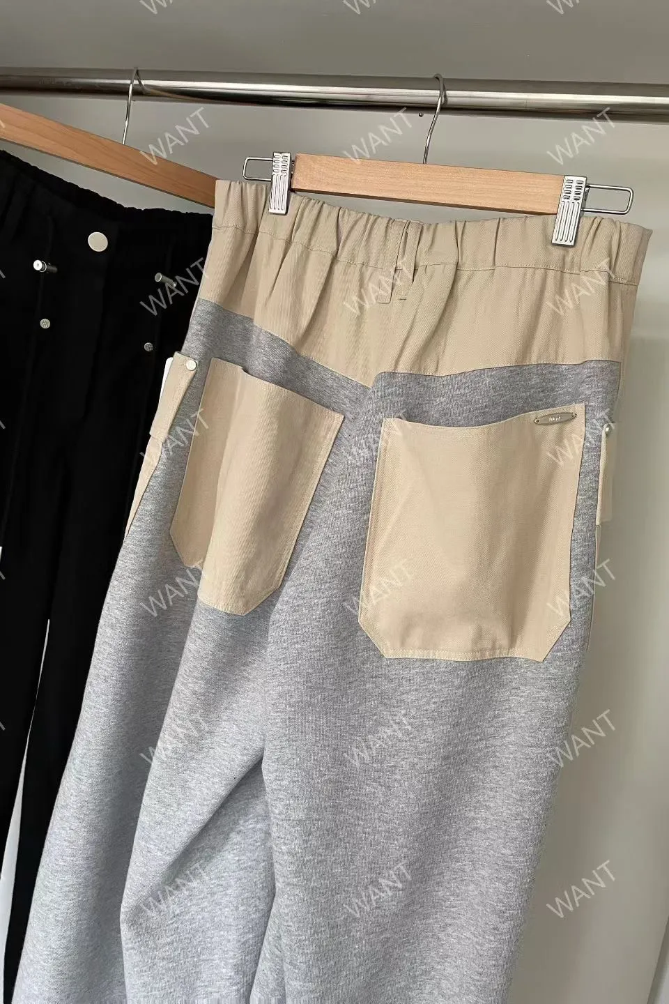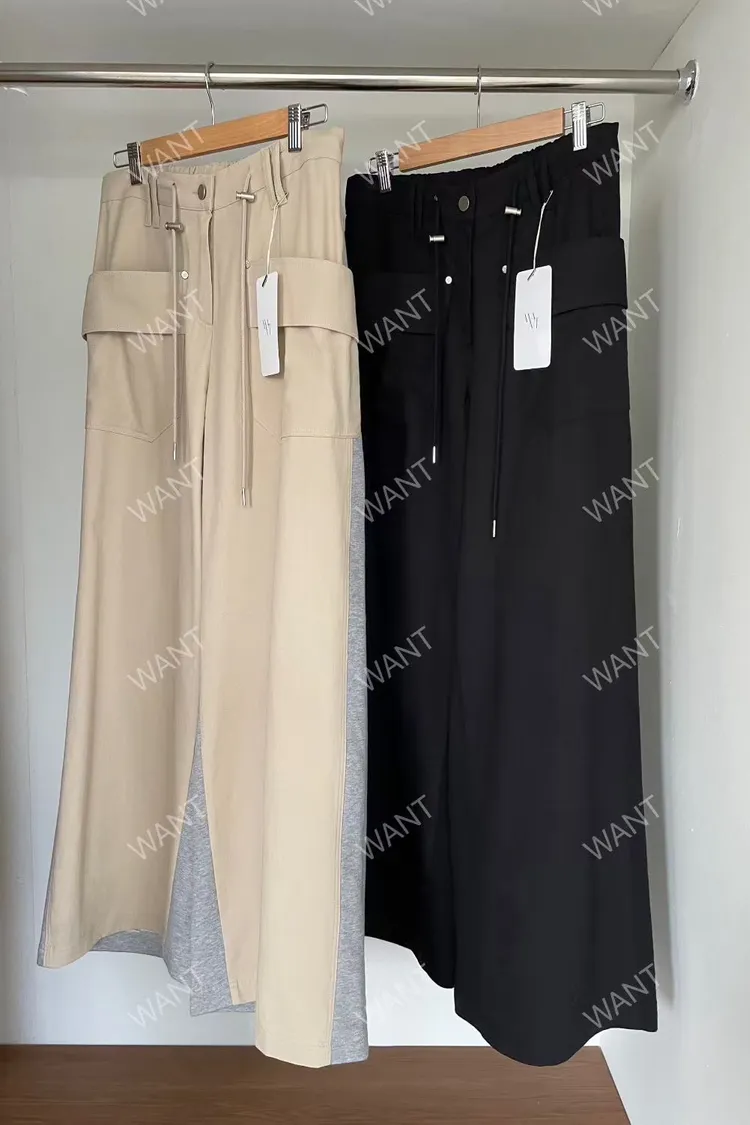 棉 異材質拼接 釦鍊穿脫有抽繩 可穿低腰款