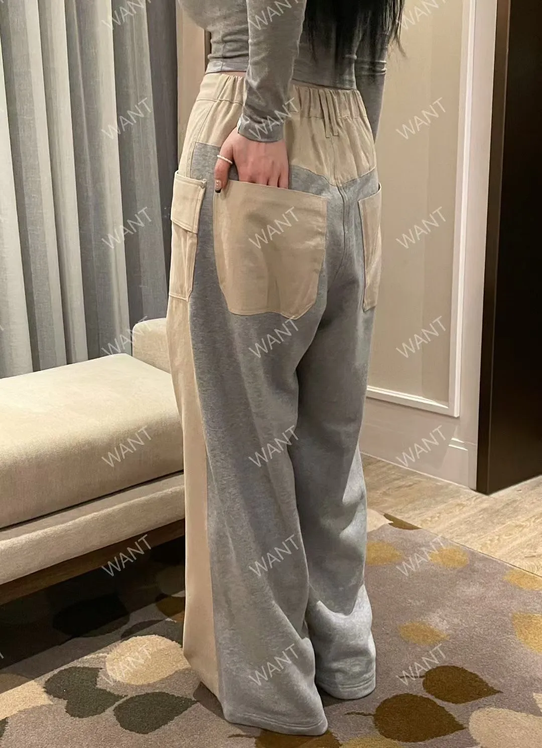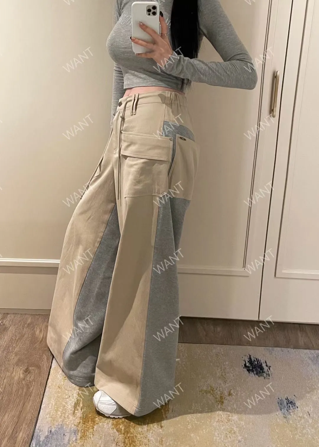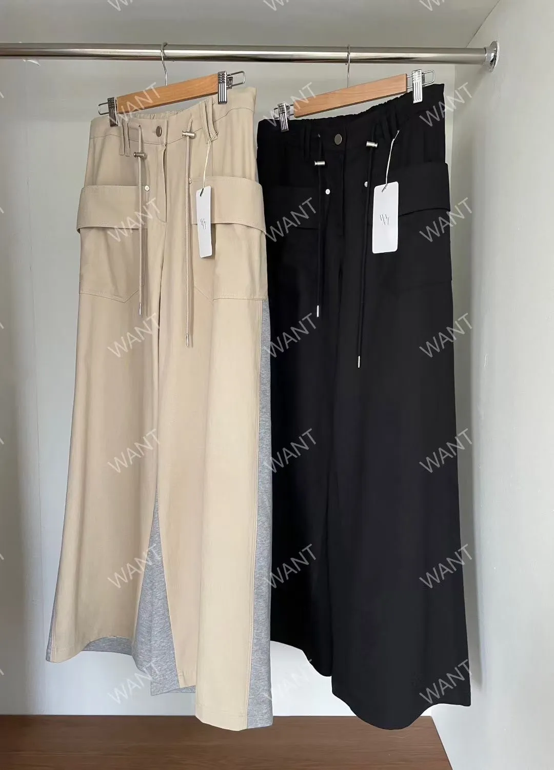 棉 異材質拼接 釦鍊穿脫有抽繩 可穿低腰款