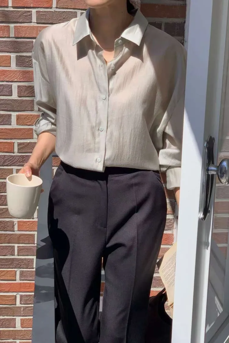 天絲+縲縈 薄款輕盈 高級微光澤 細側腰釦 涼感舒適 適合台灣