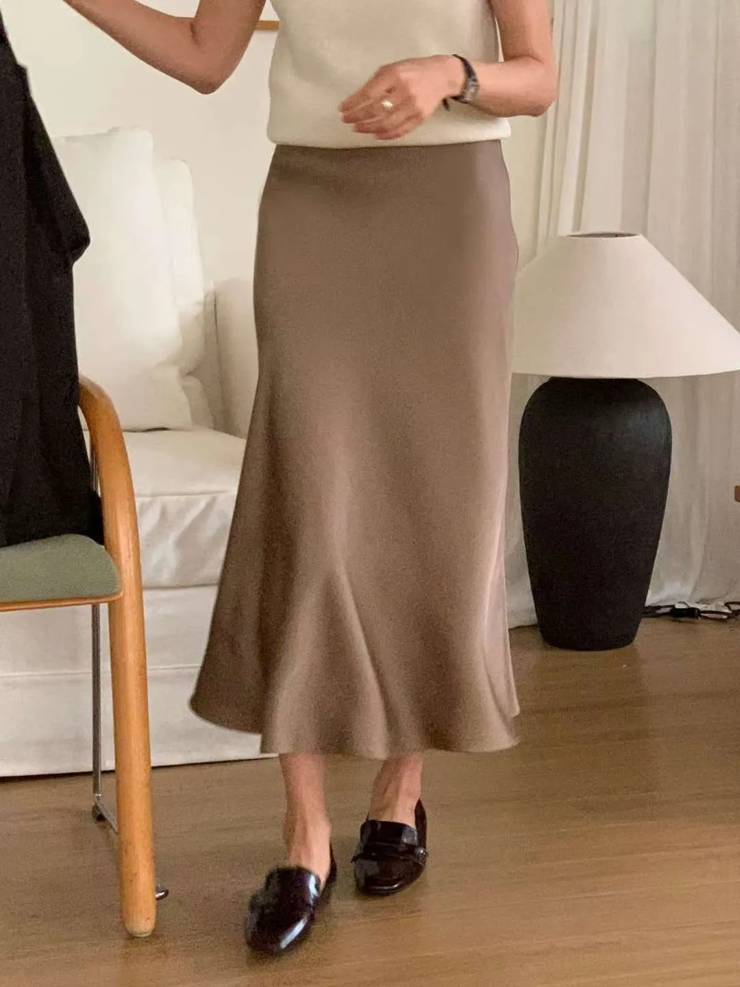 人造絲+聚酯 推薦款 自然光澤感 薄款微磅數 有內裡 臀寬友善