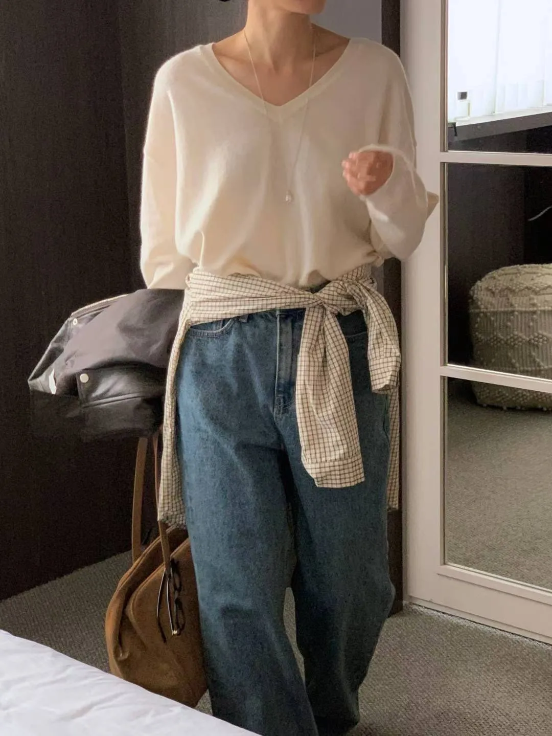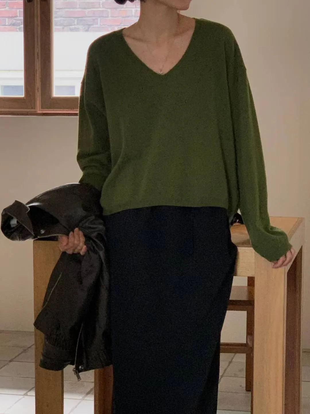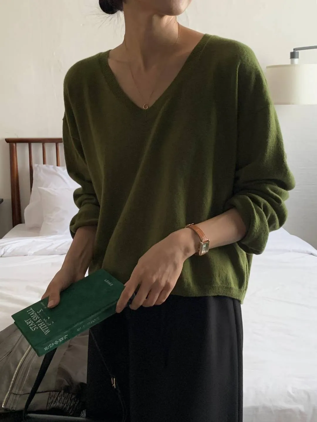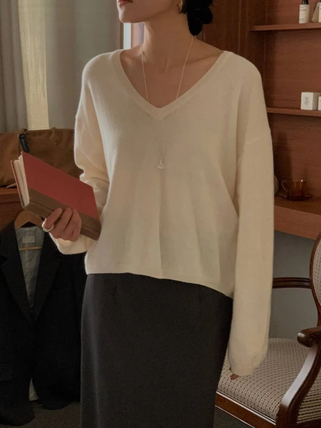 羊毛70% 材質舒適 有暖度 舒適寬V領 寬鬆版型 L號友善