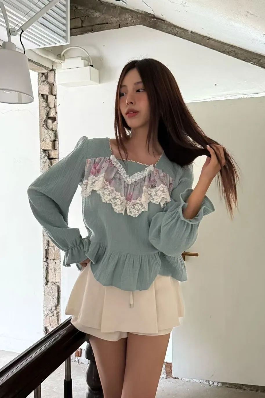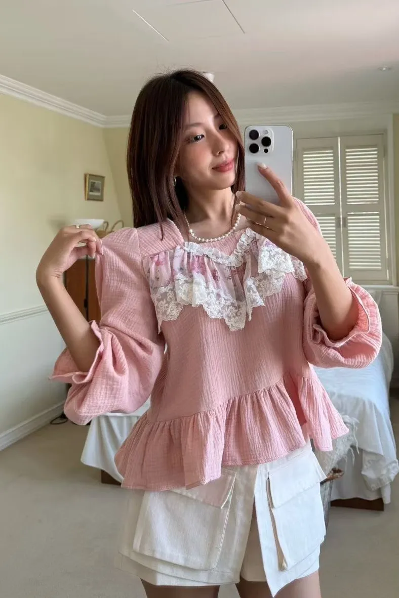 寶寶棉 柔軟舒適 薄款拼接蕾絲 後頸釦穿脫 顯瘦娃娃裝下擺