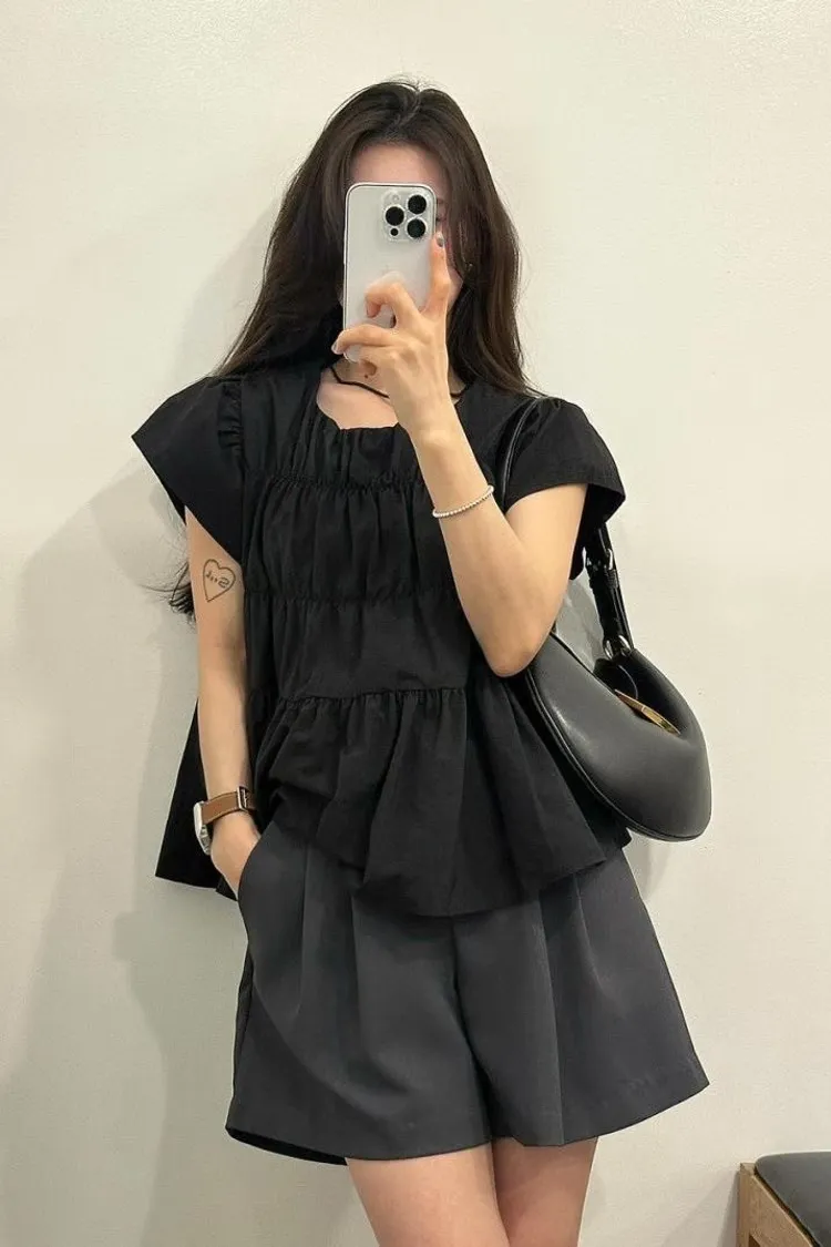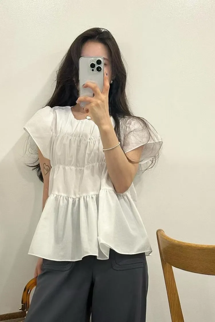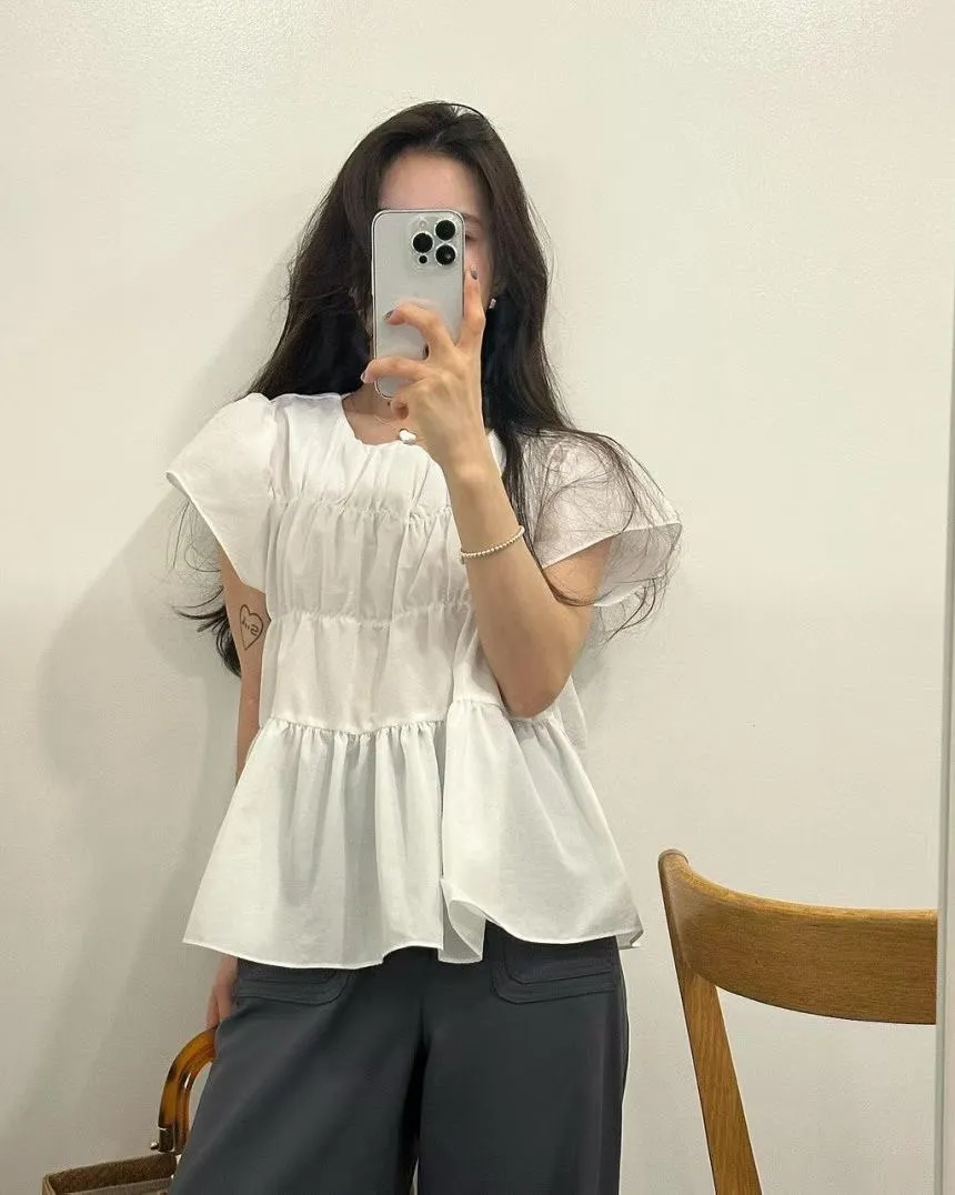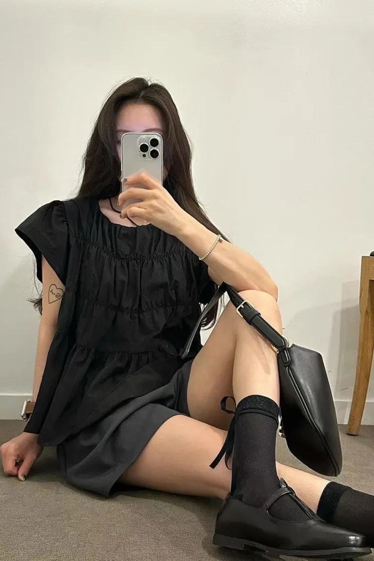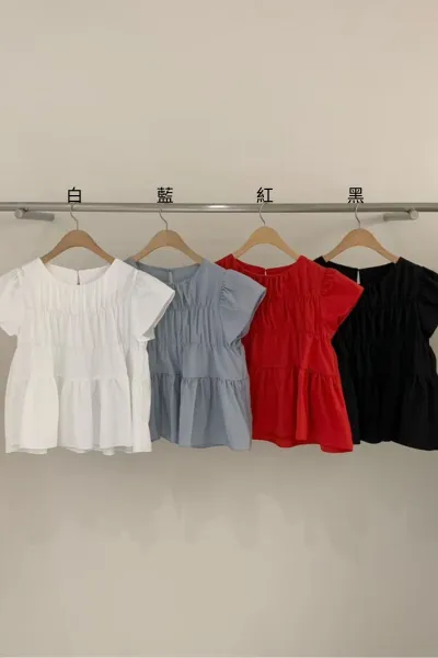 棉+縲縈+聚酯 鬱金香半袖 層次車線 傘擺顯瘦