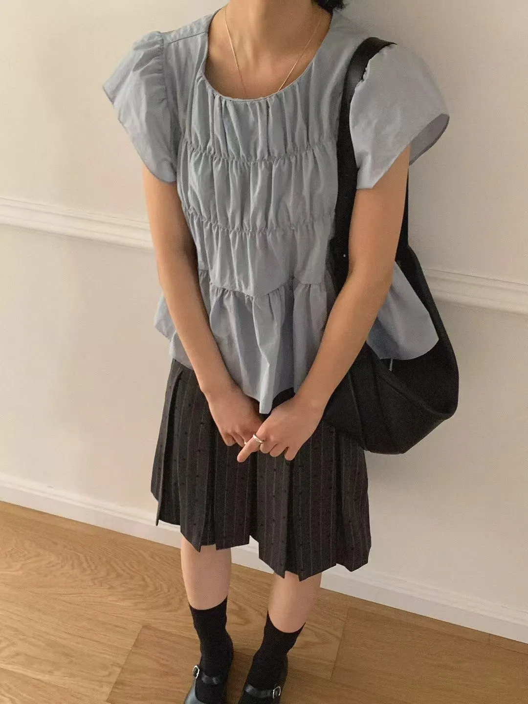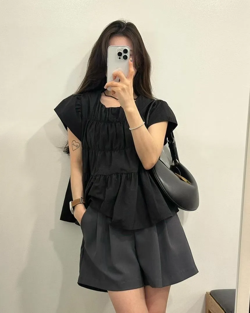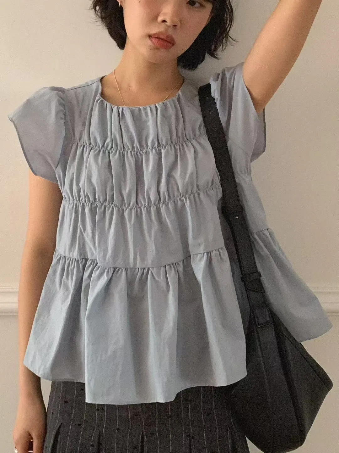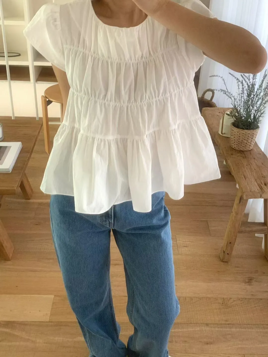 棉+縲縈+聚酯 鬱金香半袖 層次車線 傘擺顯瘦
