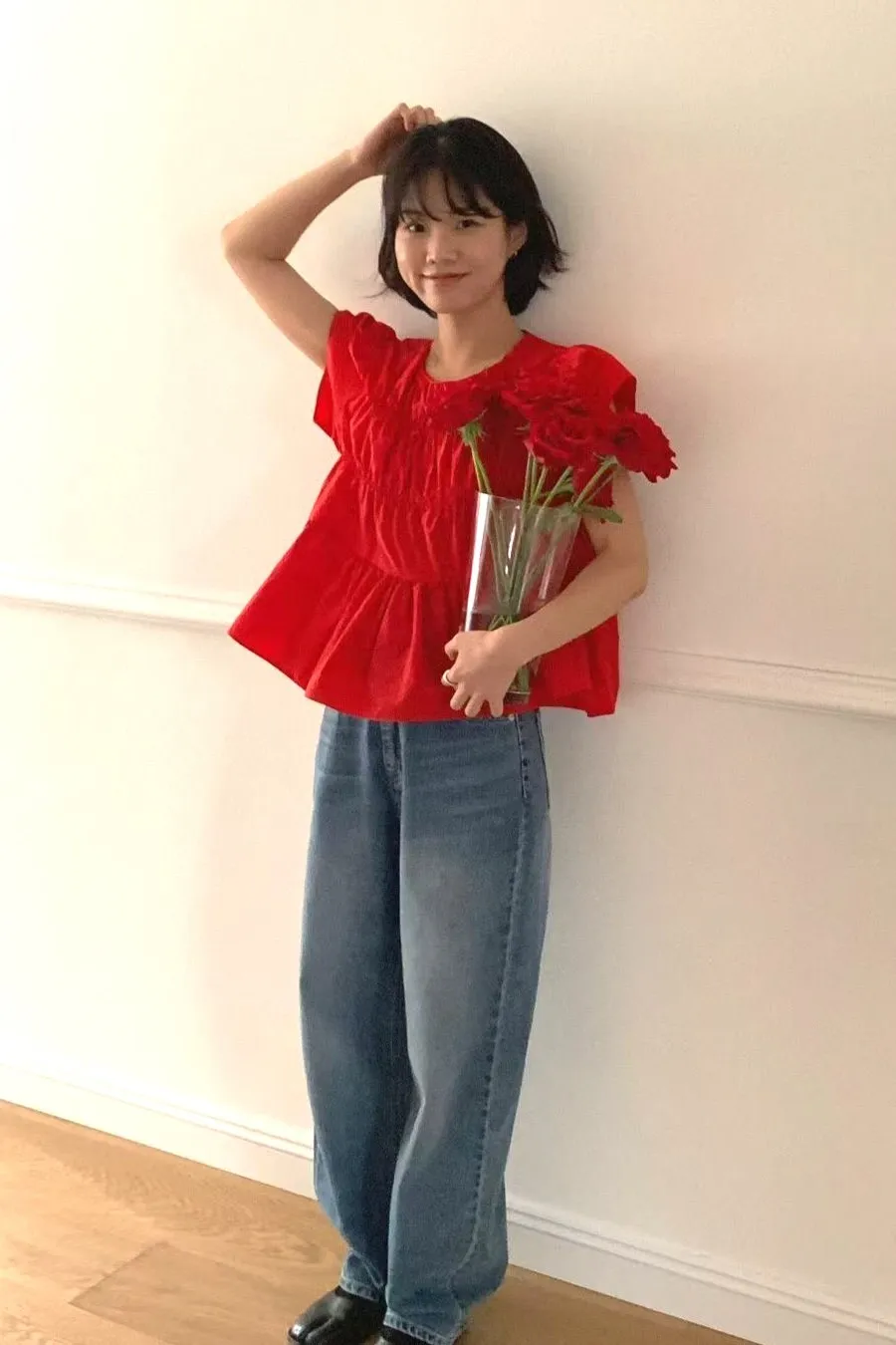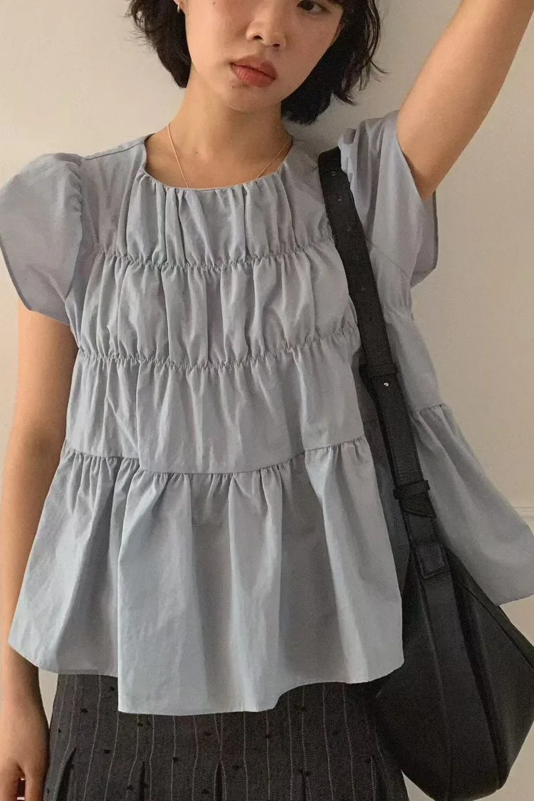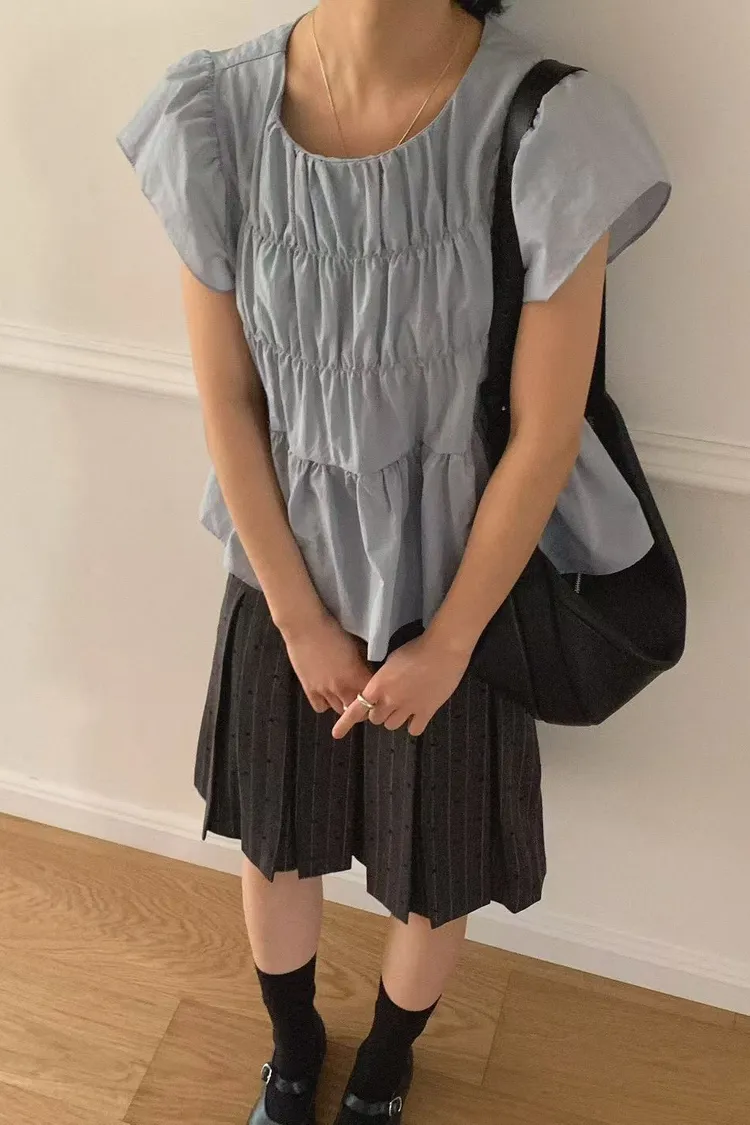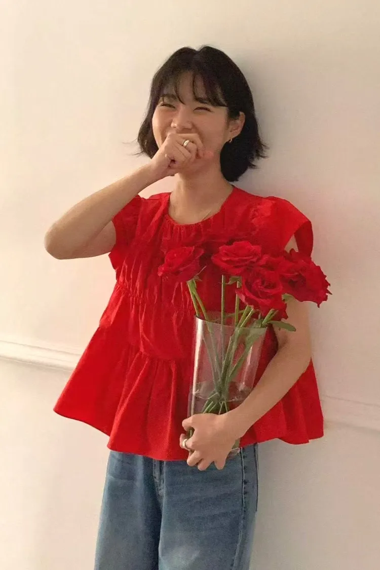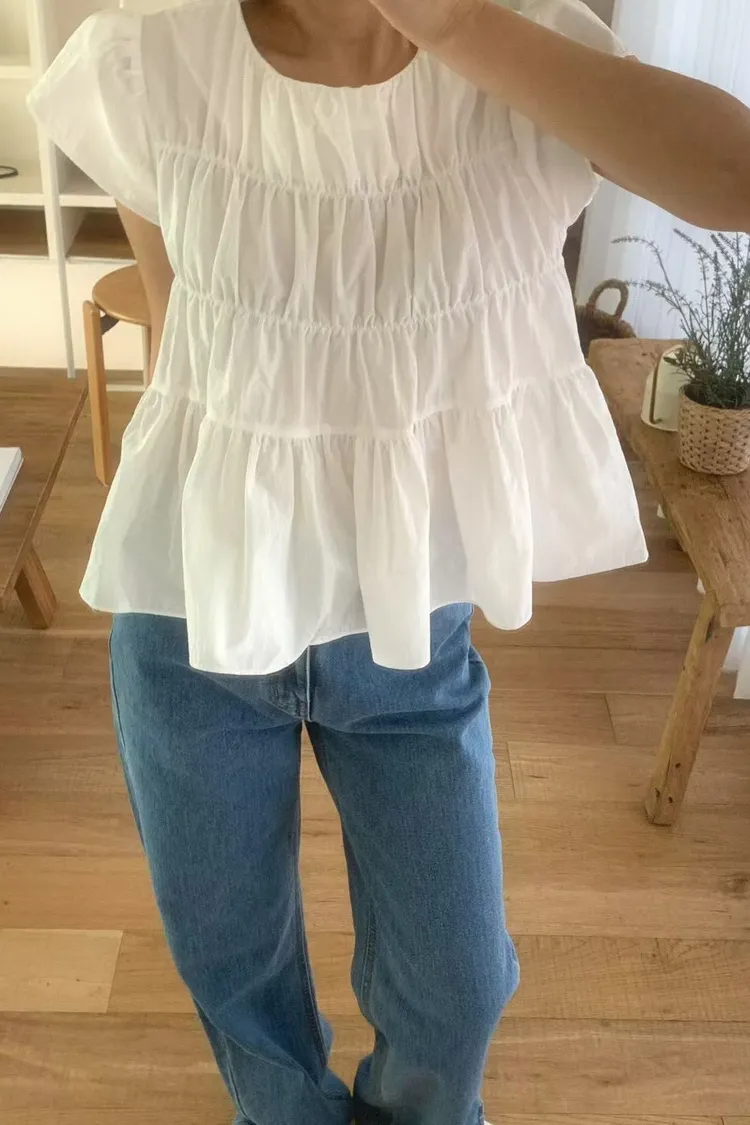 棉+縲縈+聚酯 鬱金香半袖 層次車線 傘擺顯瘦