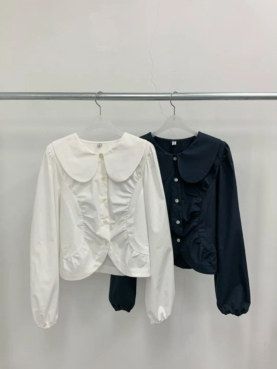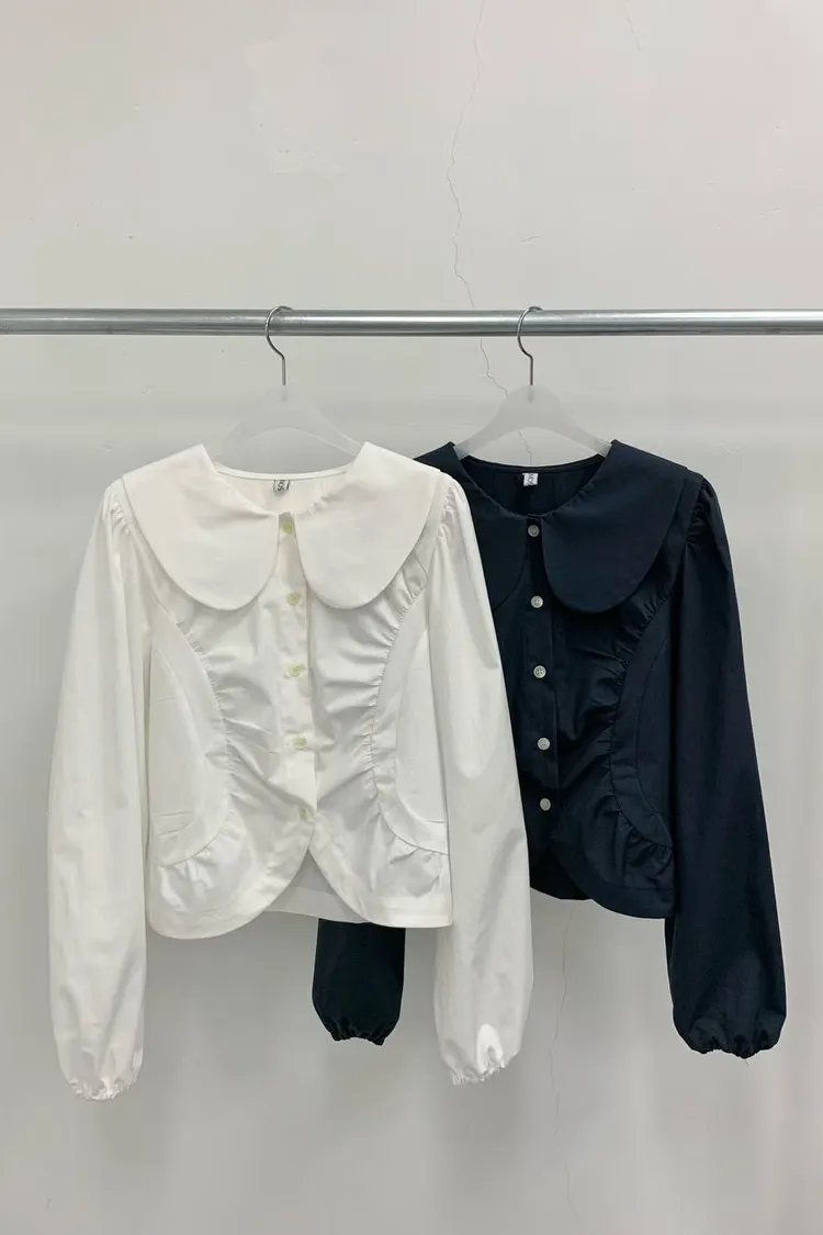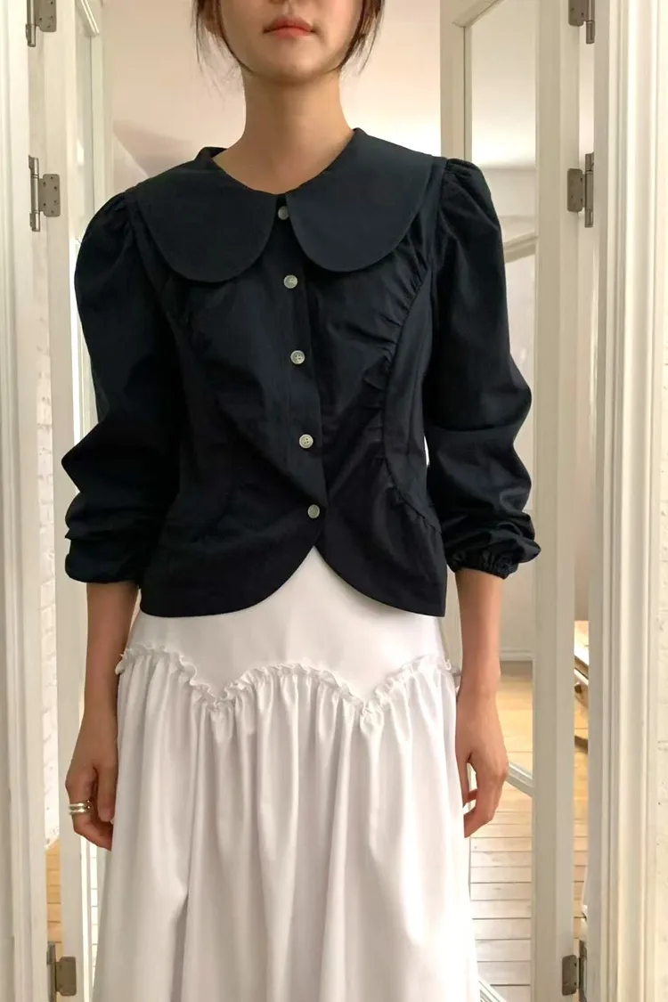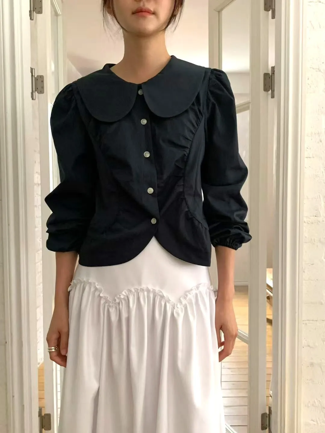 棉 氣質名媛翻領 圓弧下擺 排釦穿脫 手繡鬆緊