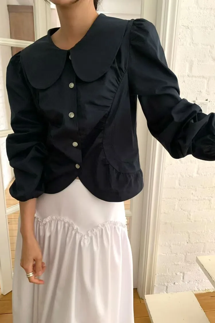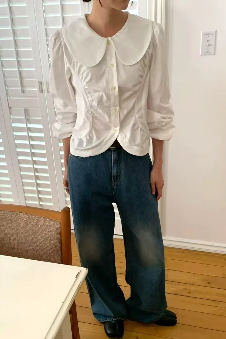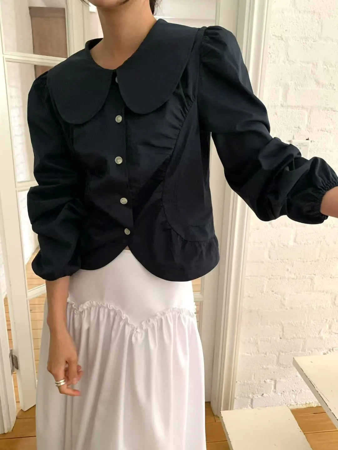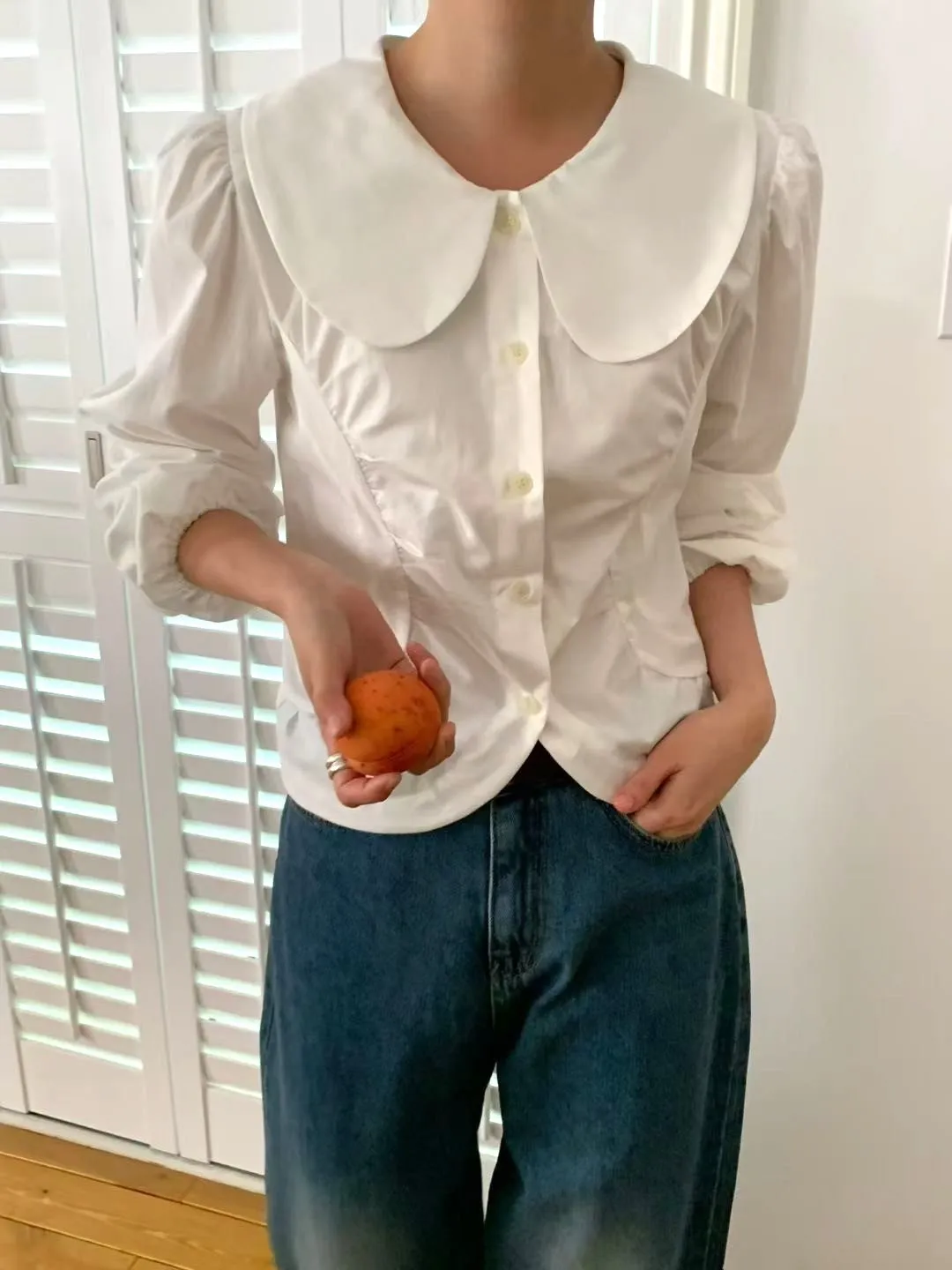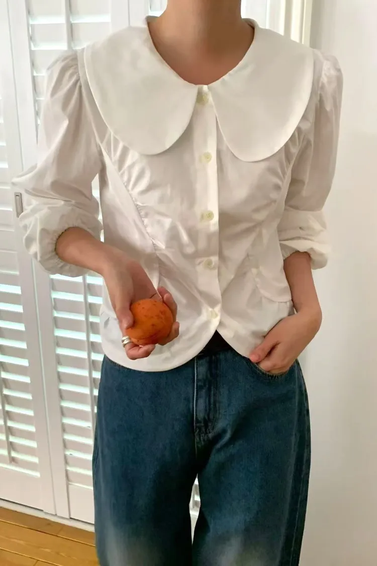 棉 氣質名媛翻領 圓弧下擺 排釦穿脫 手繡鬆緊