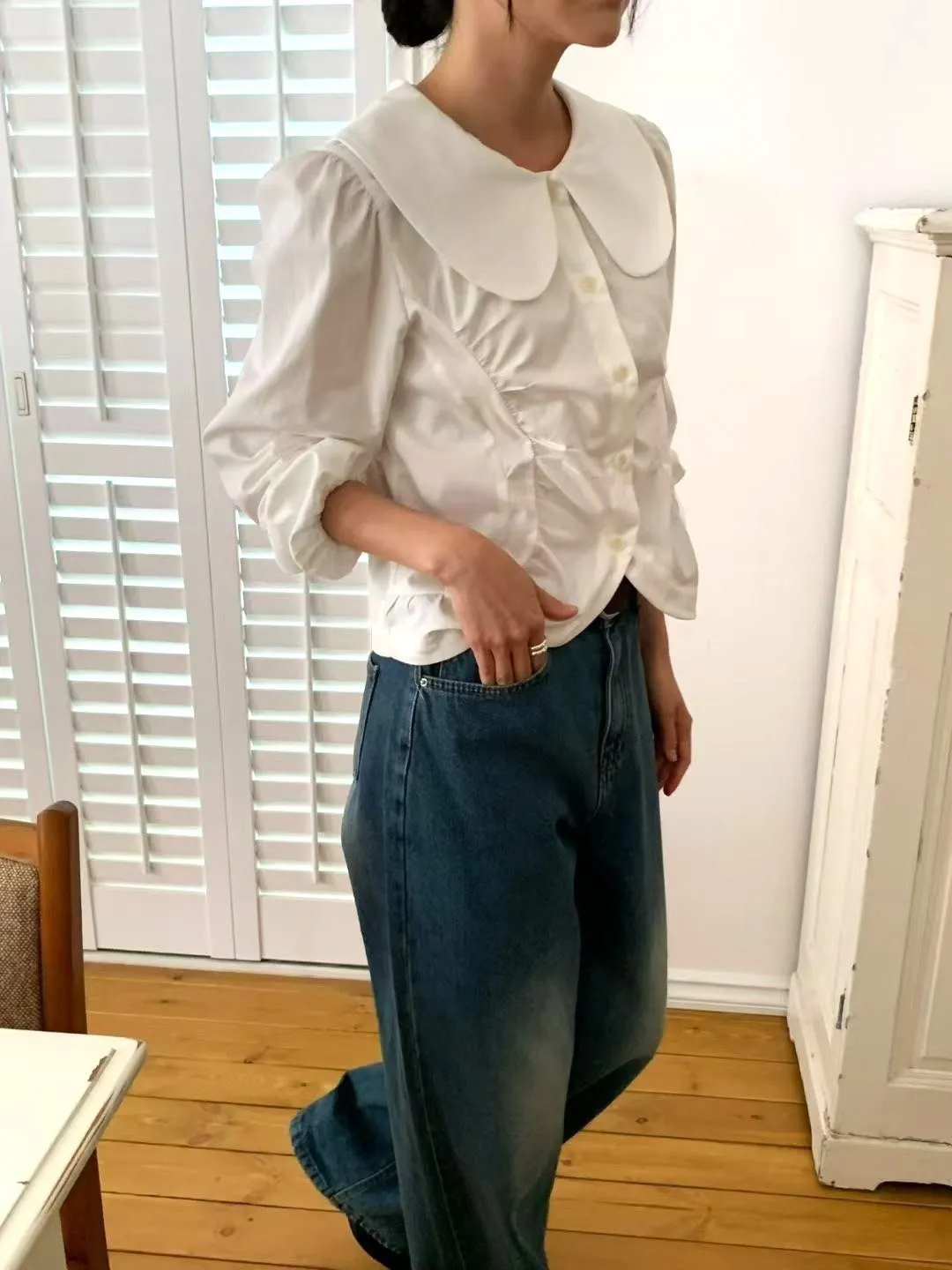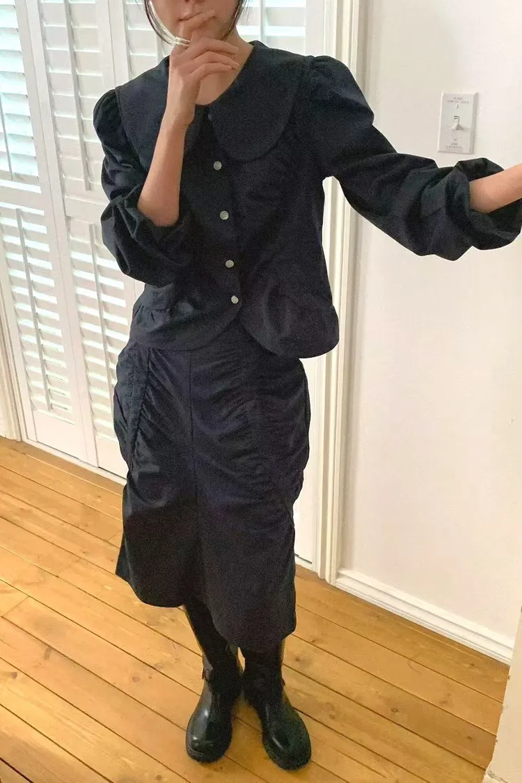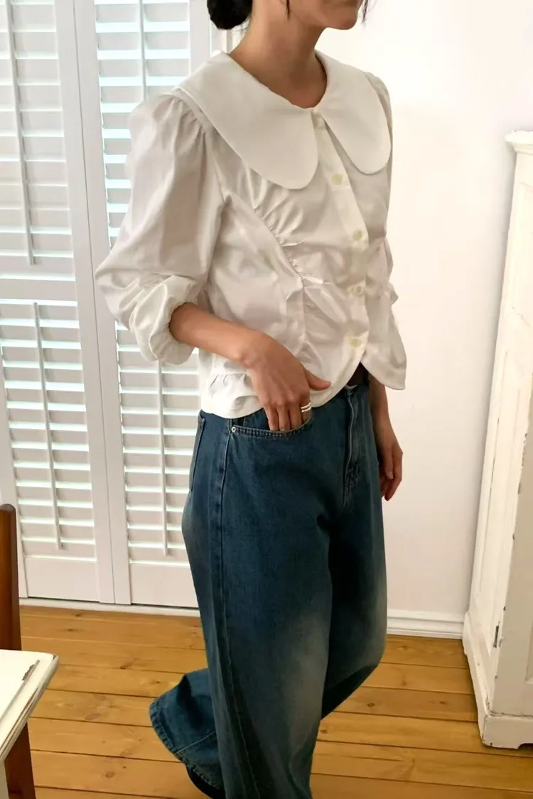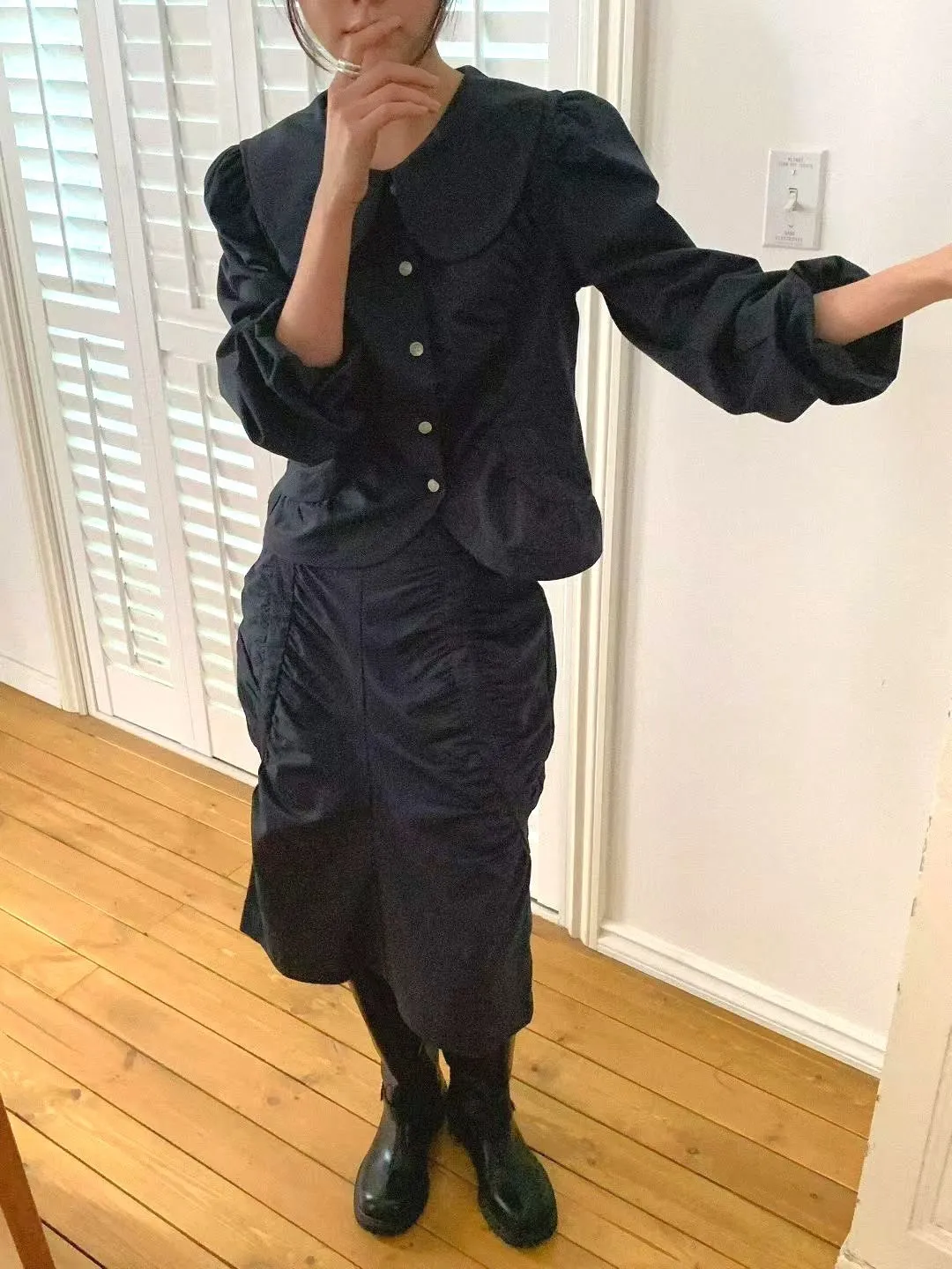 棉 氣質名媛翻領 圓弧下擺 排釦穿脫 手繡鬆緊