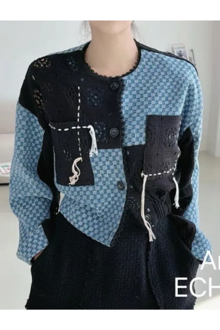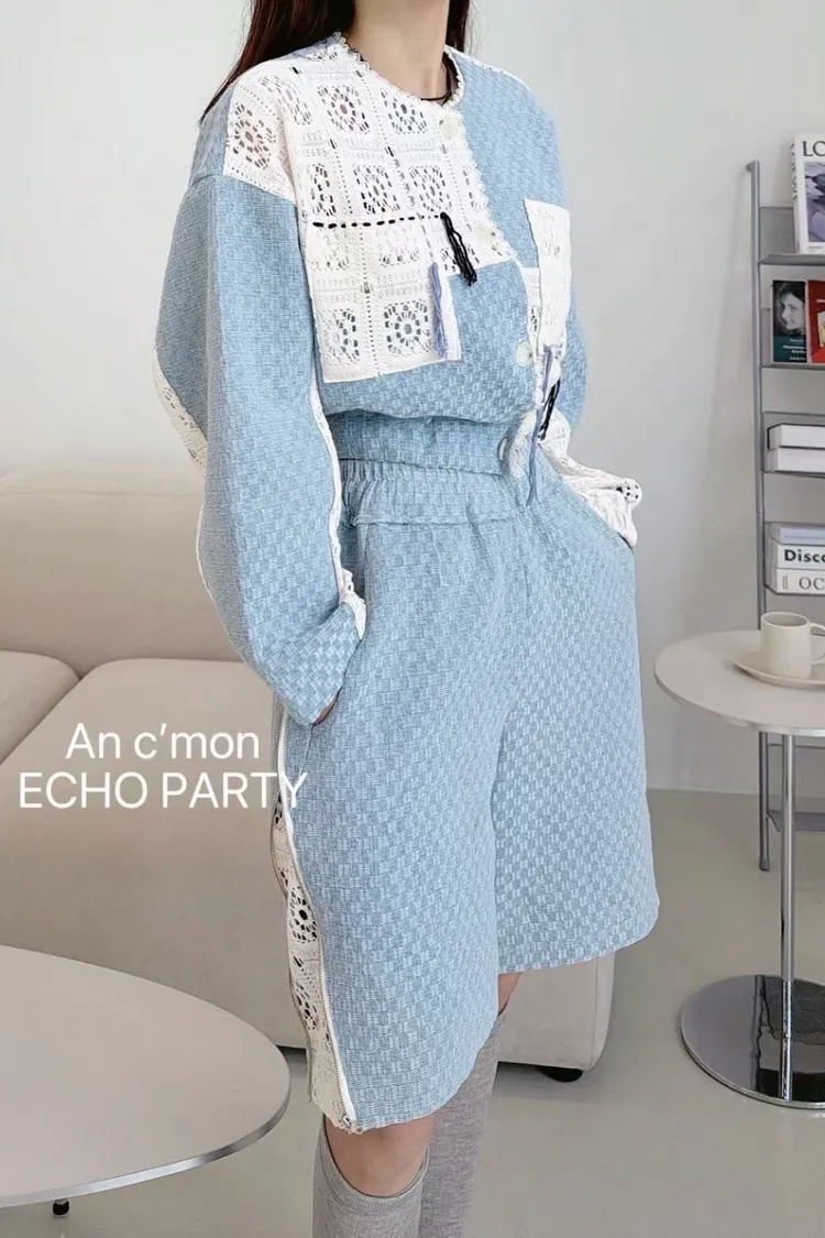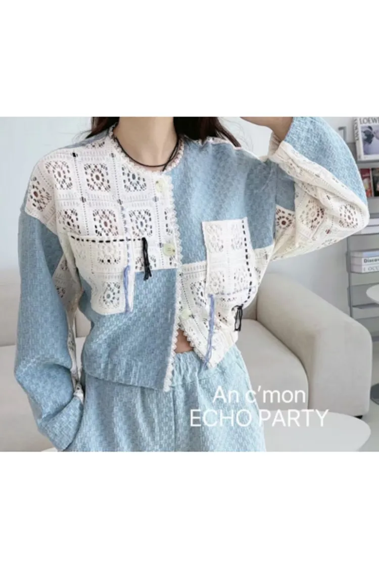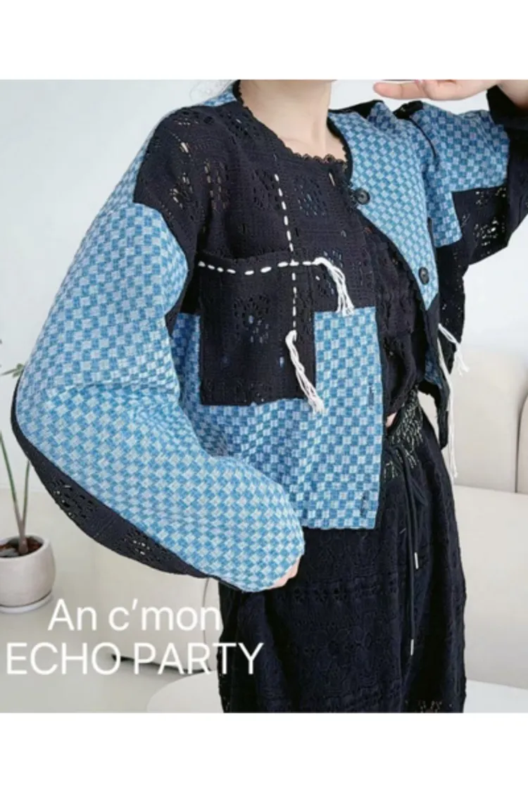 棉+蕾絲+聚酯 領口蕾絲滾邊 四格拚色設計 可愛小流蘇 L號友善