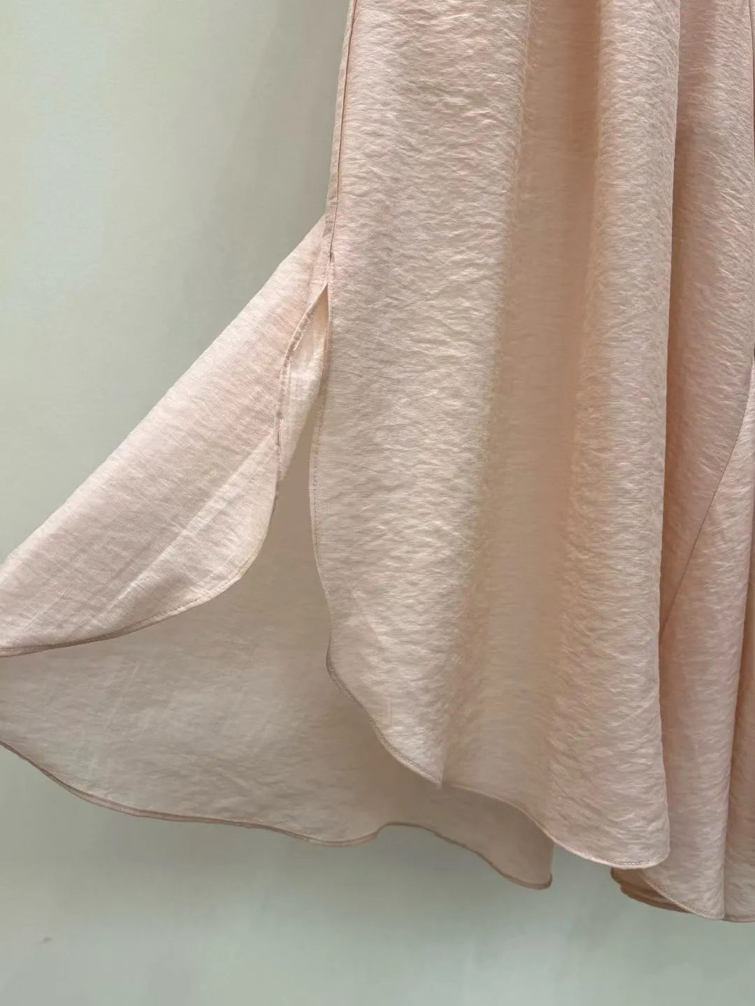 天絲+尼龍 涼感舒適 輕盈薄款 後腰鬆緊 有口袋 有內裡 很像裙子是褲子