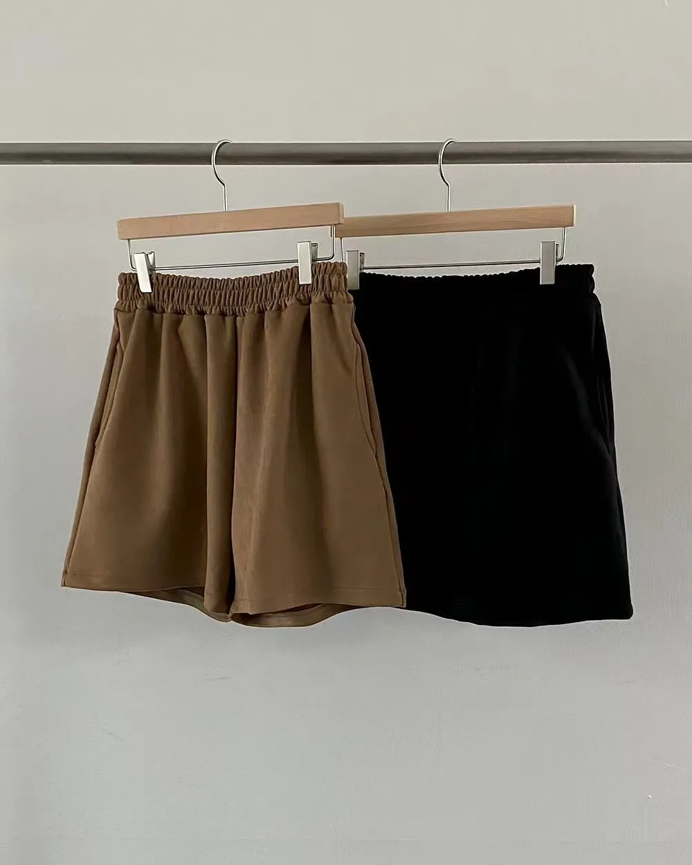 CY266推薦款麂皮細緻蜜桃絨短褲 黑 奶茶 官網價$520 線上價$490